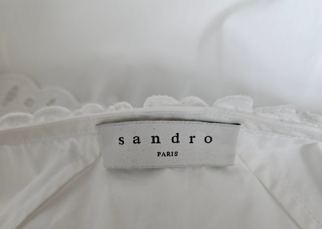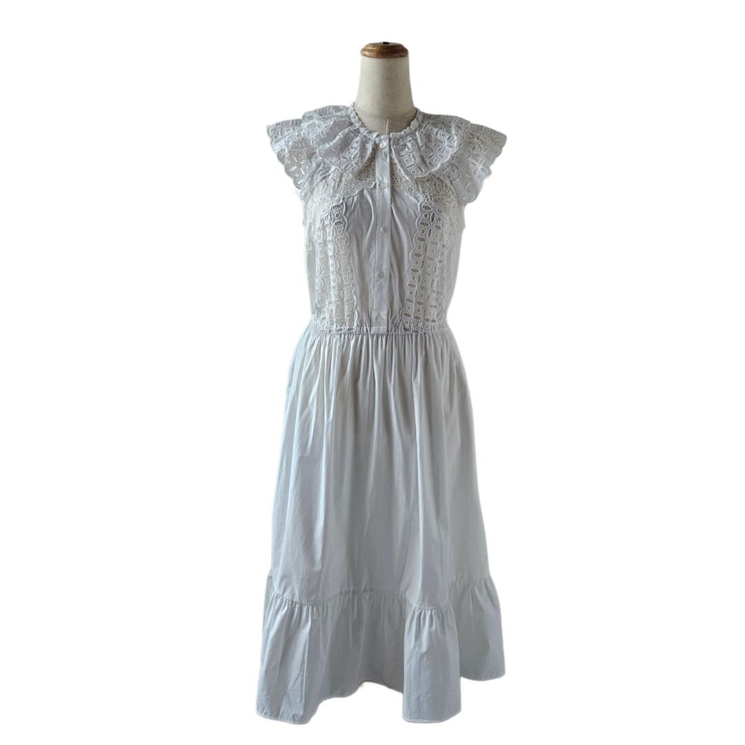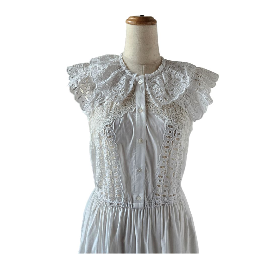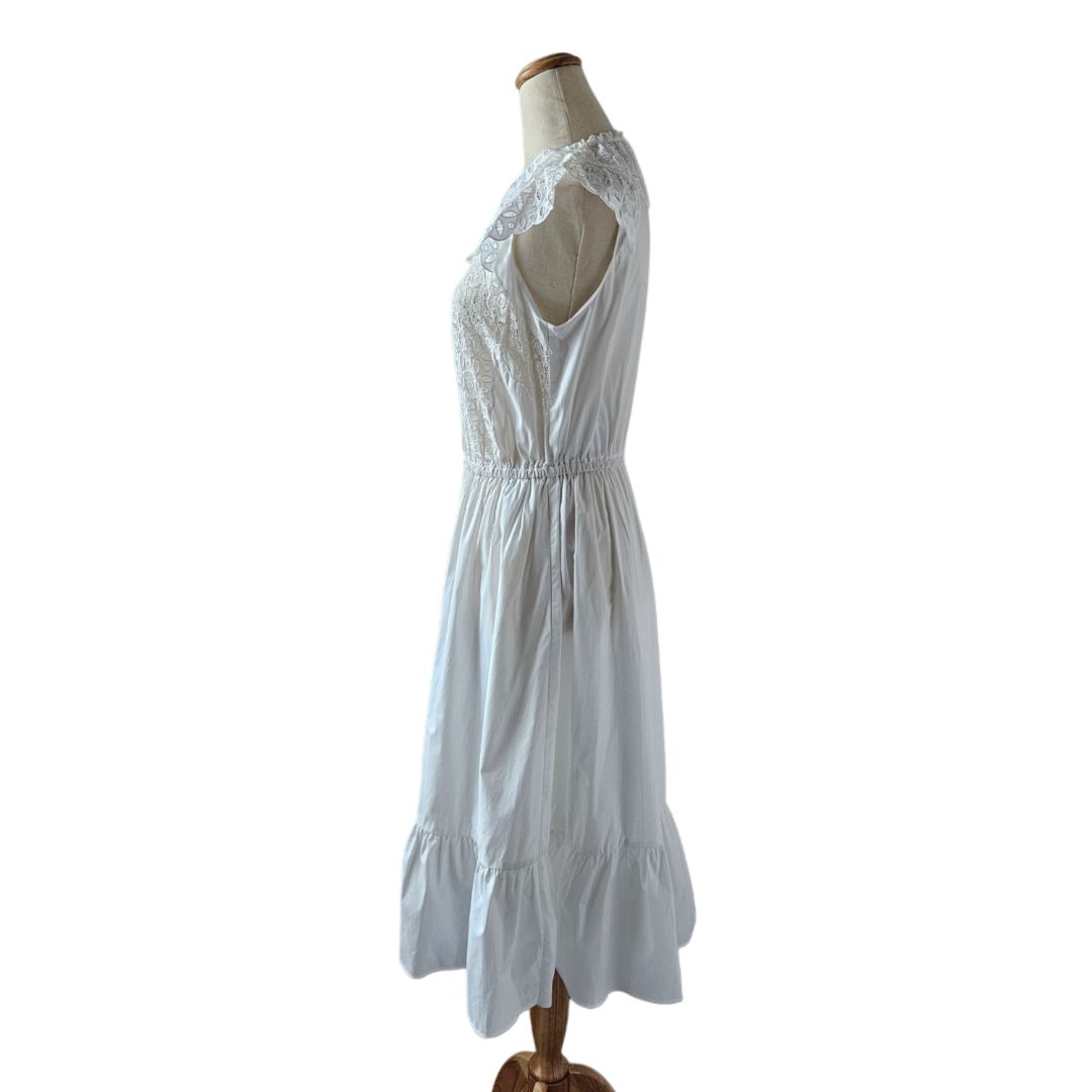 Sandro White Embroidered Sleeveless Button Flared Midi Dress