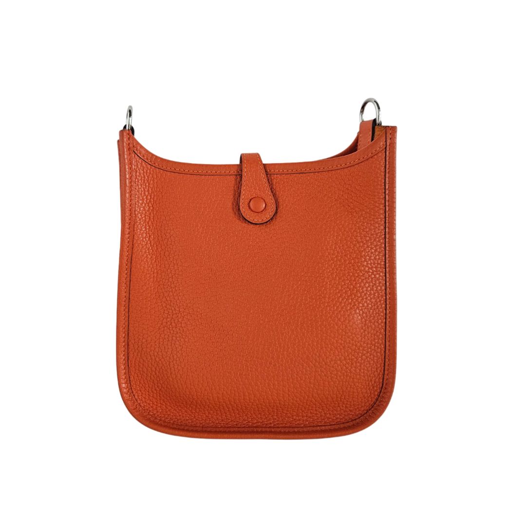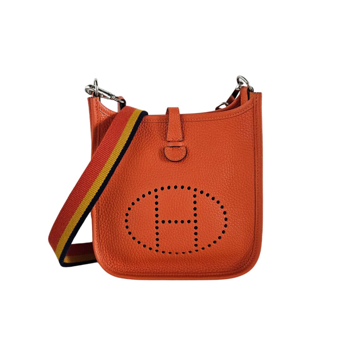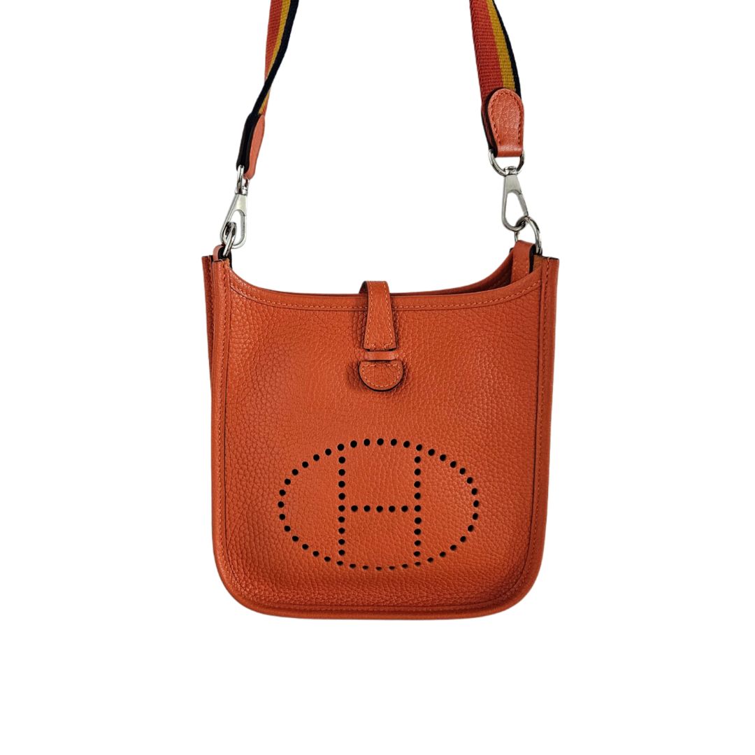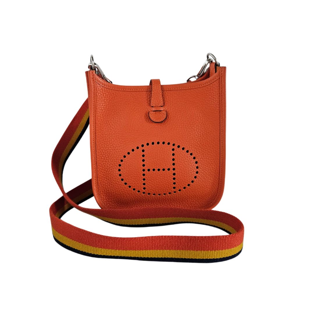Hermes Orange Leather With Canvas Stripe Strap TPM Evelyn Bag