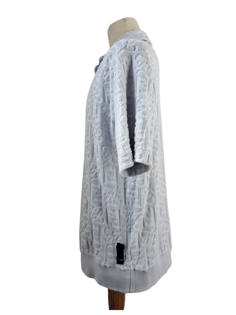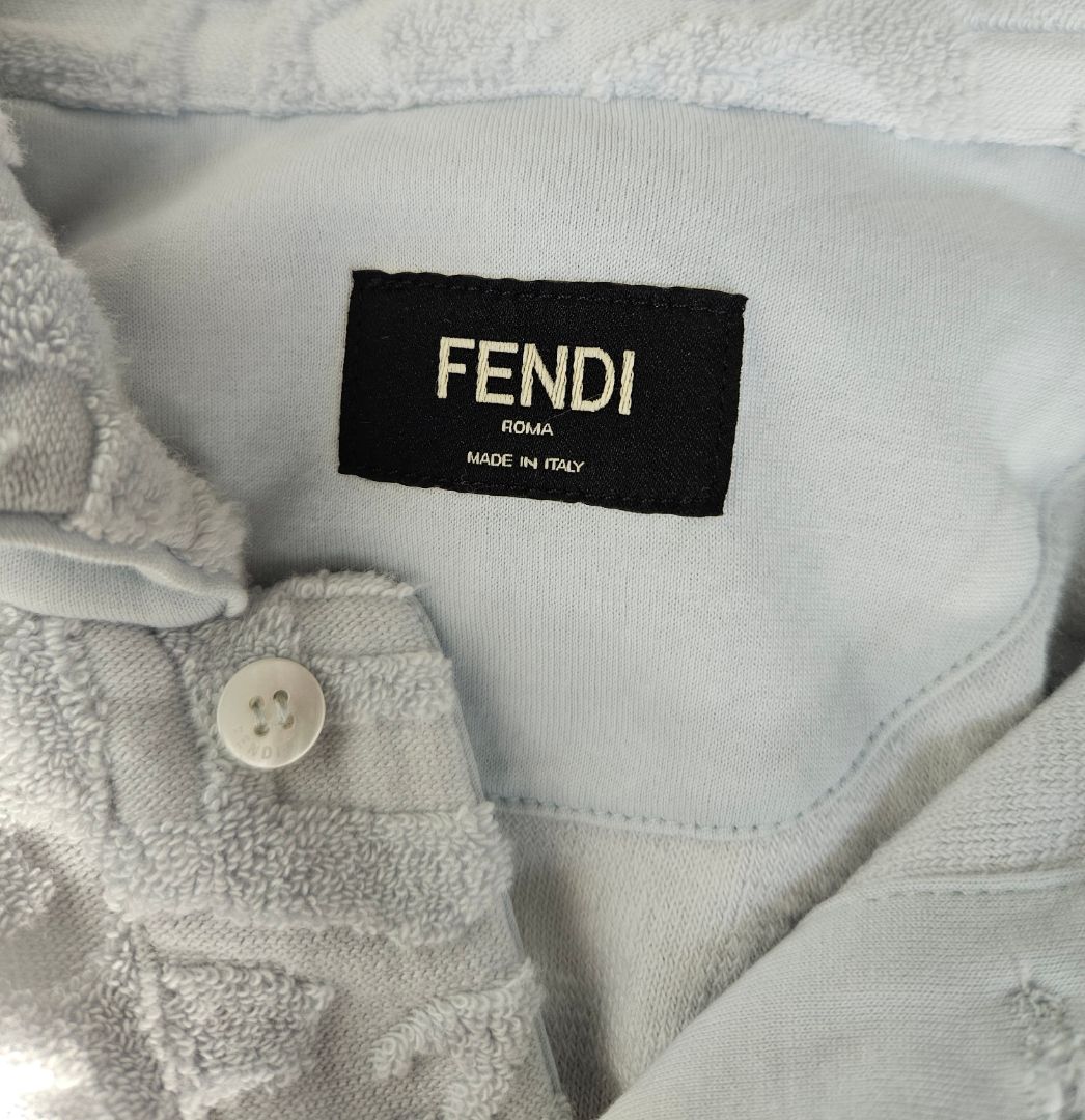 Fendi Light Blue All-Over FF Embossed Terry Polo Mens Top