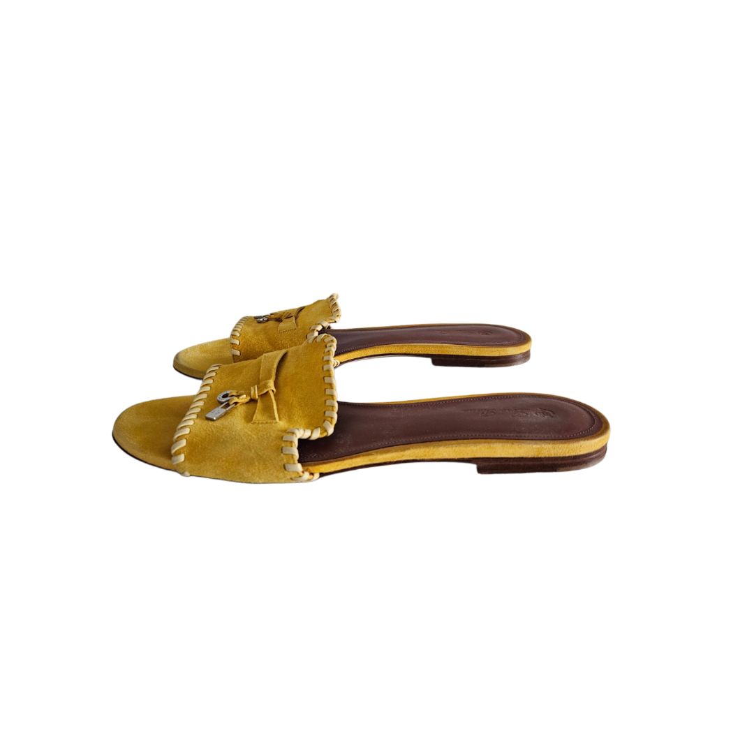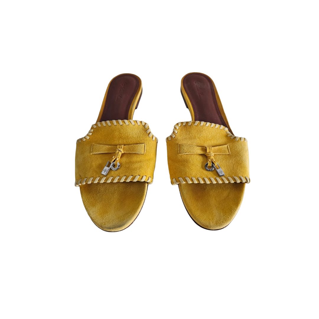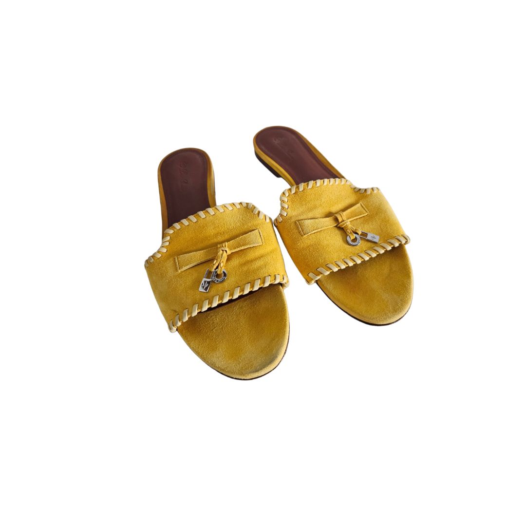 Loro Piana Yellow Suede Summer charms Flat Slides, size41