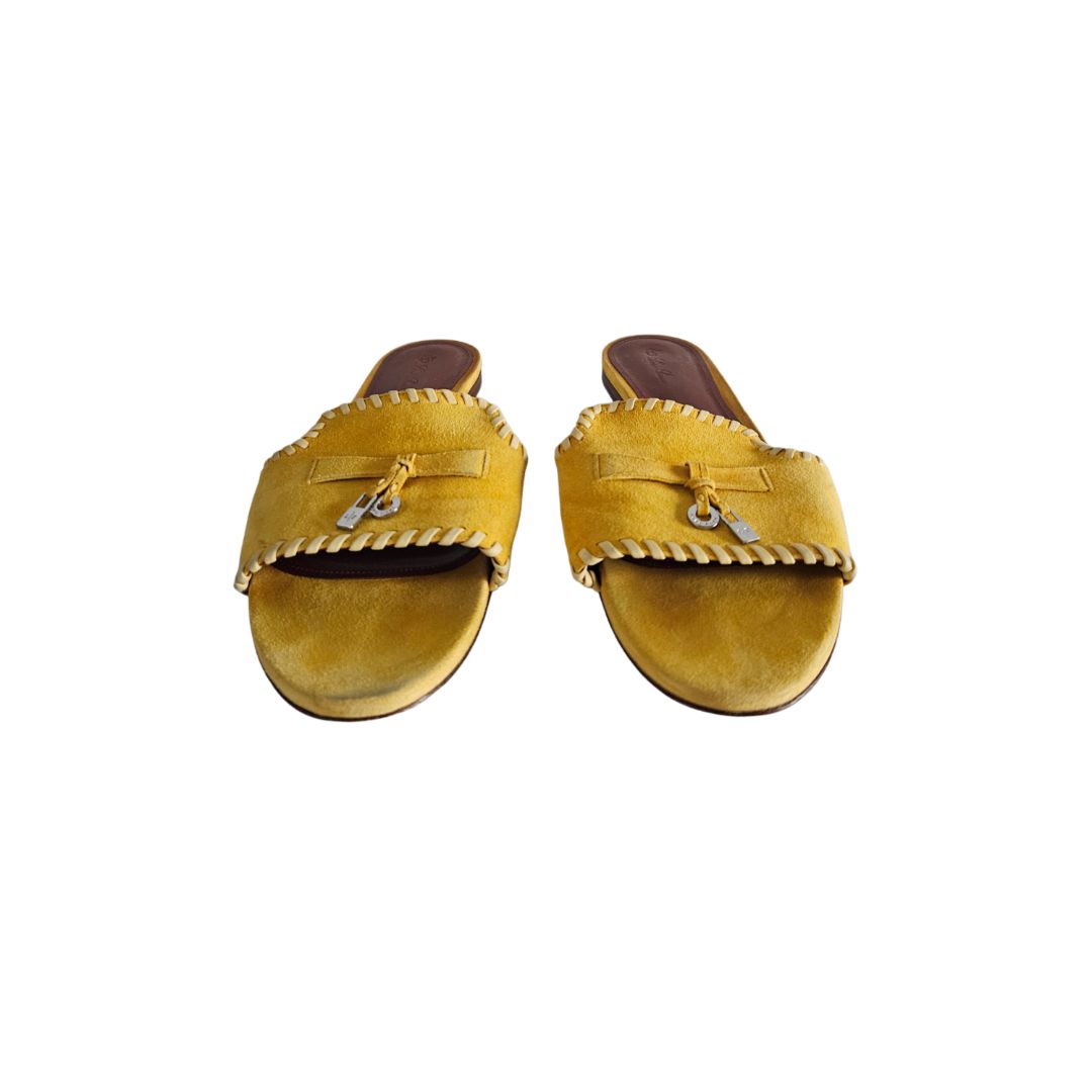 Loro Piana Yellow Suede Summer charms Flat Slides, size 41