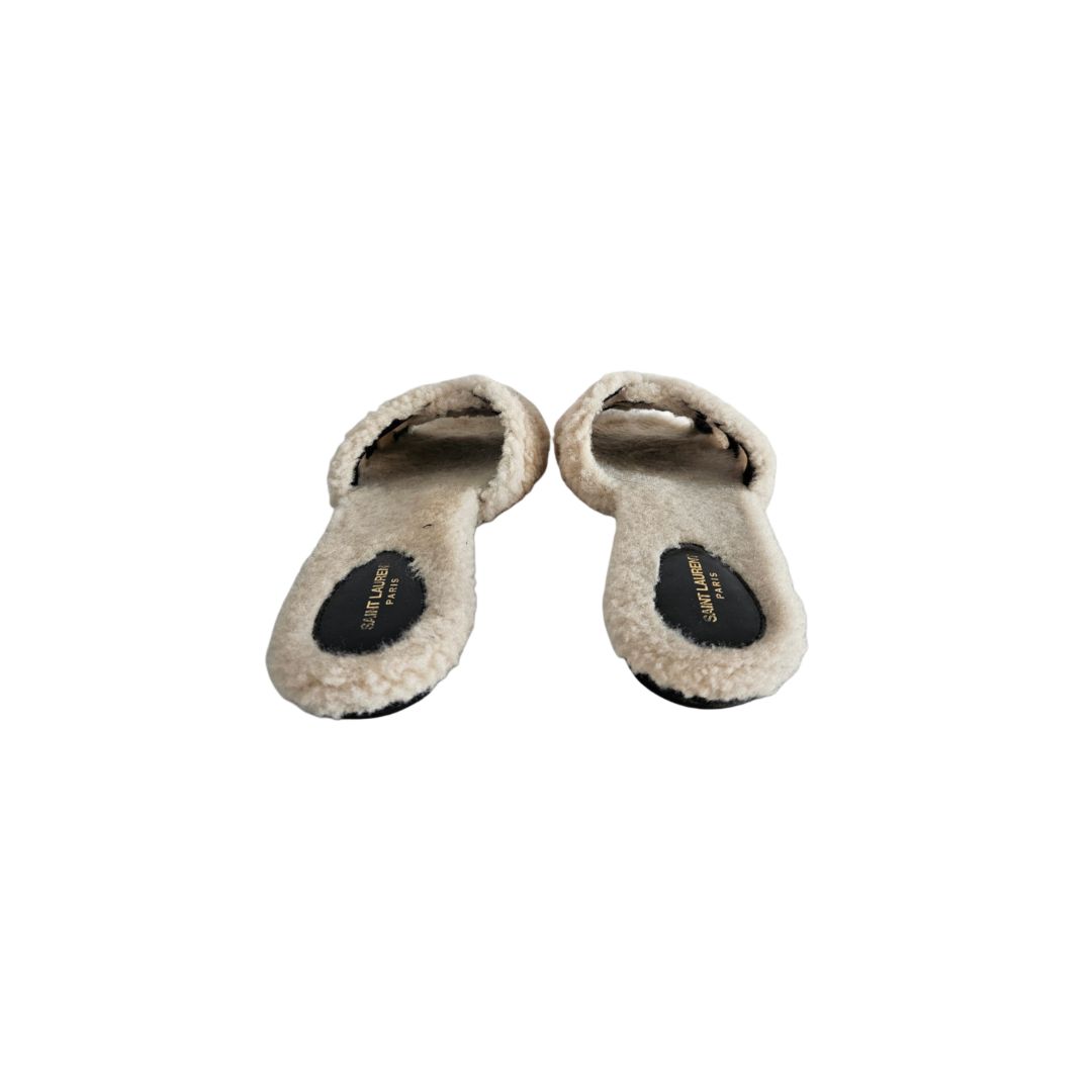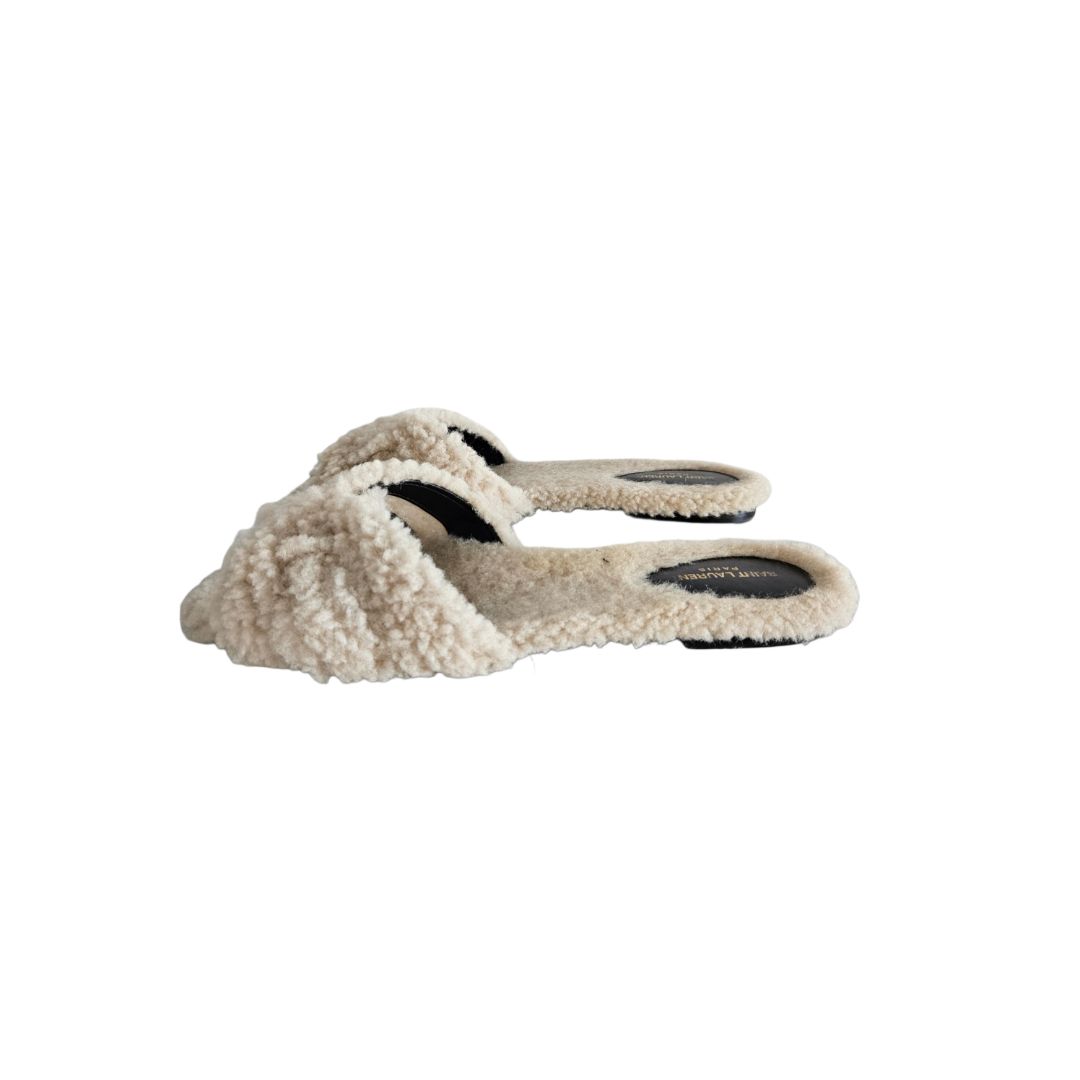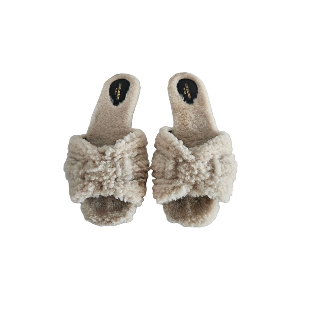 Saint Laurent Beige Tribute Shearling Flats Ssndal, size 41
