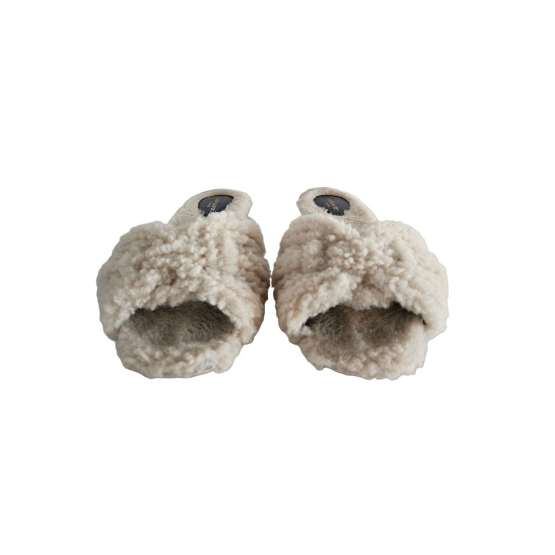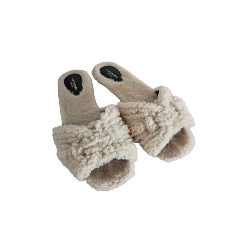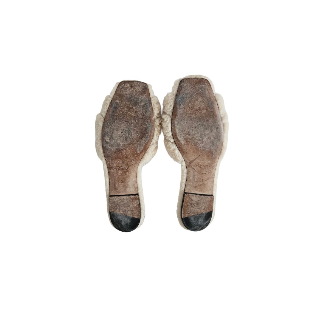 Saint Laurent Beige Tribute Shearling Flats Ssndal, size 41