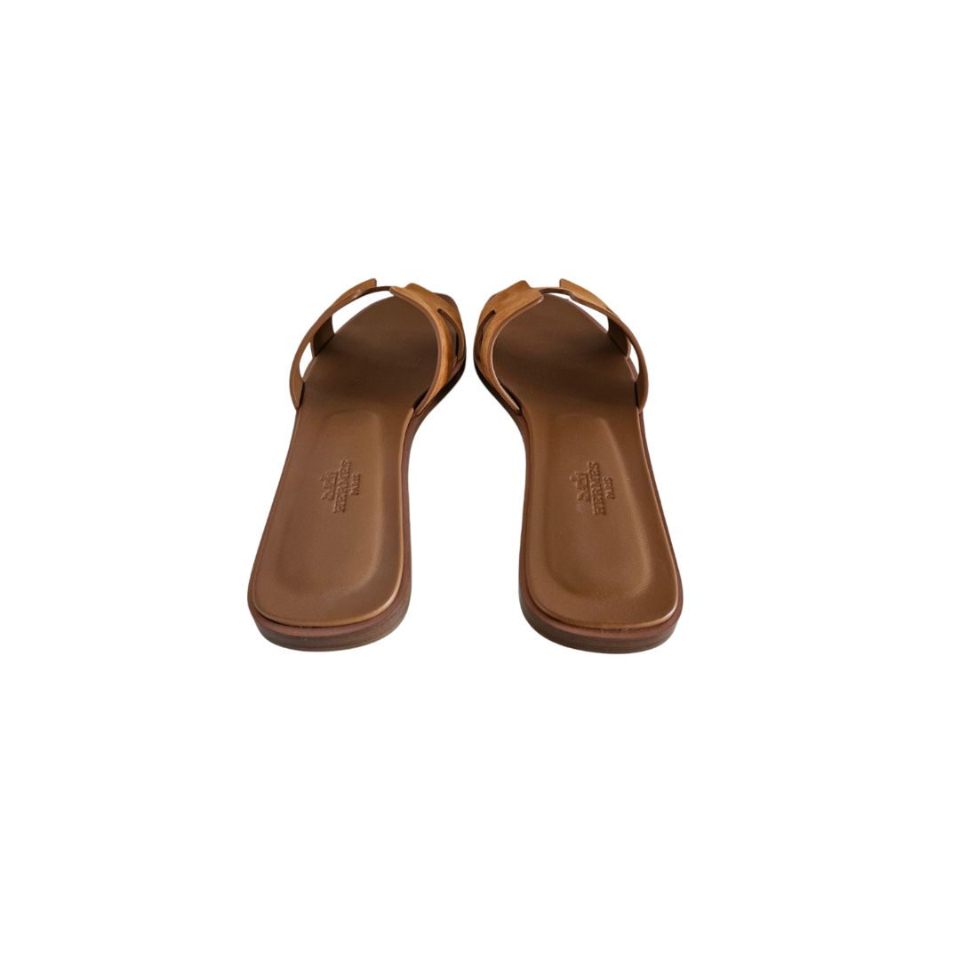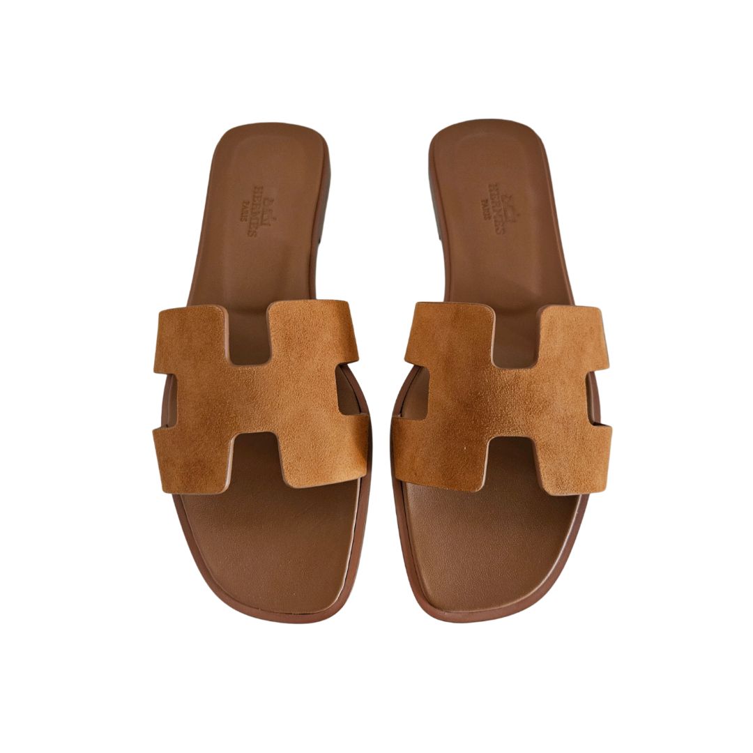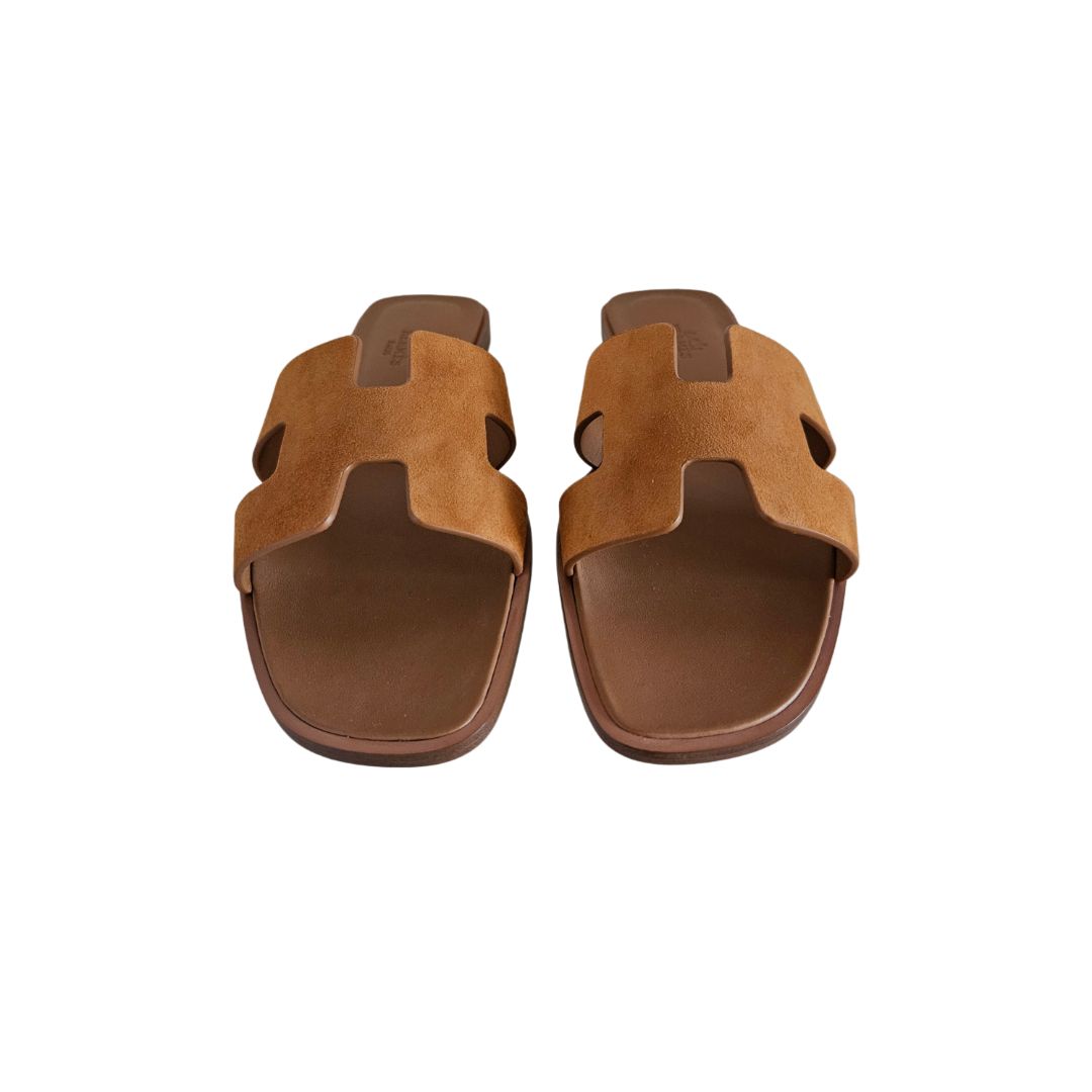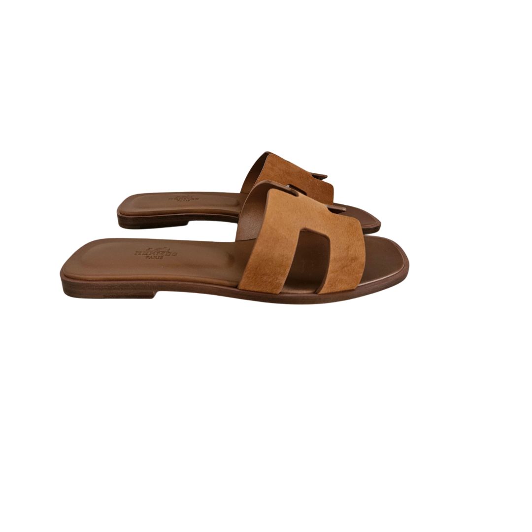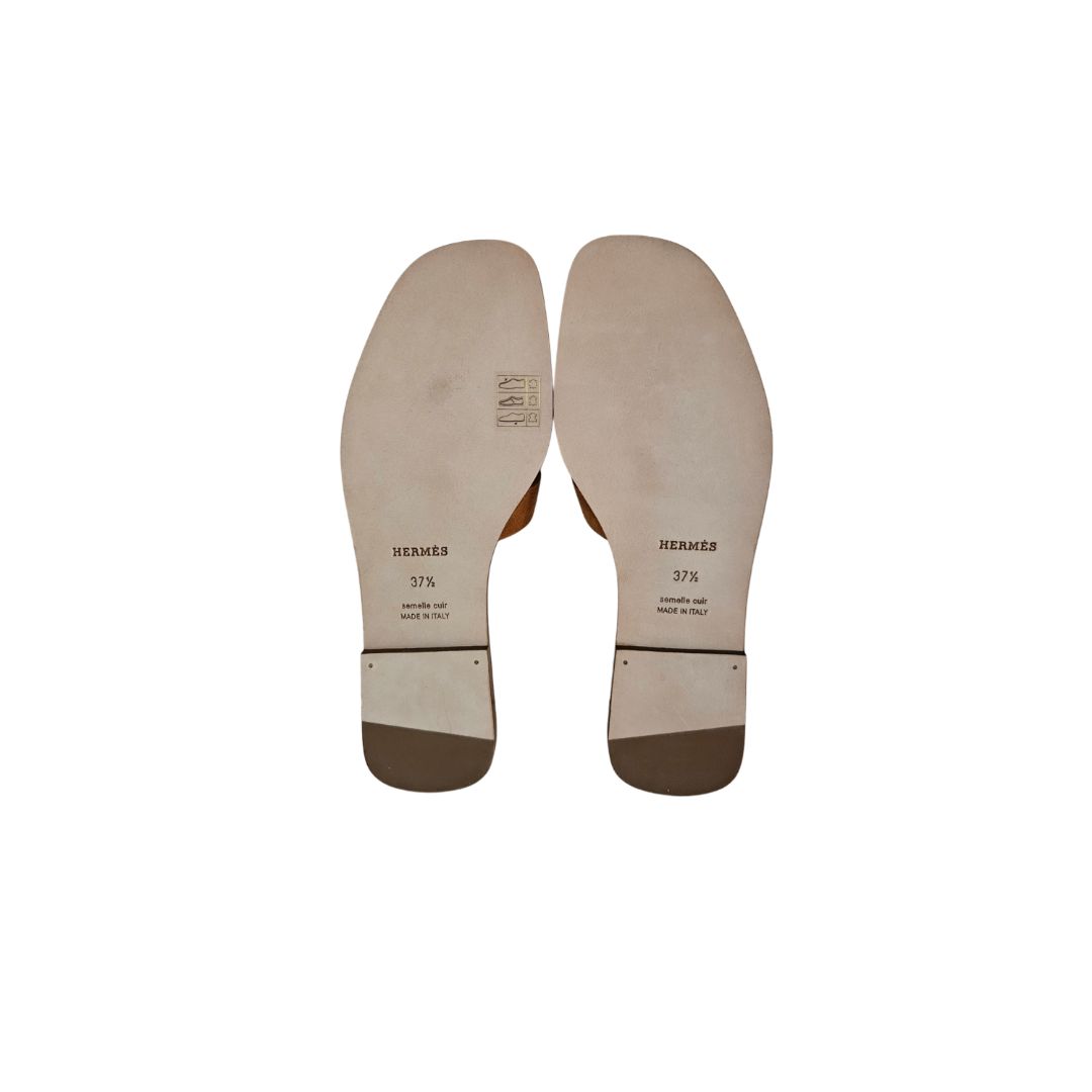 Hermes Brown Suede & Leather Oran Flat Sandal, size 37.5