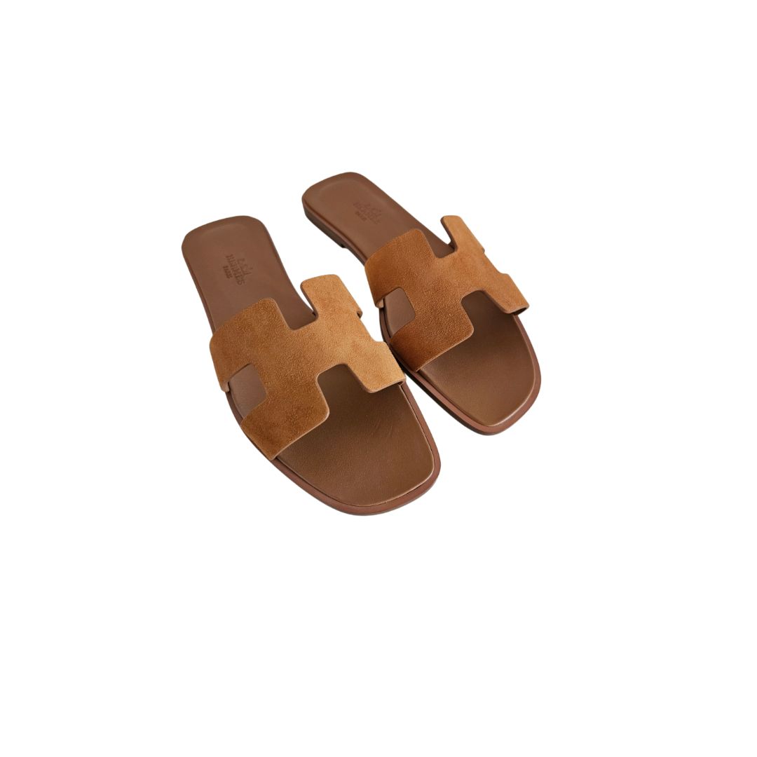 Hermes Brown Suede & Leather Oran Flat Sandal