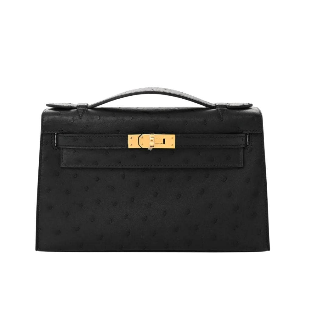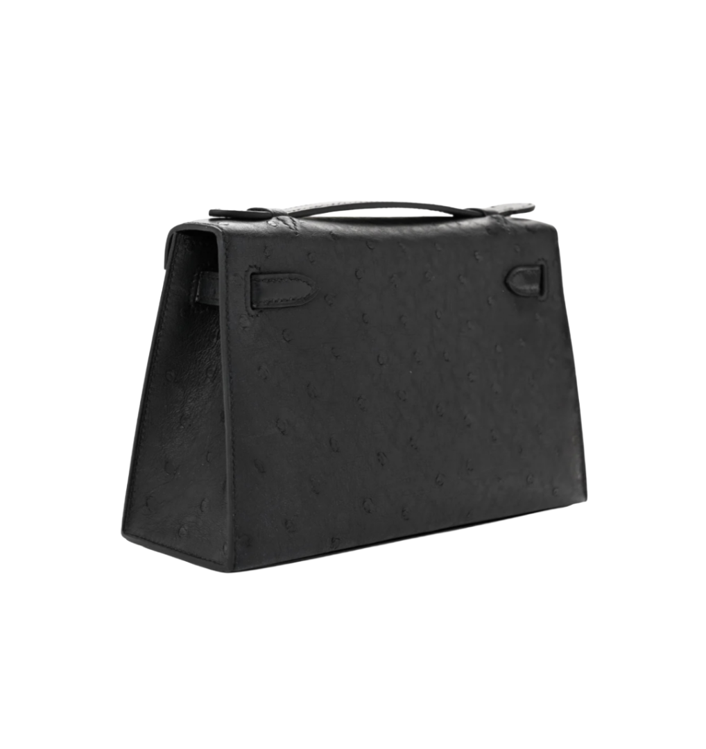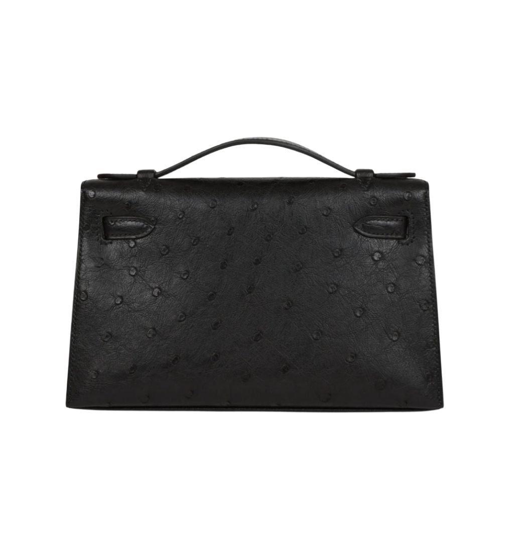 Hermes Noir Ostrich Leather GHW Kelly Pochette