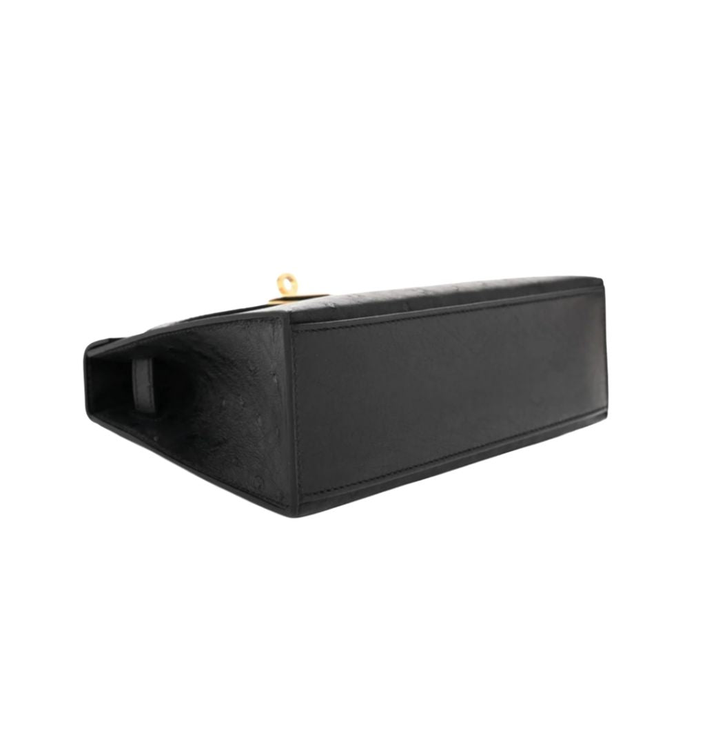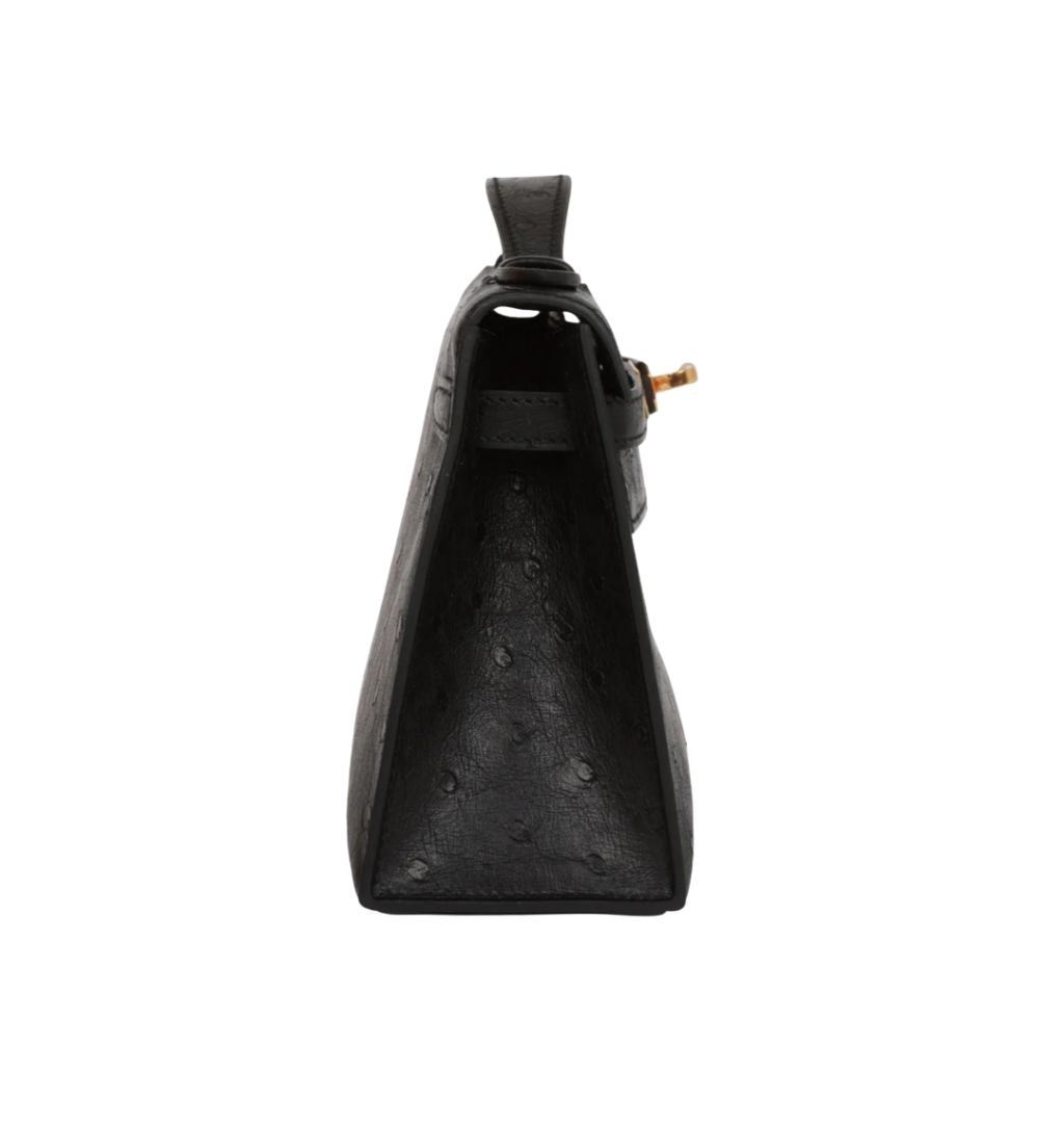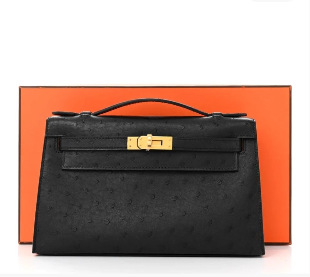 Hermes Noir Ostrich Leather GHW Kelly Pochette