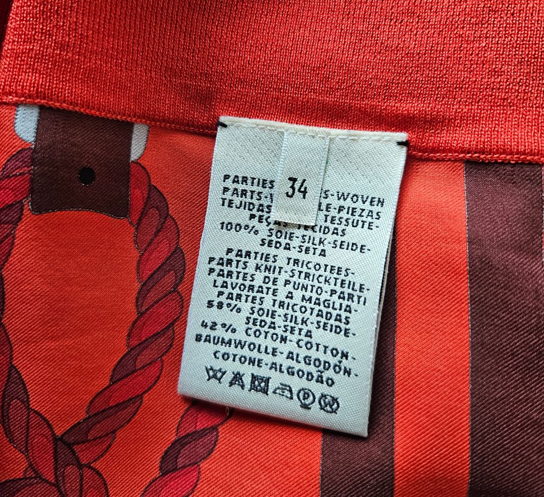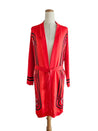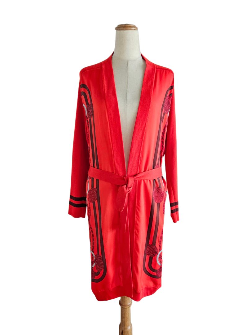 Hermès Red Print Silk & Knit Trim Long Twillaine Cardigan , Size FR34