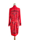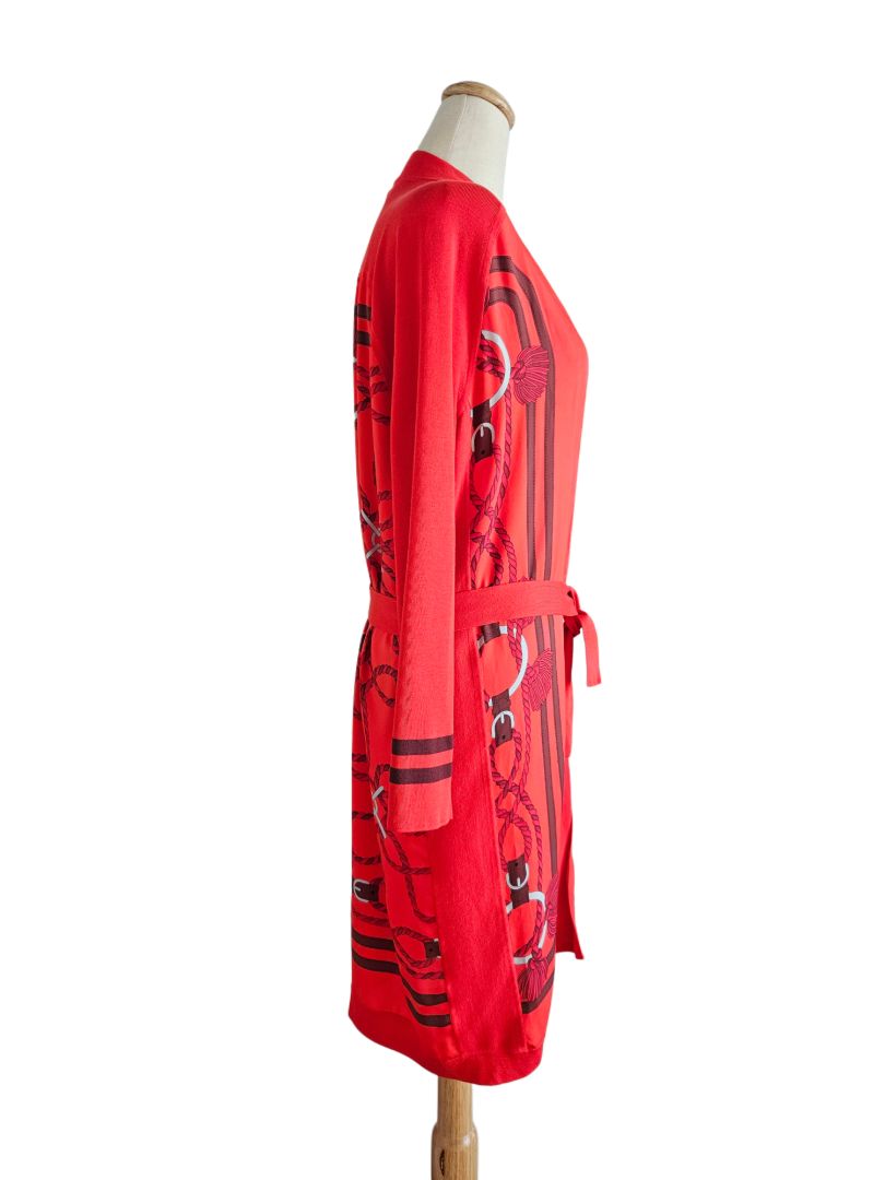 Hermès Red Print Silk & Knit Trim Long Twillaine Cardigan with belt