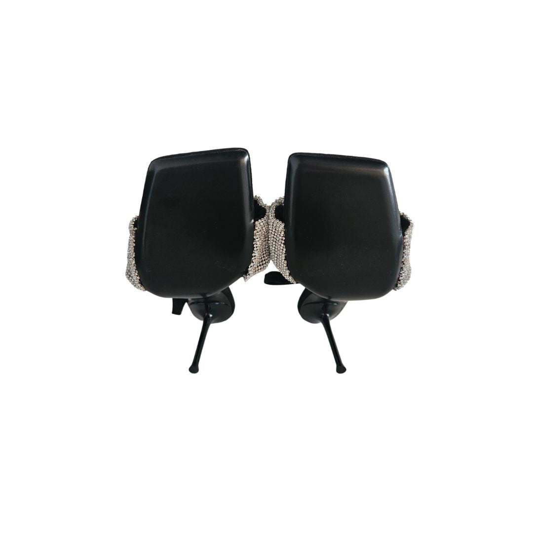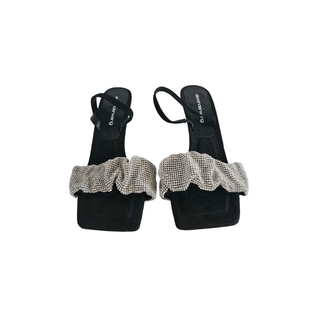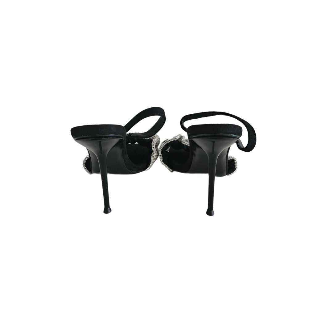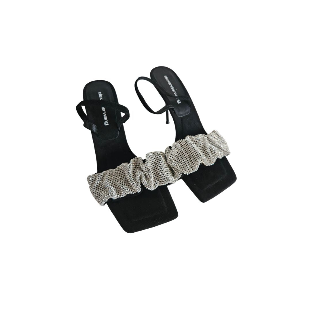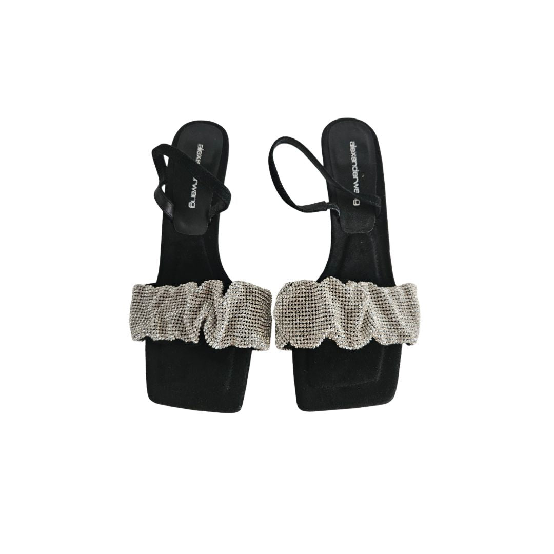 Alexander Wang Black Suede Crystal Embellished Ruched Slingback Sandal