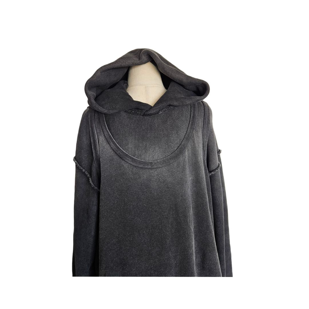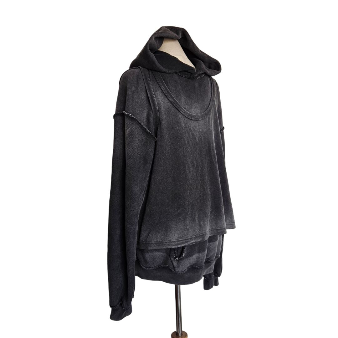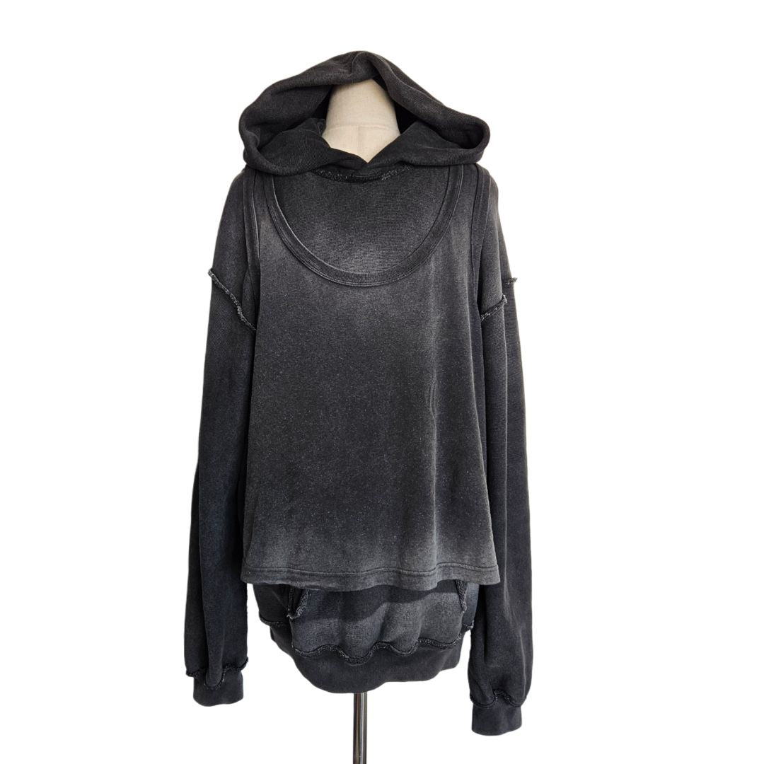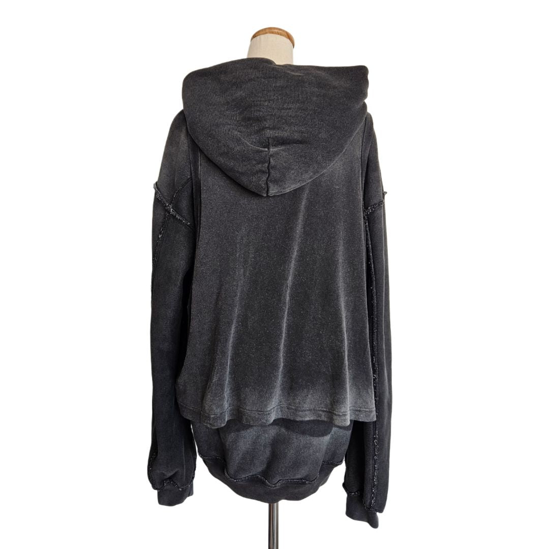 Alexander Wang Grey Distressed Longsleeve Wash Effect Men Hooded Top