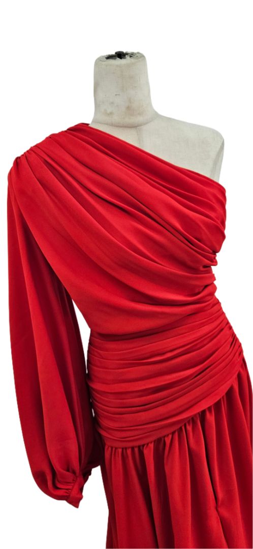 Bronx & Banco Red One-Shoulder Flared Gown Dress