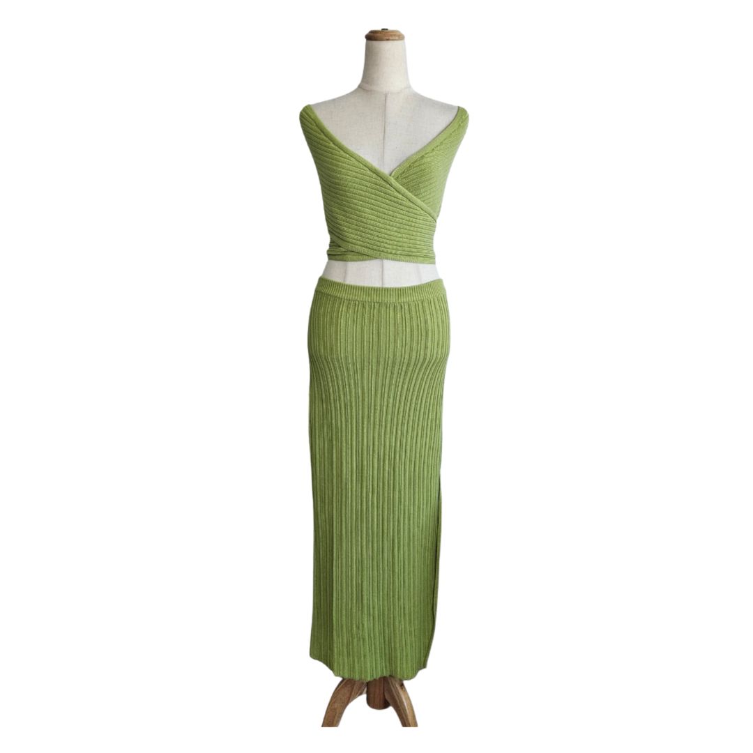 Camila Coelho Green Ribbed Skirt with Bandeau Top