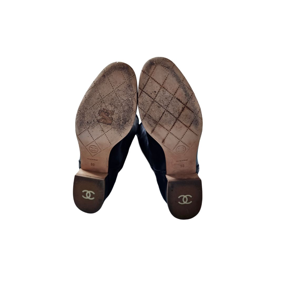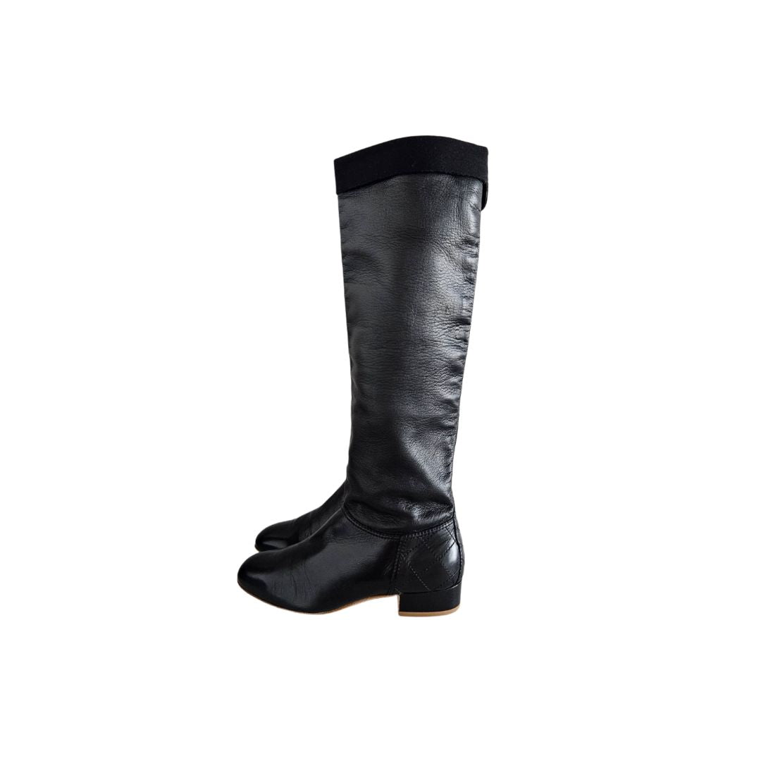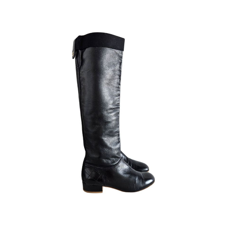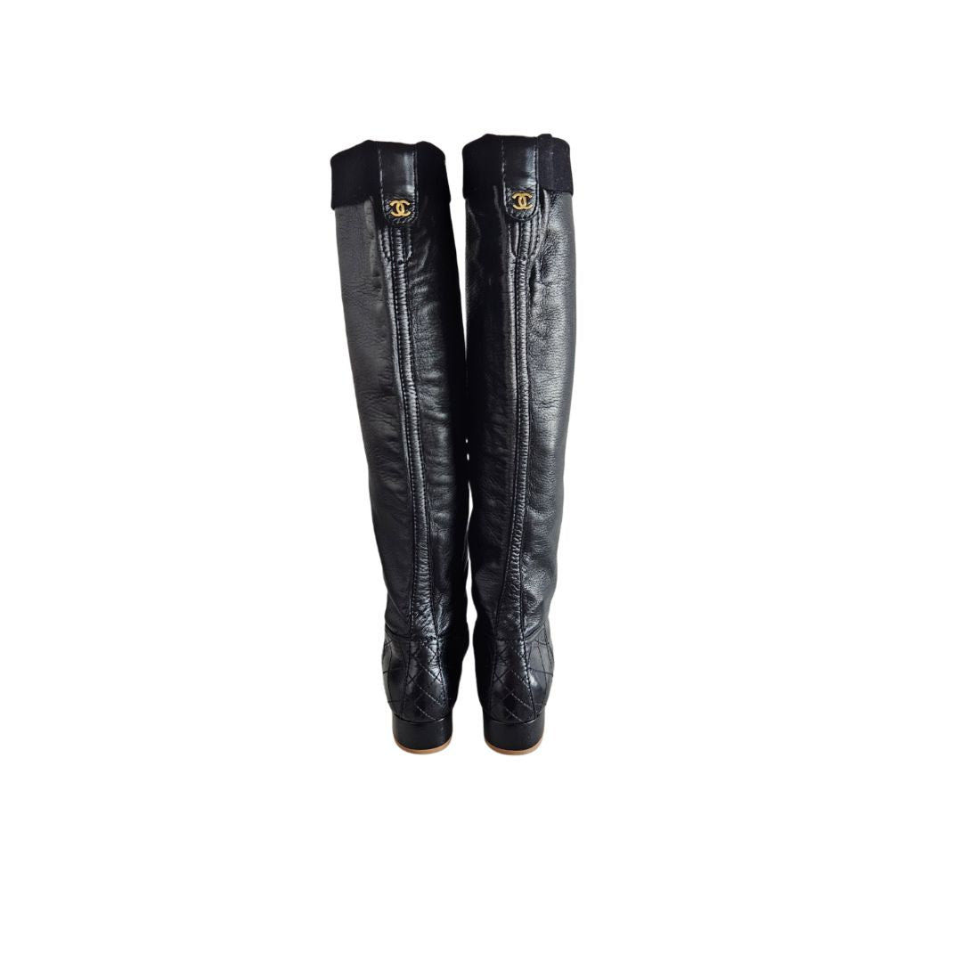 Chanel Black CC Leather & Suede Knee High Boots, size 38