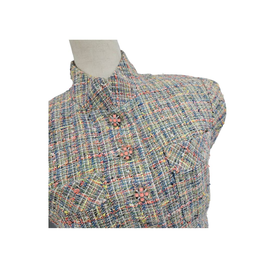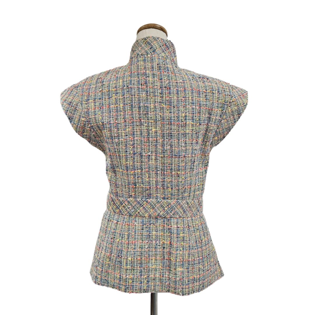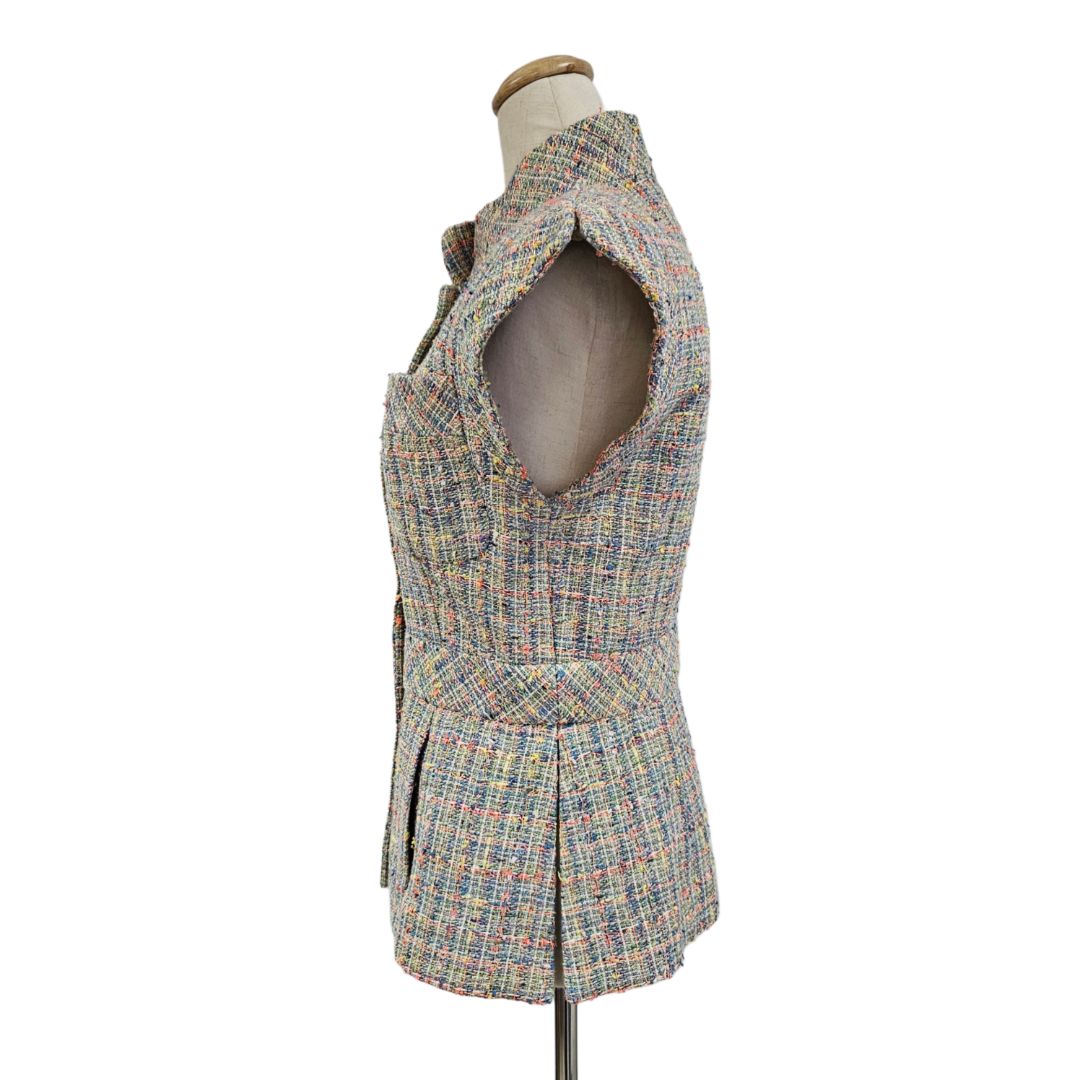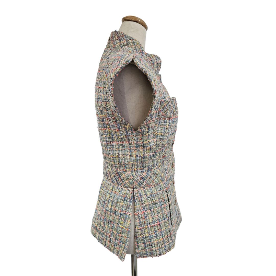 Chanel Multicolor Tweed W/ Crystal Button Vest Top
