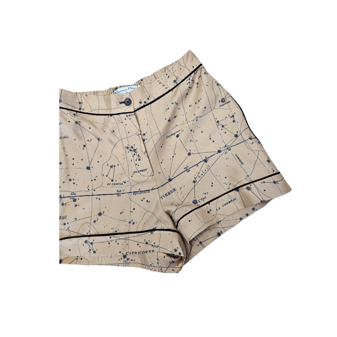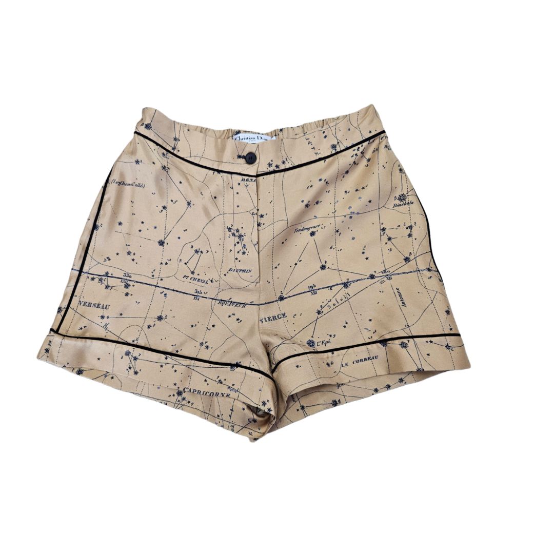 Christian Dior Gold Zodiac Sign Print Silk Short