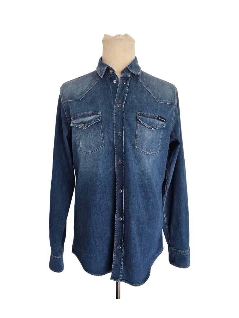 Dolce & Gabbana Denim Blue Button Shirt for men