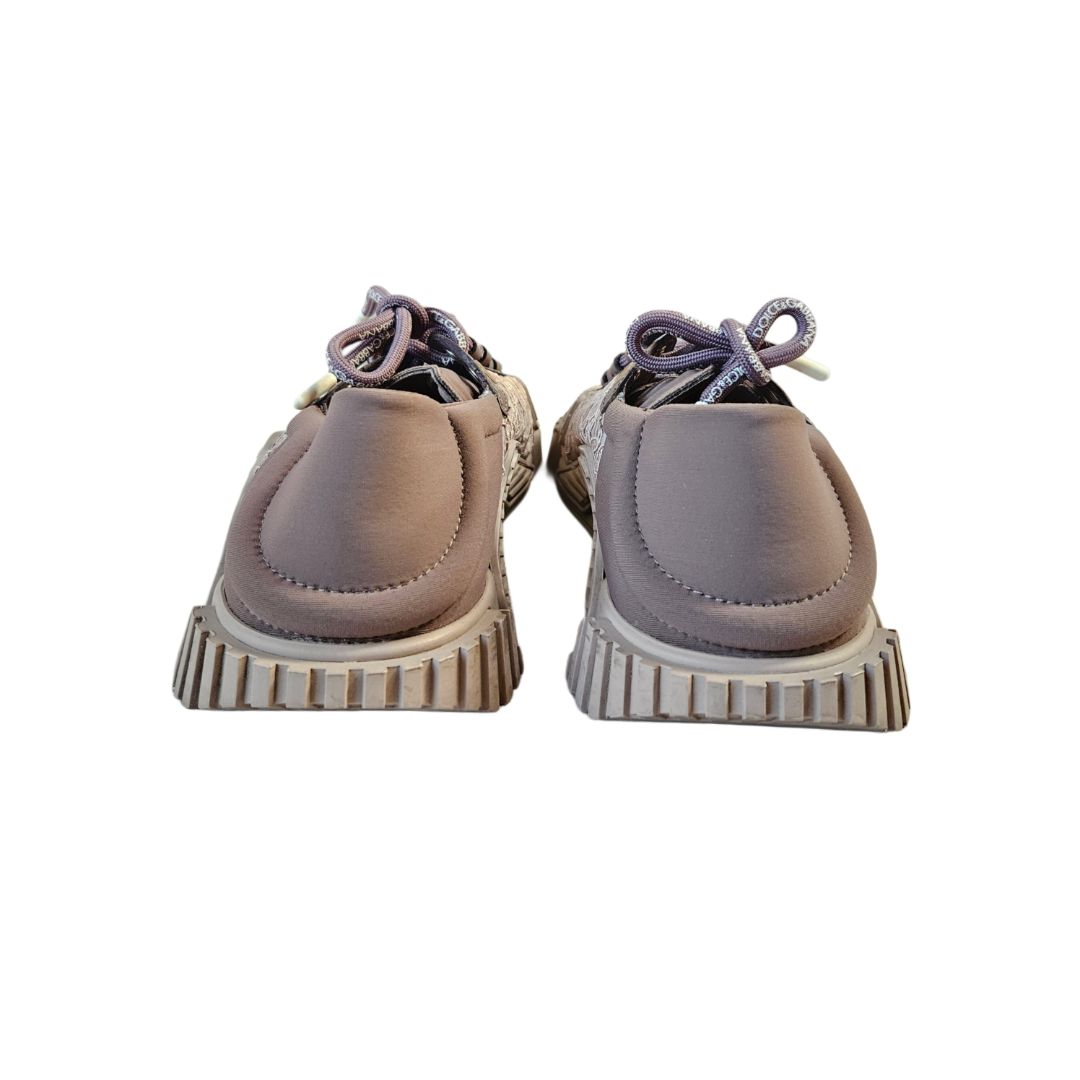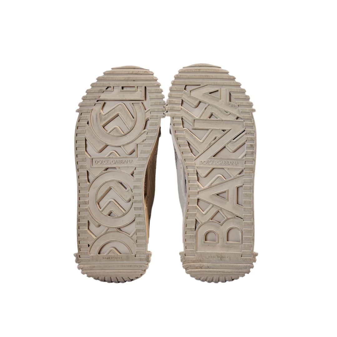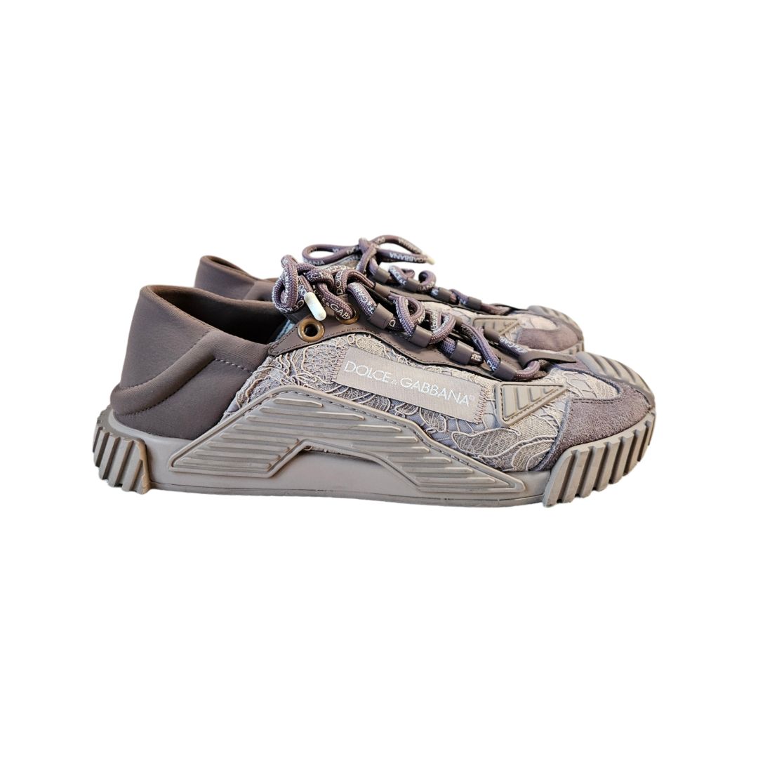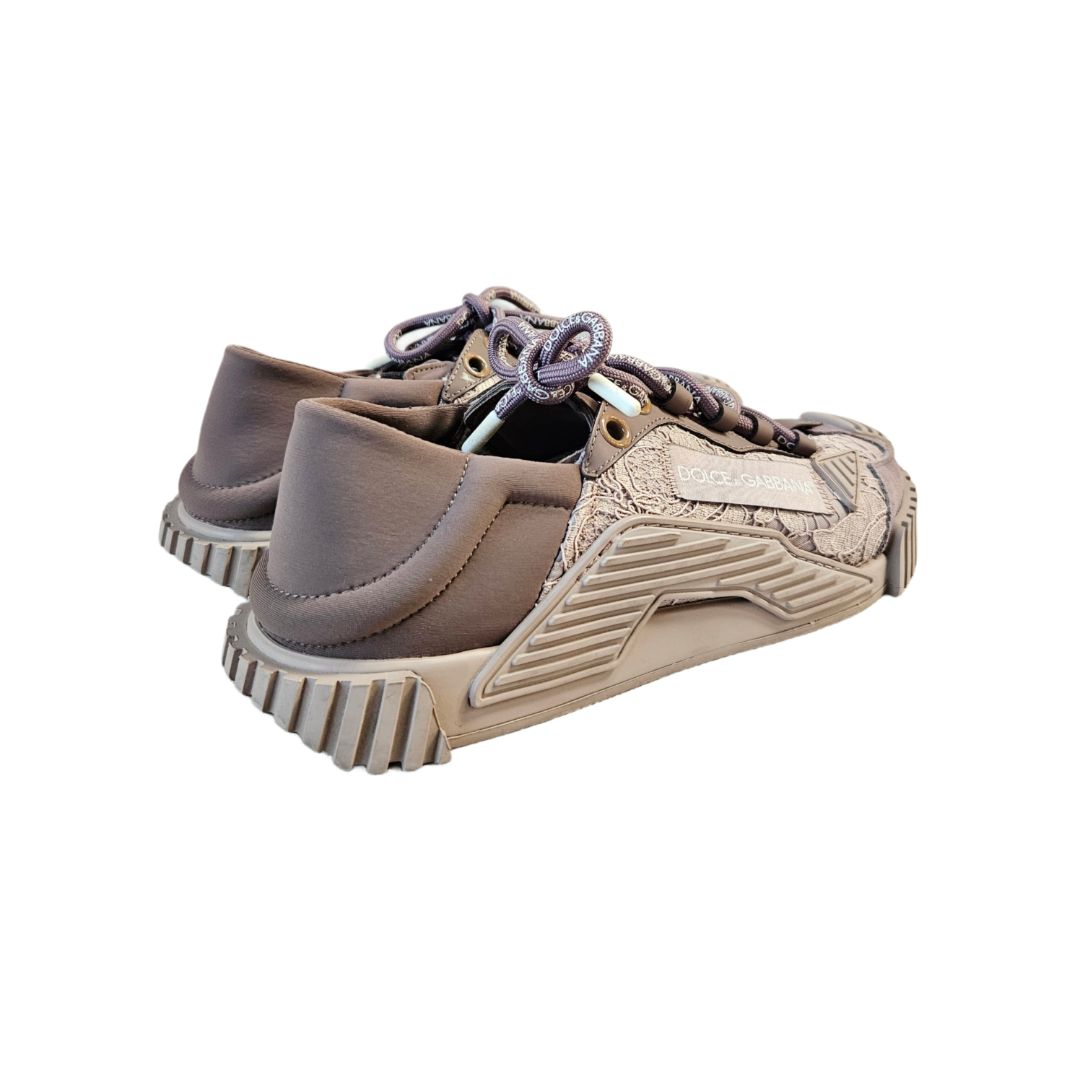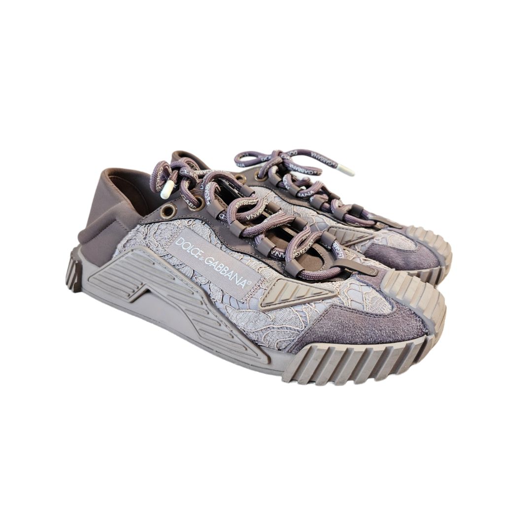 Dolce & Gabbana's NS1 silhouette arrives in a captivating purple that bridges streetwear and luxury. Crafted from a refined blend of fabric and suede, these lace sneakers deliver architectural elegance with every stride—a statement piece for those who refuse to blend into monochromatic wardrobes.