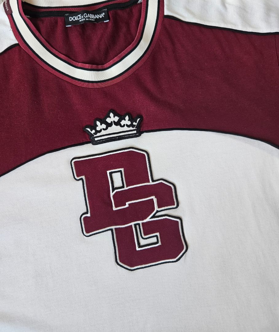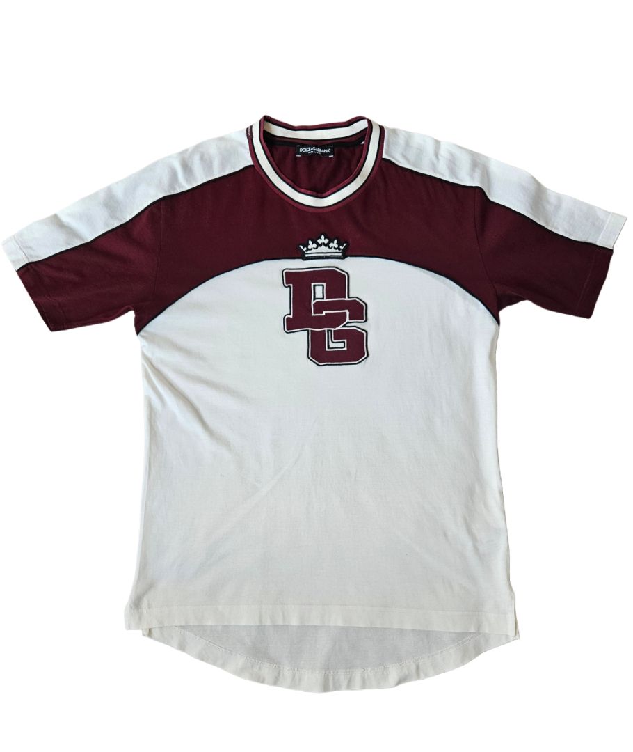 Dolce & Gabbana White/Maroon Logo Print Men's T Shirt