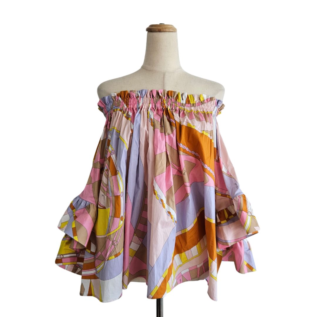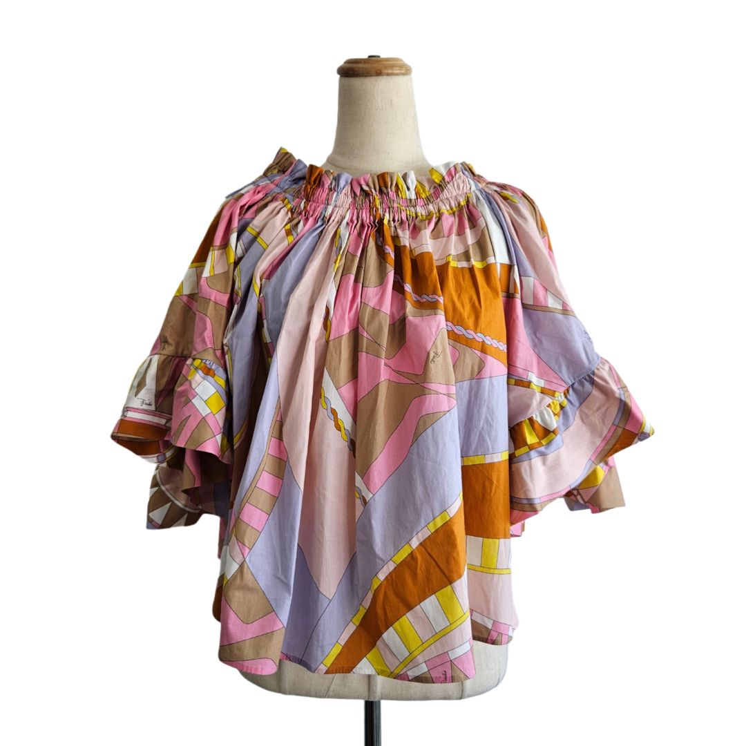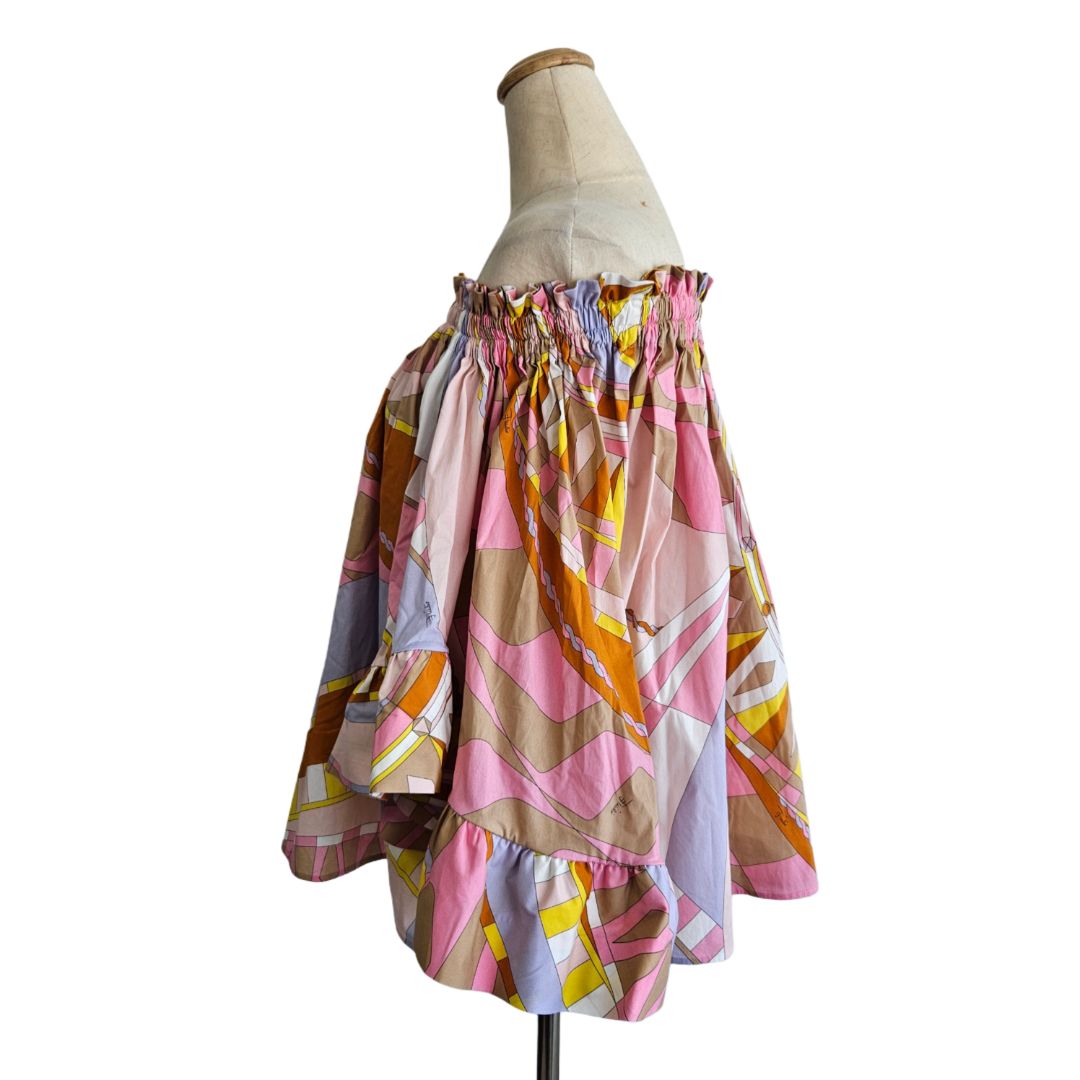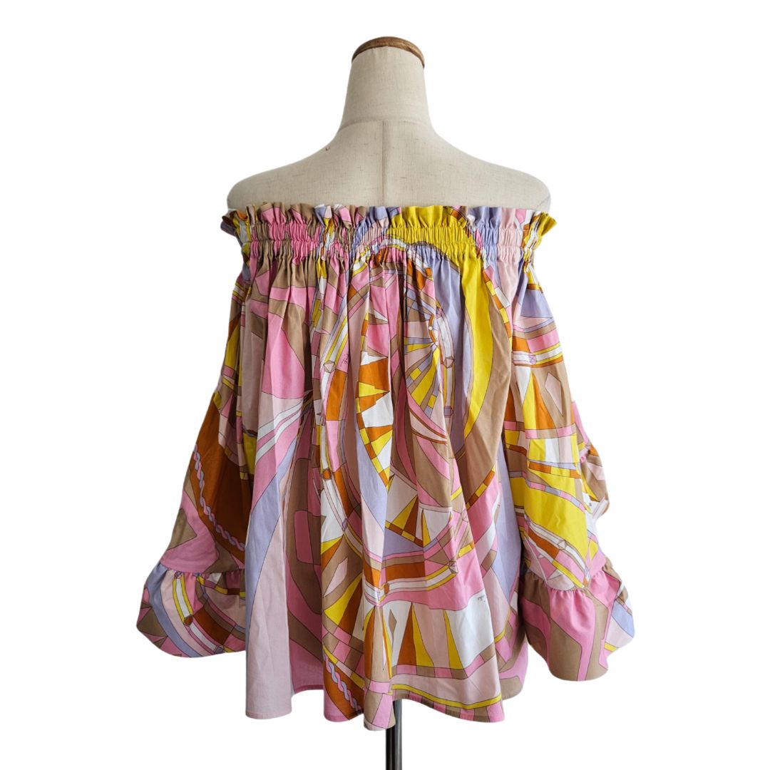 Emilio Pucci Multicolor Printed Ruffle Sleeve Off Shoulder Top