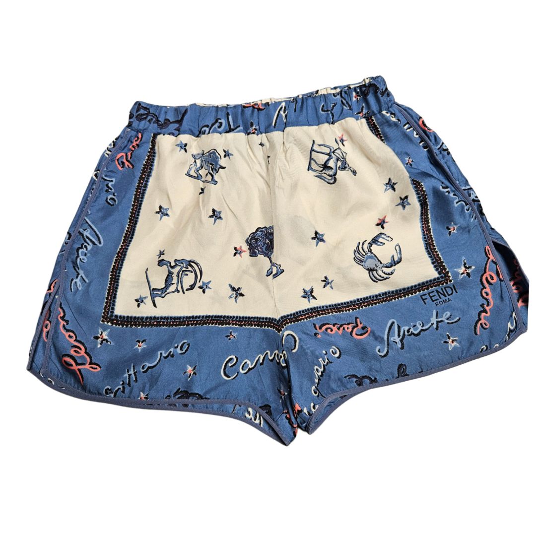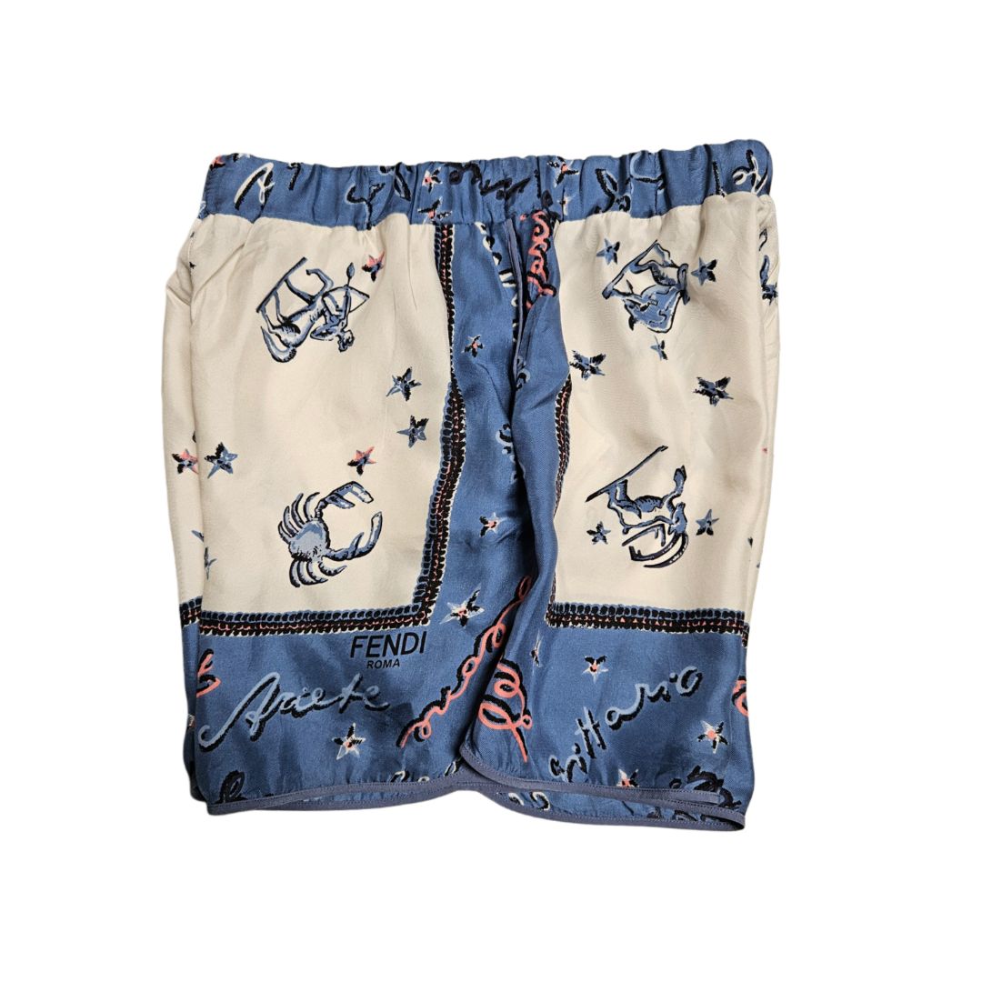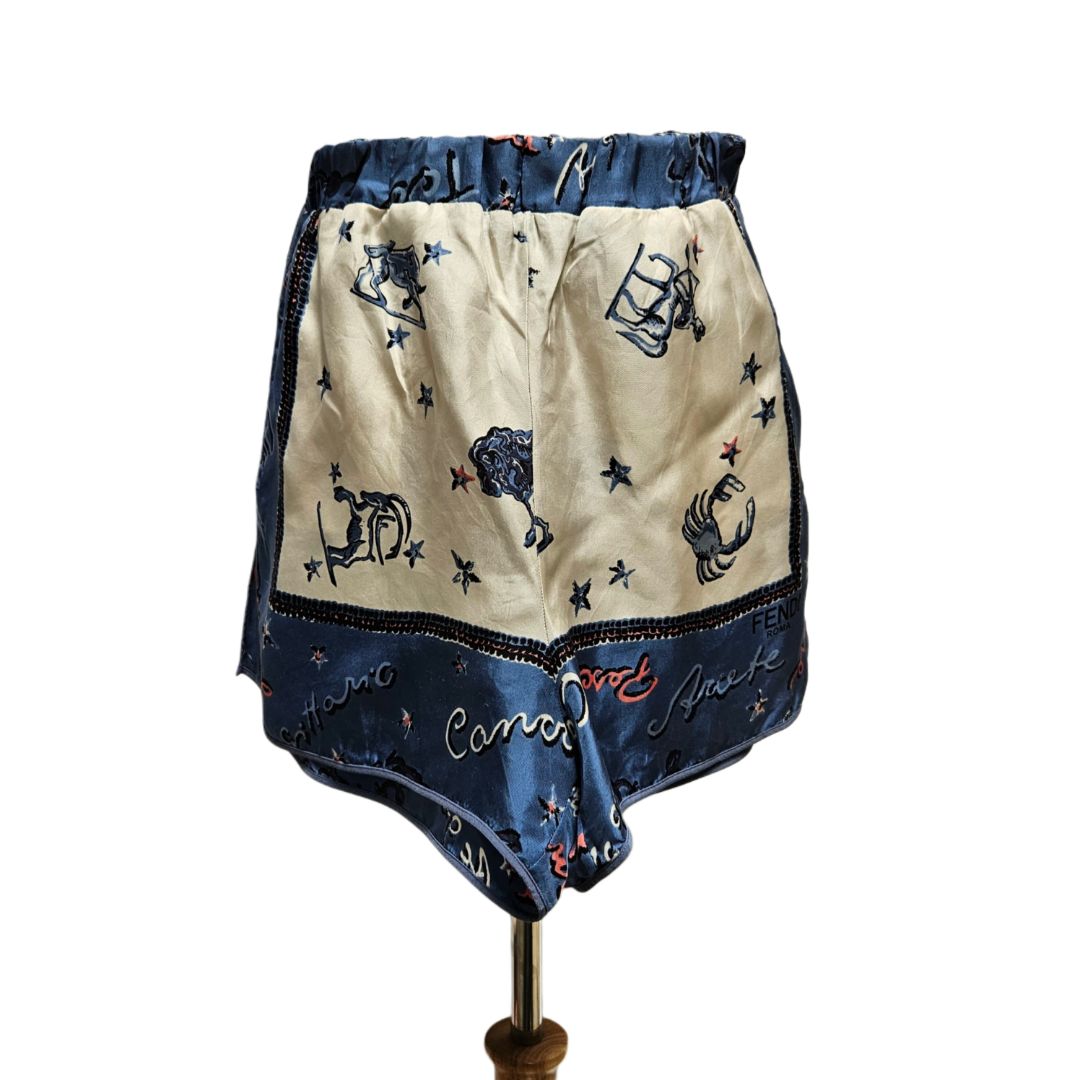 Fendi Cream & Navy Zodiac Sign Printed Silk Pajama Short