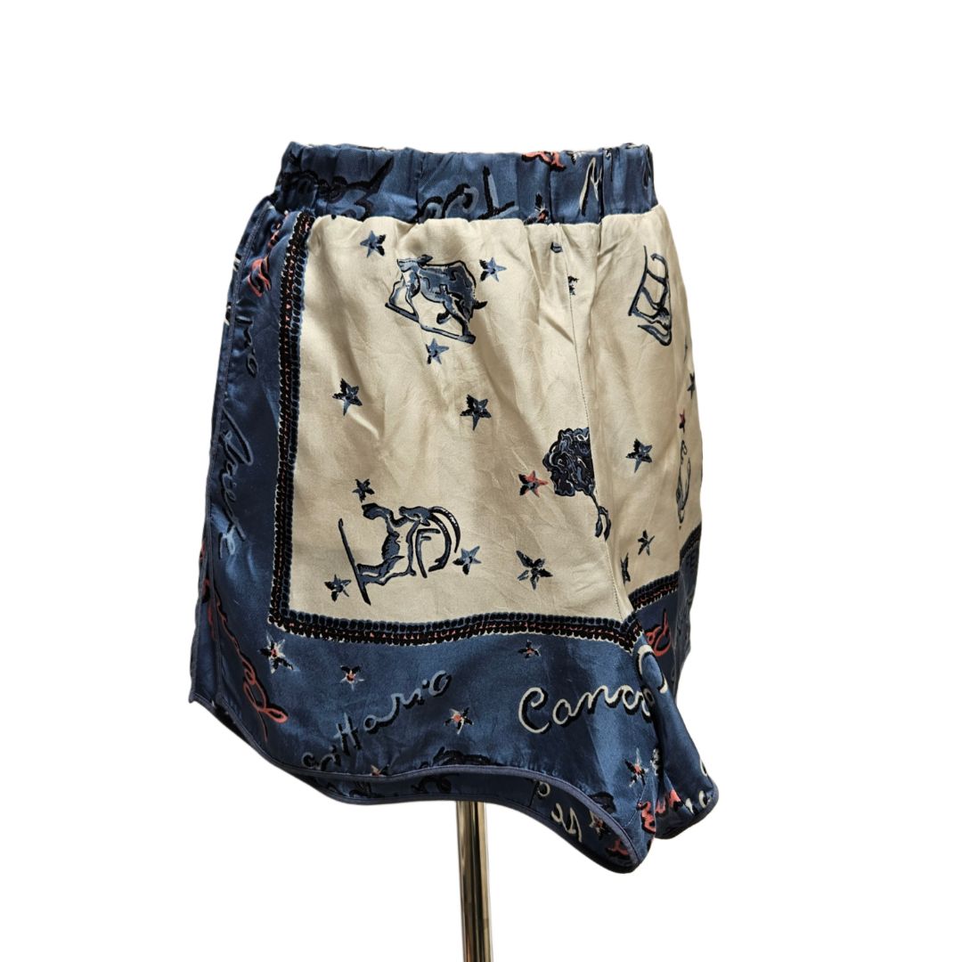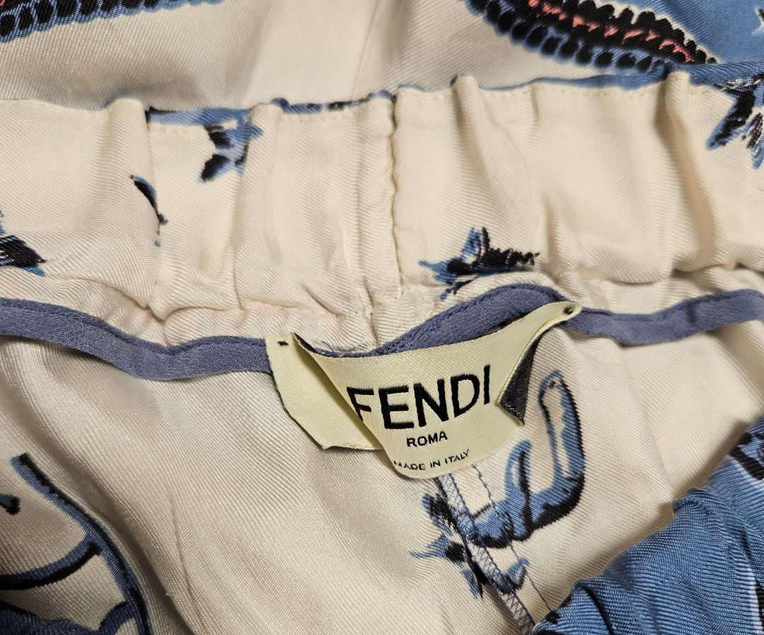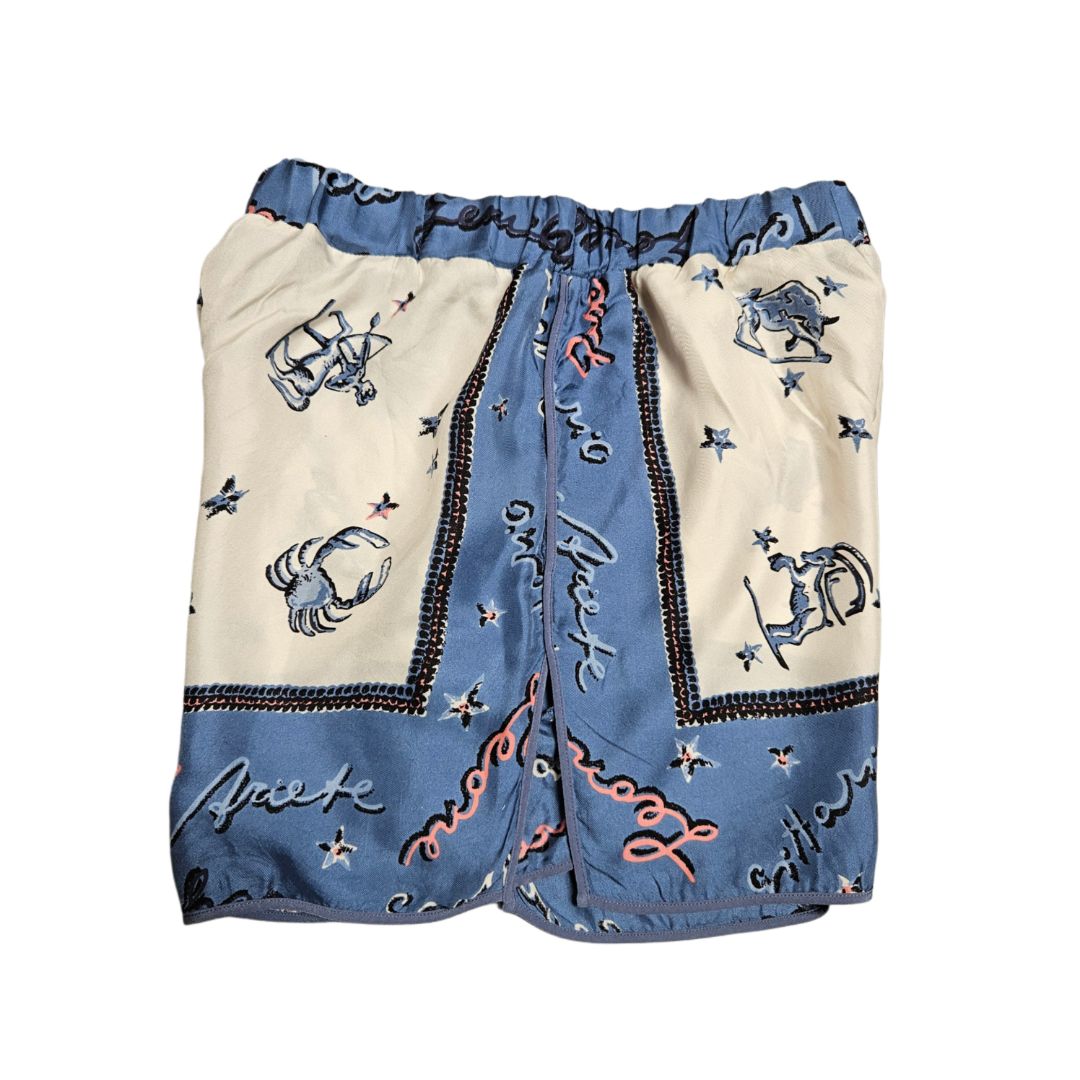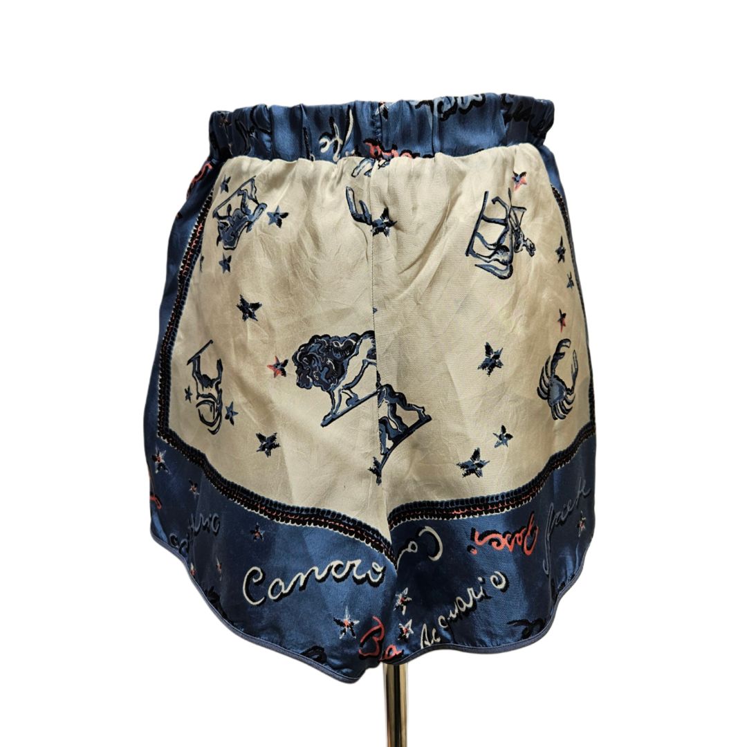 Fendi Cream & Navy Zodiac Sign Printed Silk Pajama Short