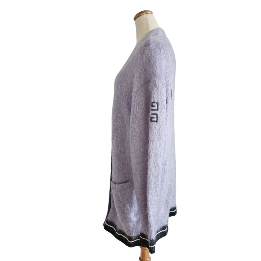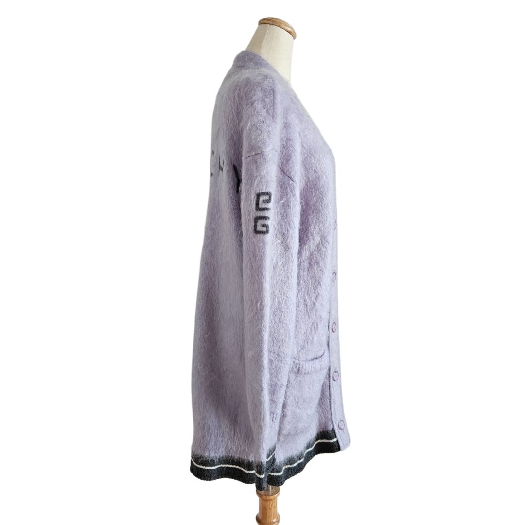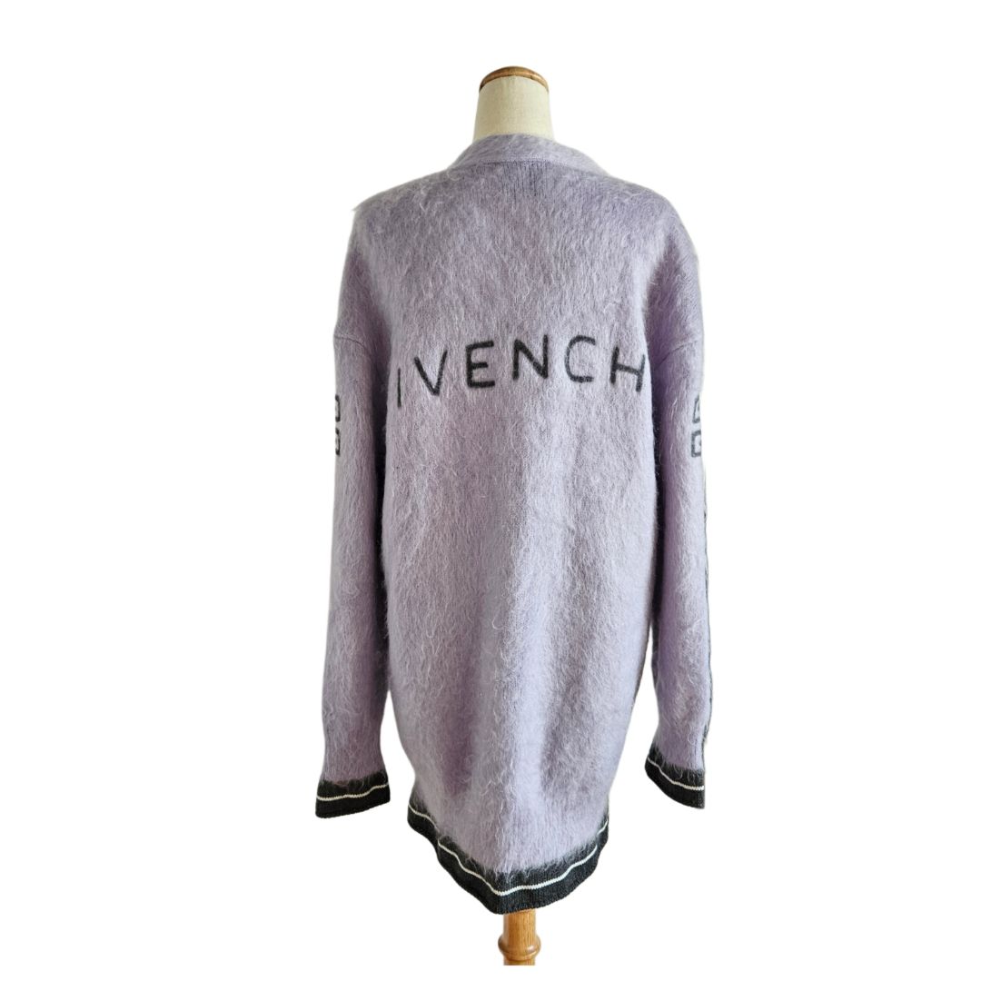 Givenchy Purple/B lack Mohair Logo Print Button Long Jacket