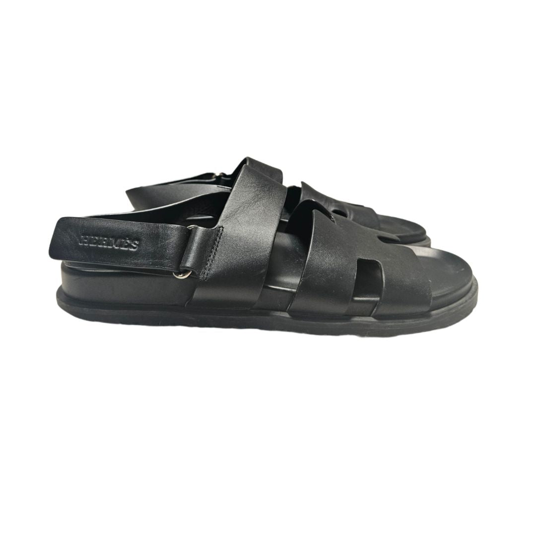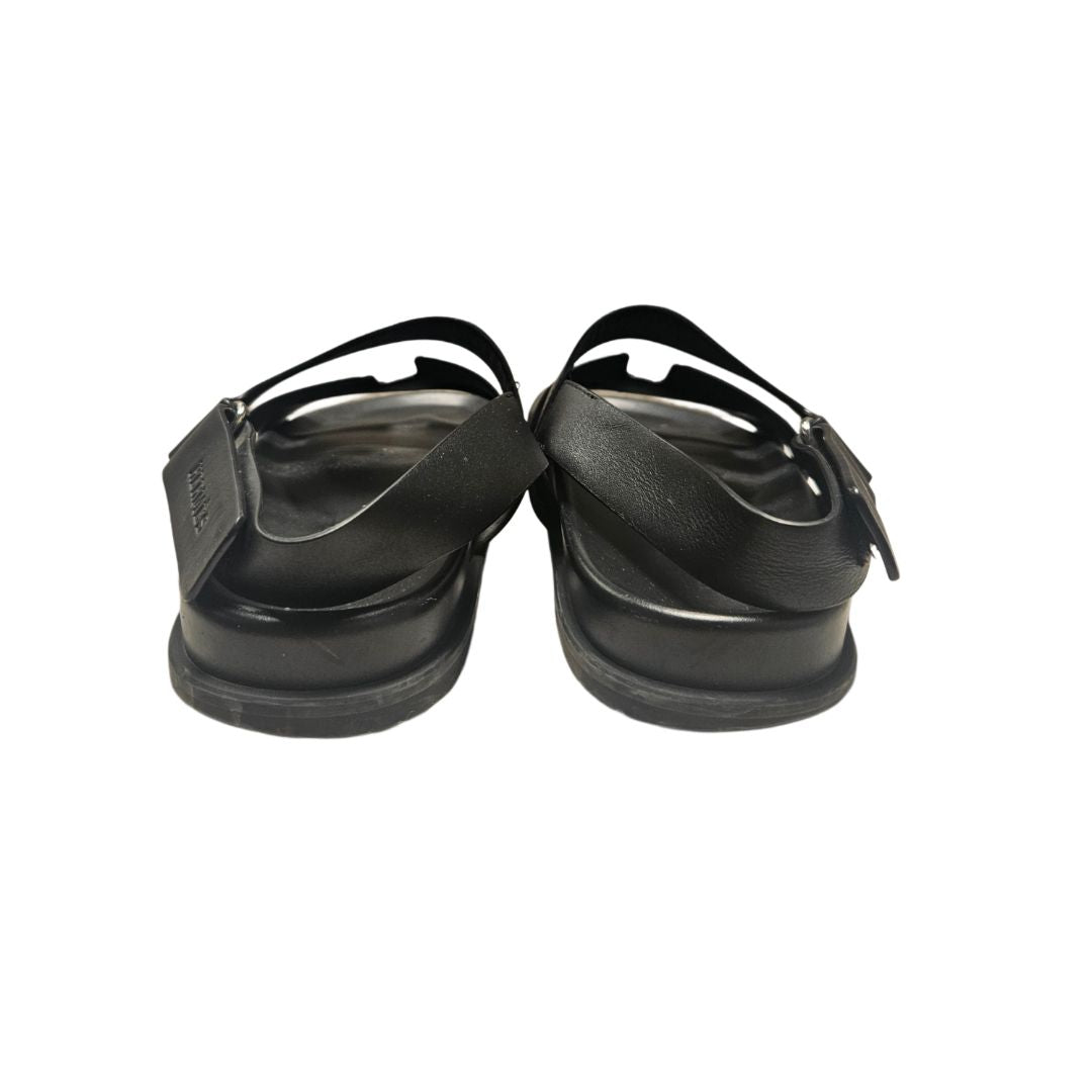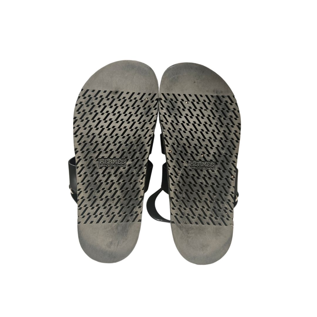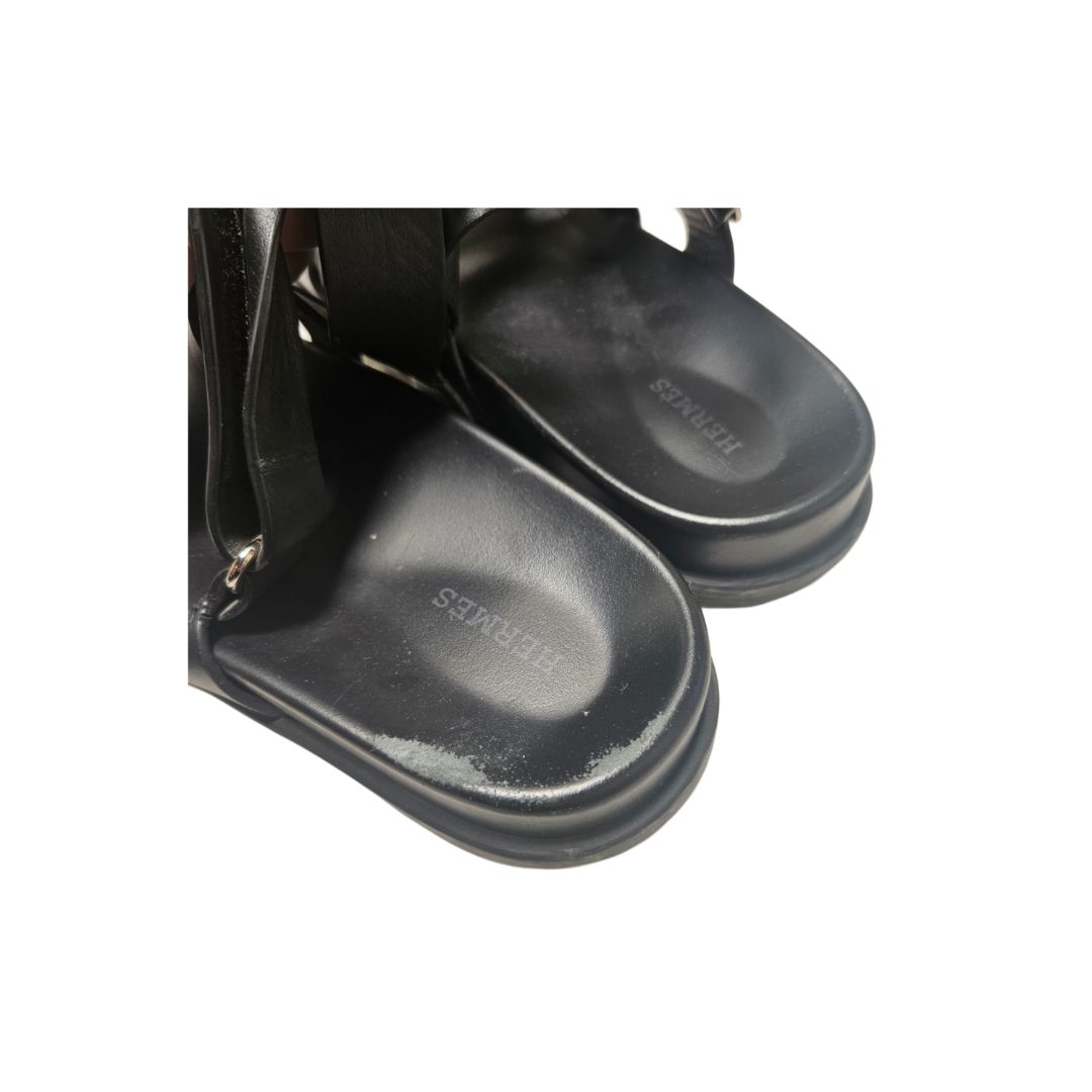 Hermès Takara Black Leather Sandals, Size 40.5