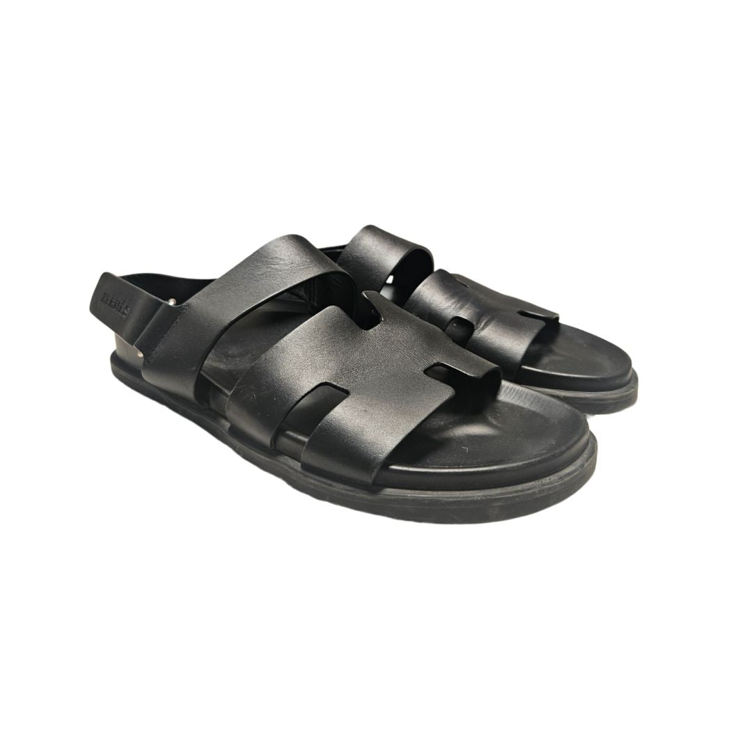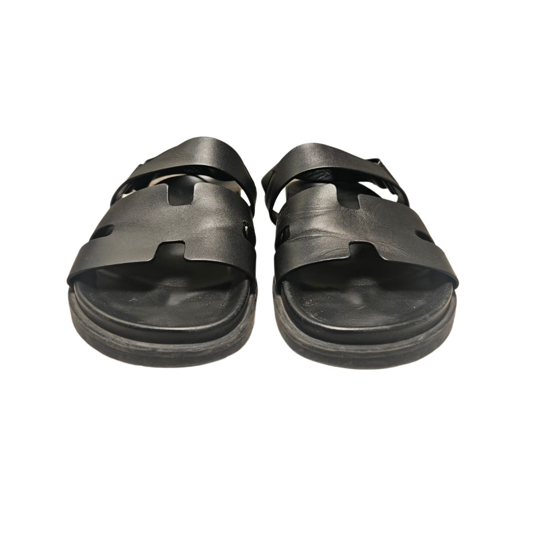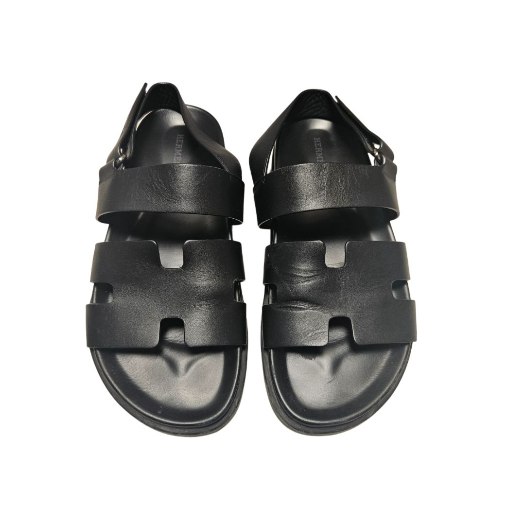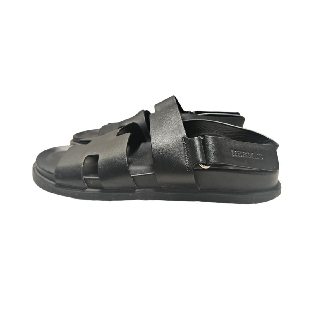 Hermès Takara Black Leather Sandals, Size 40.5