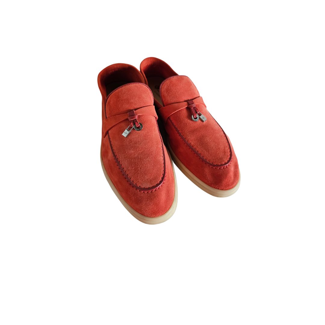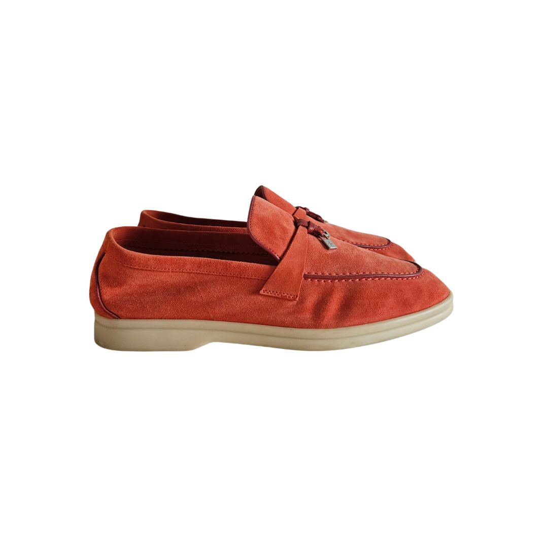 Loro Piana Redorange Suede Summer Charm Loafer, size 40