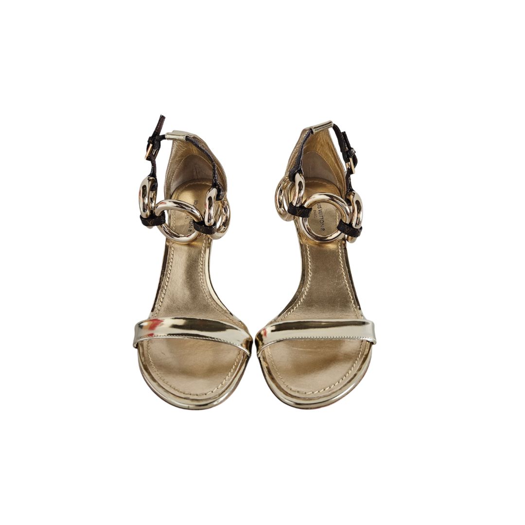 Louis Vuitton Gold Chunky Chain Sandals, size 37