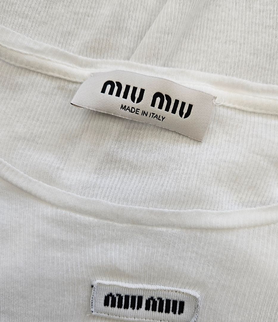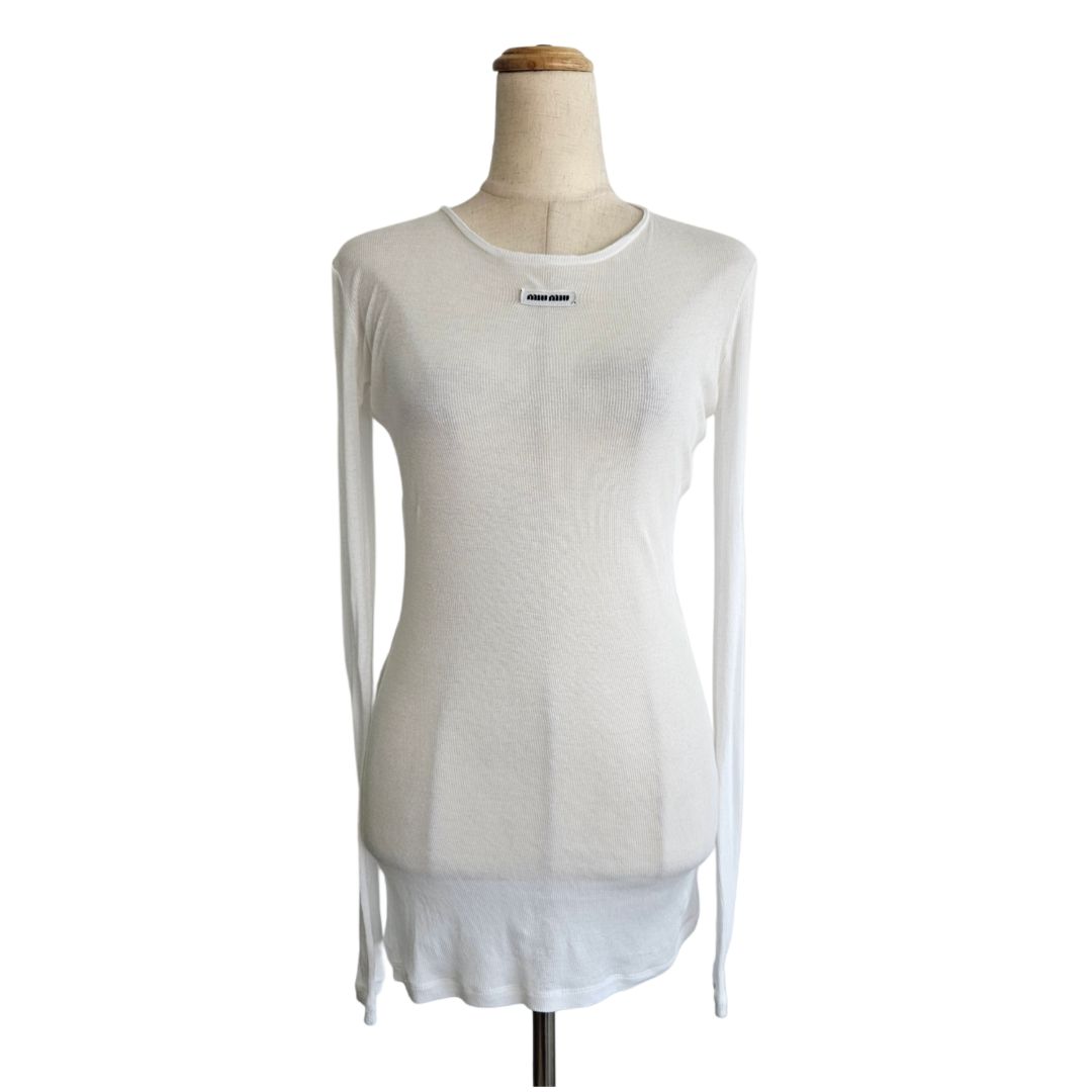 Miu Miu Ribbed Knit Jersey White Long Sleeve Top