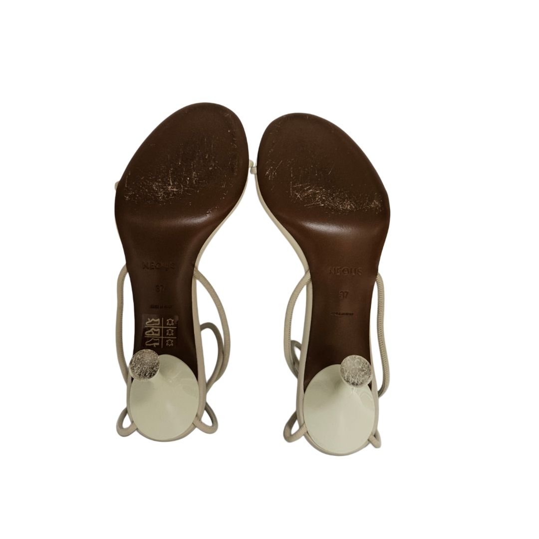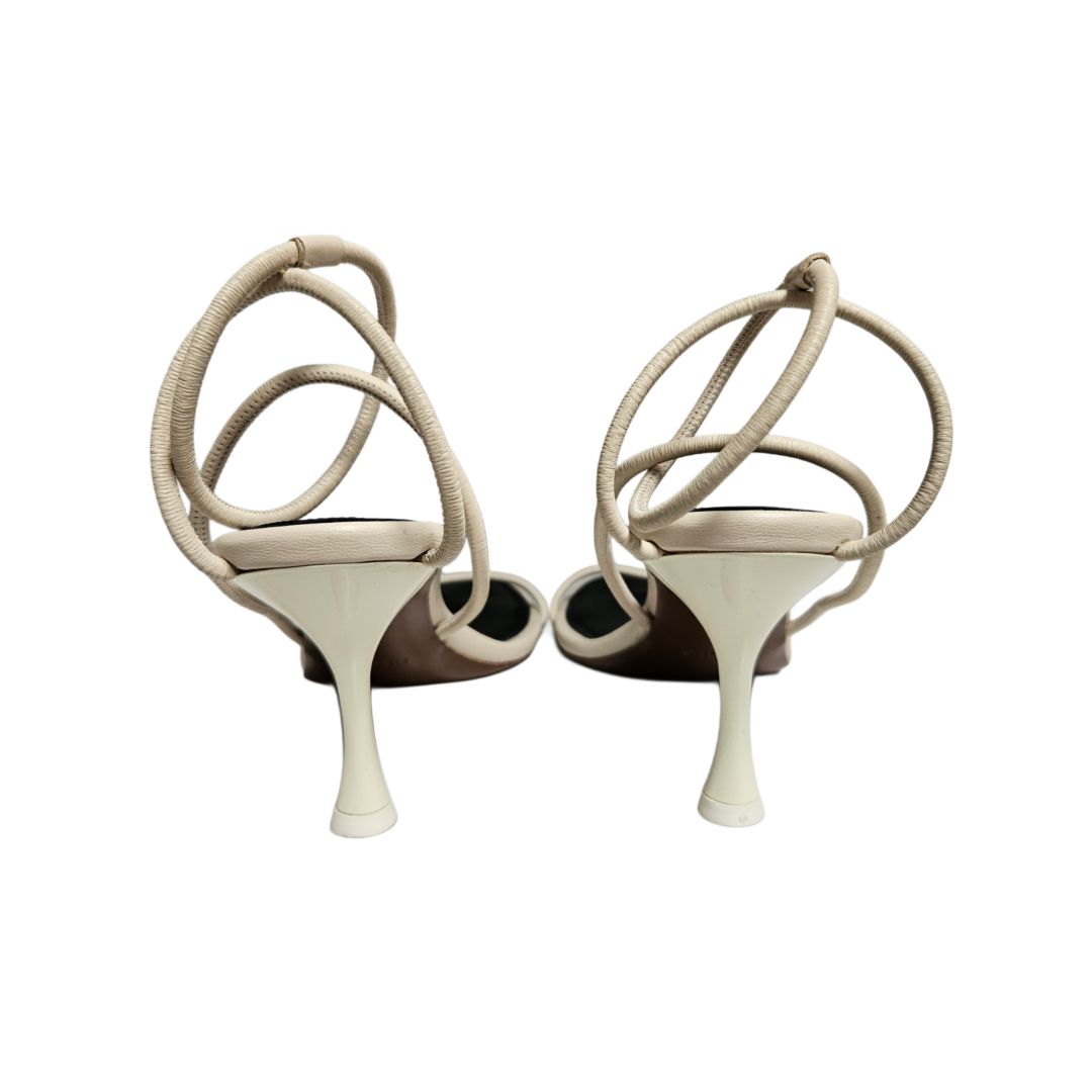 Neous Nenque Cream/ Black Leather Ankle Strap Detail Sandals