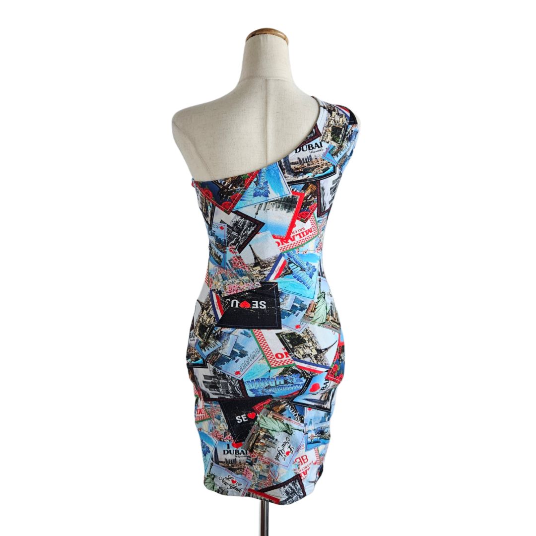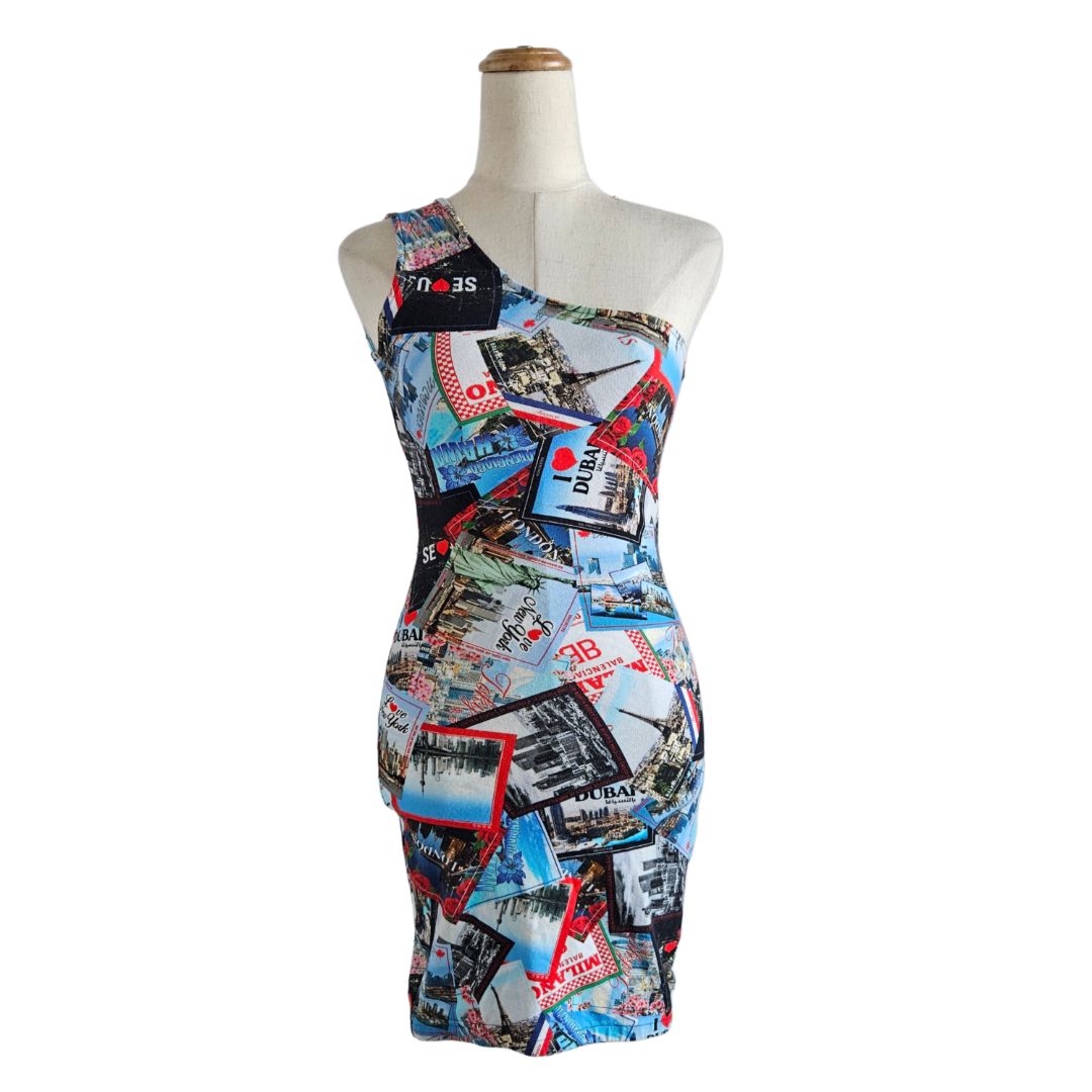 Balenciaga Multicolor Printed One Shoulder Mini Dress