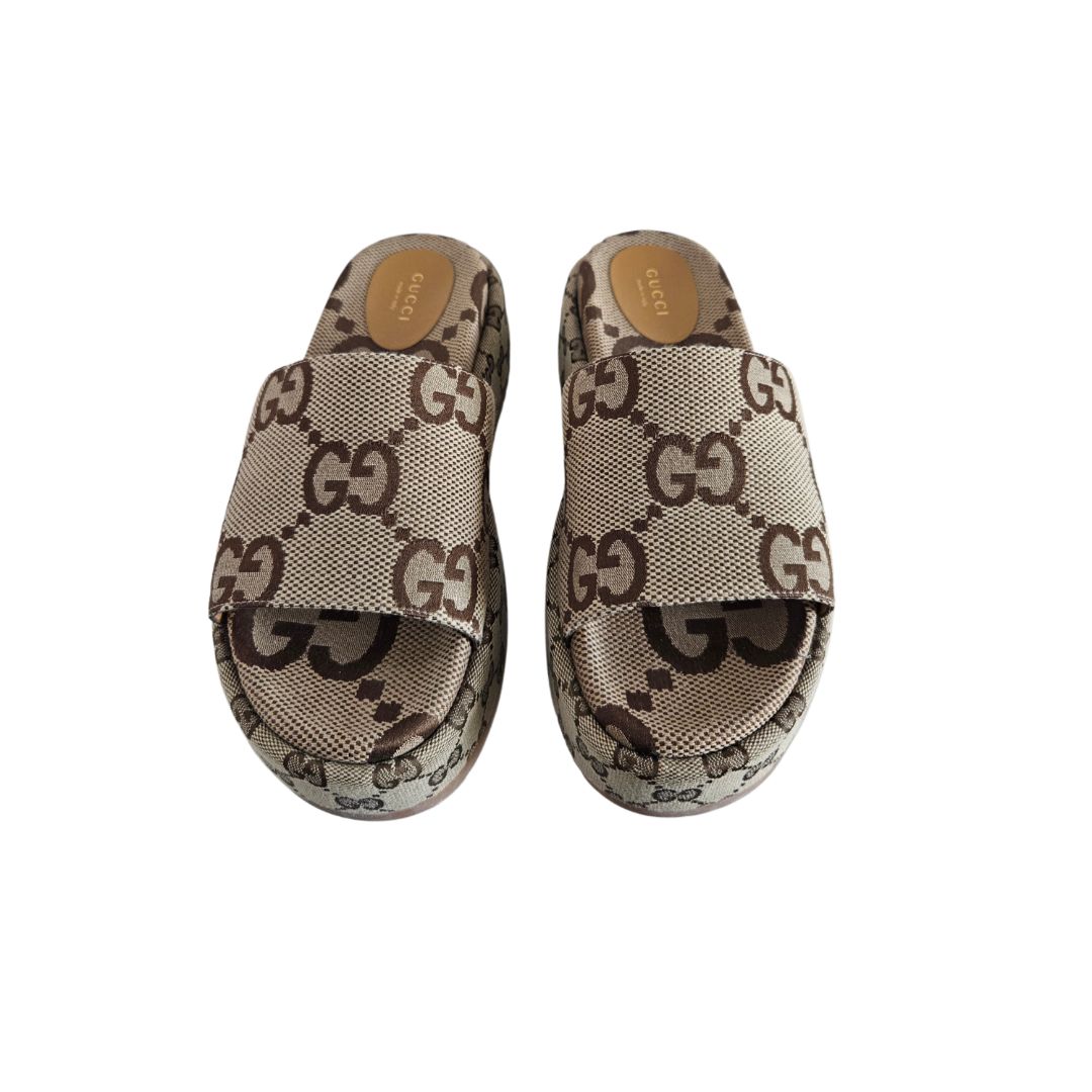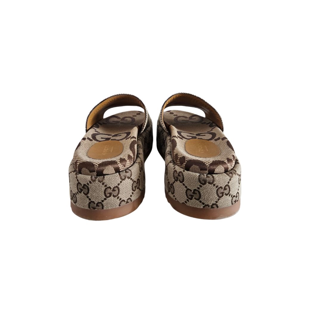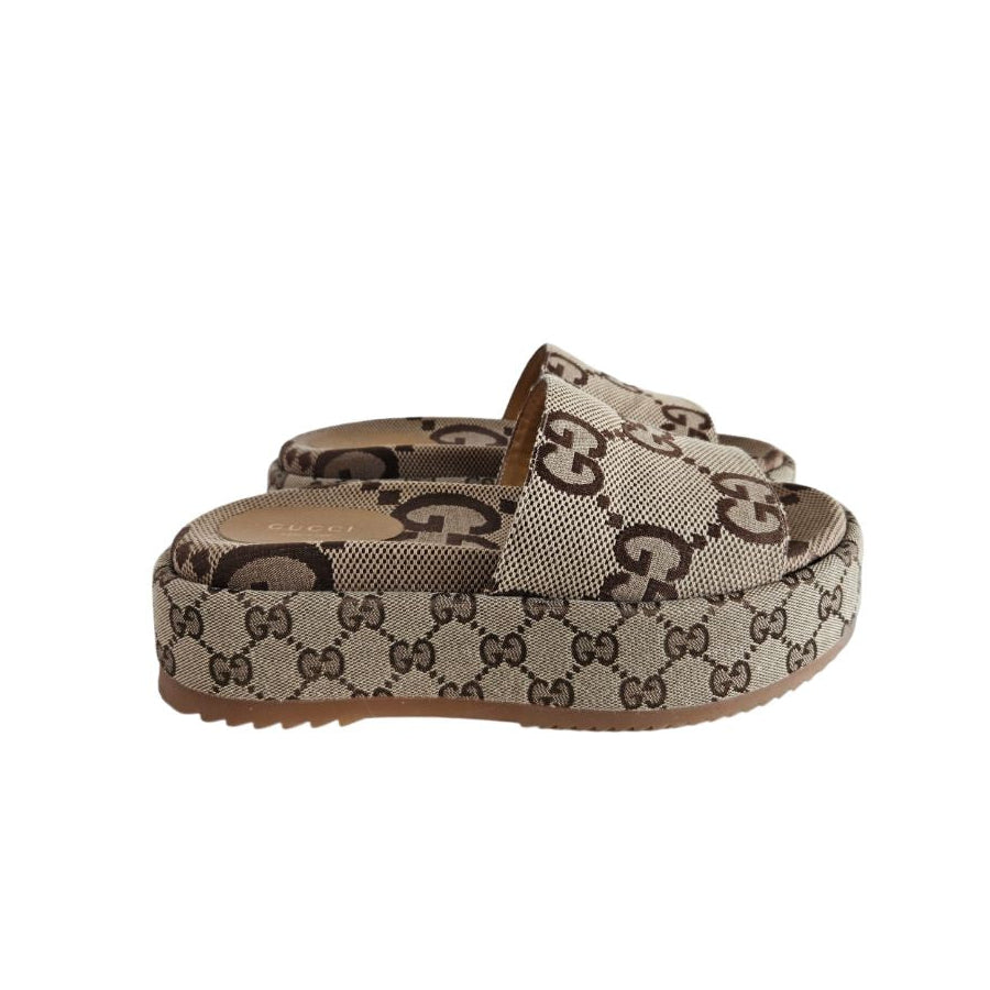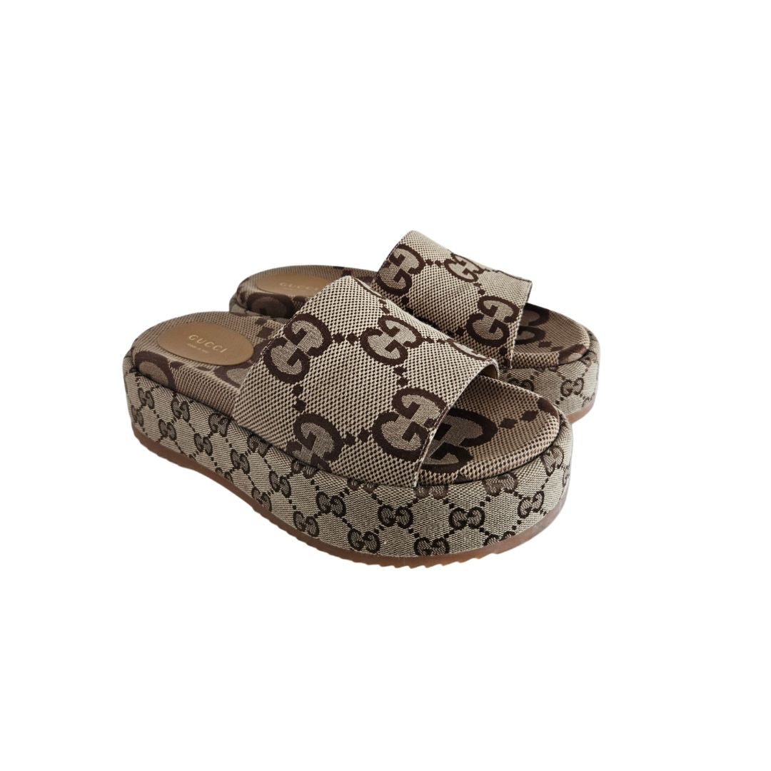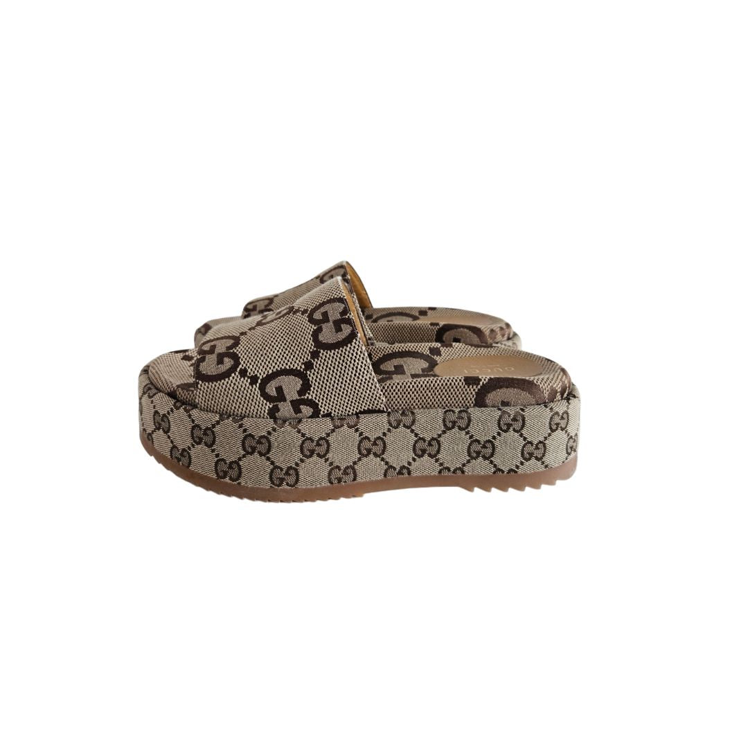 Gucci Beige GG Canvas Flatform Sandal, Size 38.5