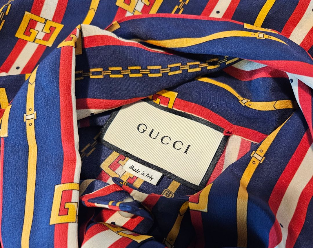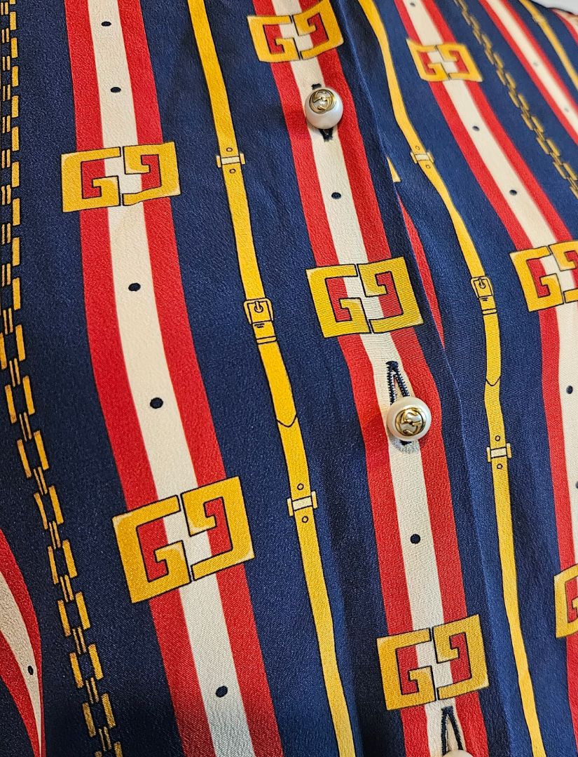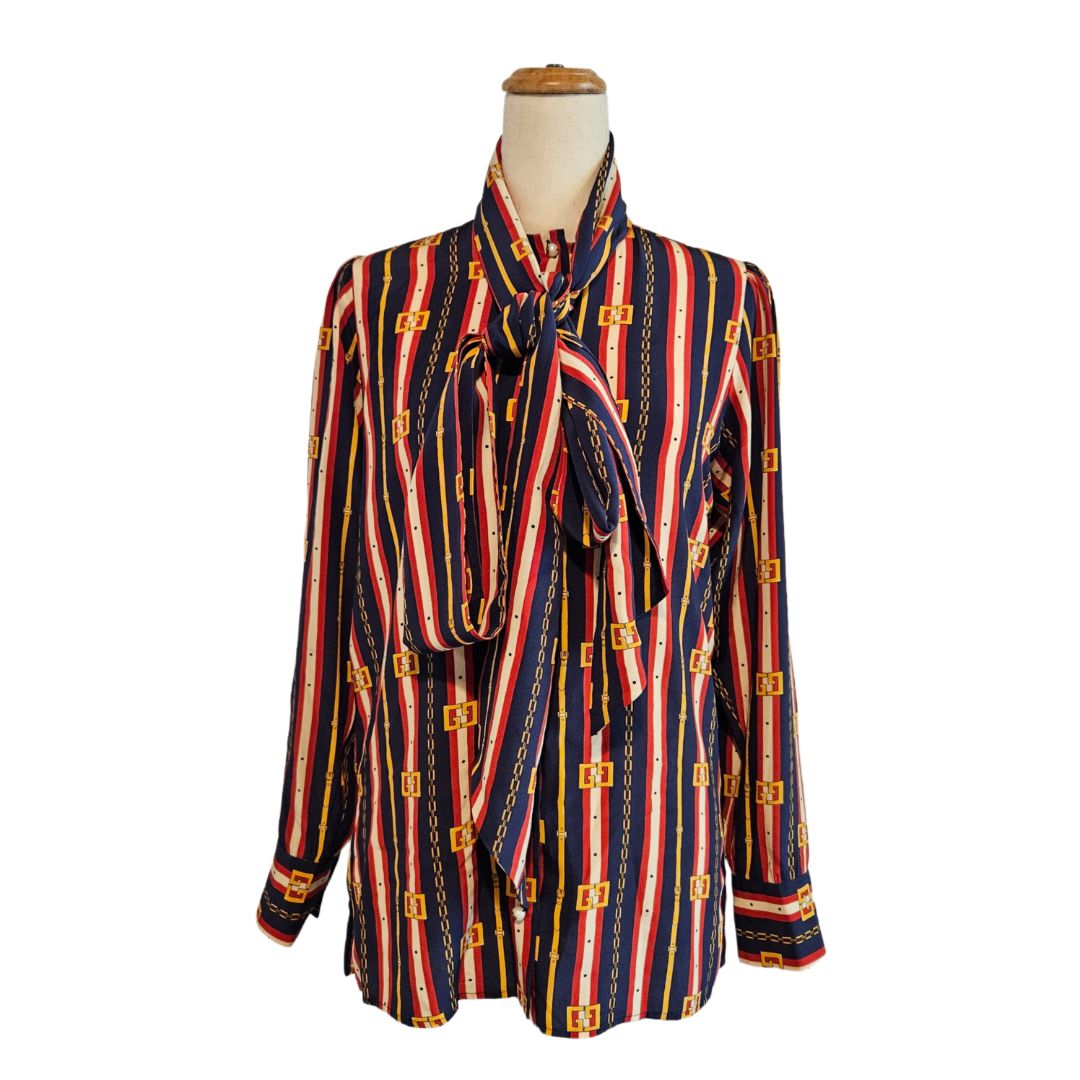 Gucci Multicolor Printed Silk Tie-Up Neck Button Front Blouse