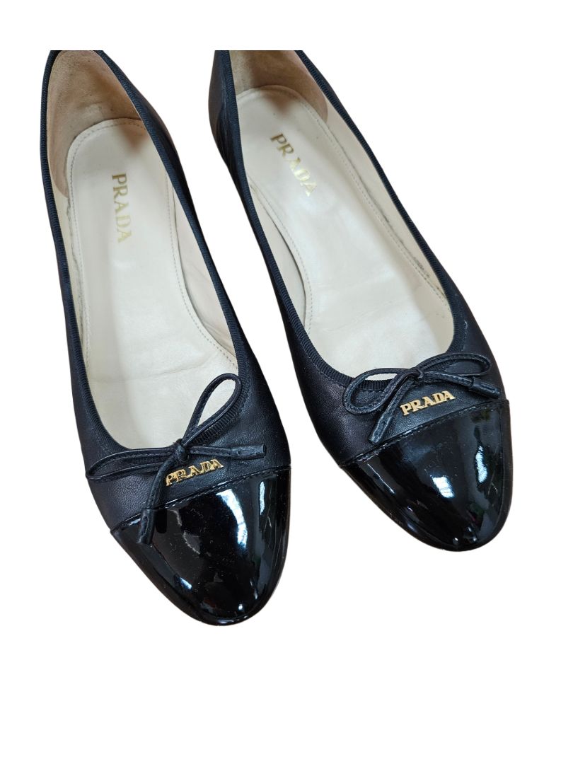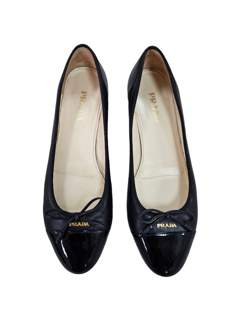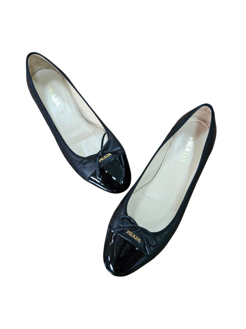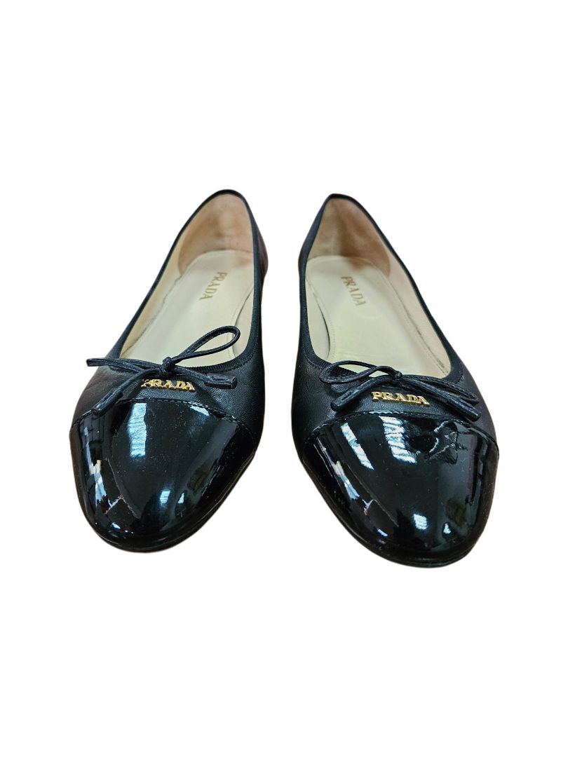 Prada Black Leather Ballerina Flats with Logo Plaque