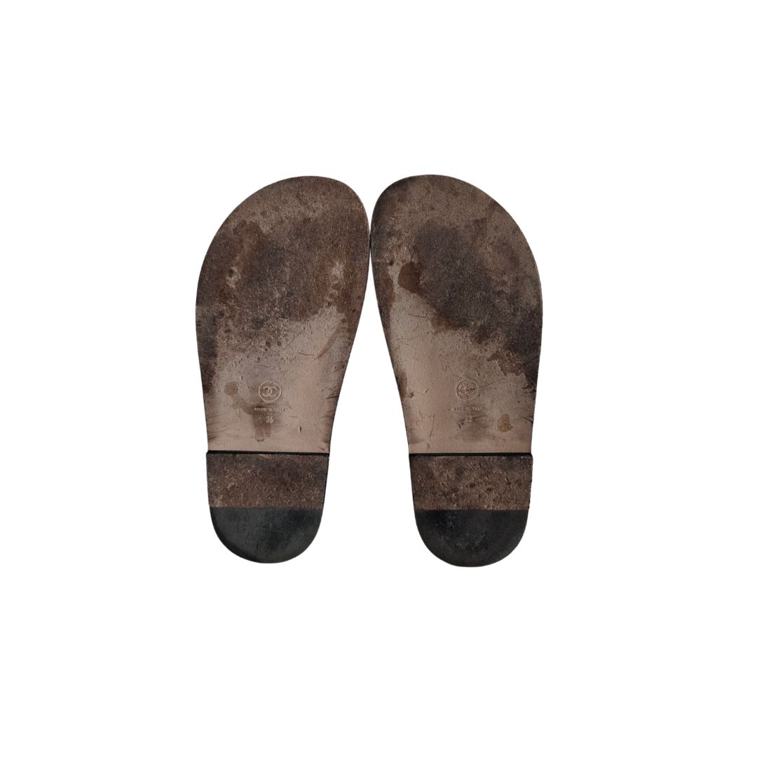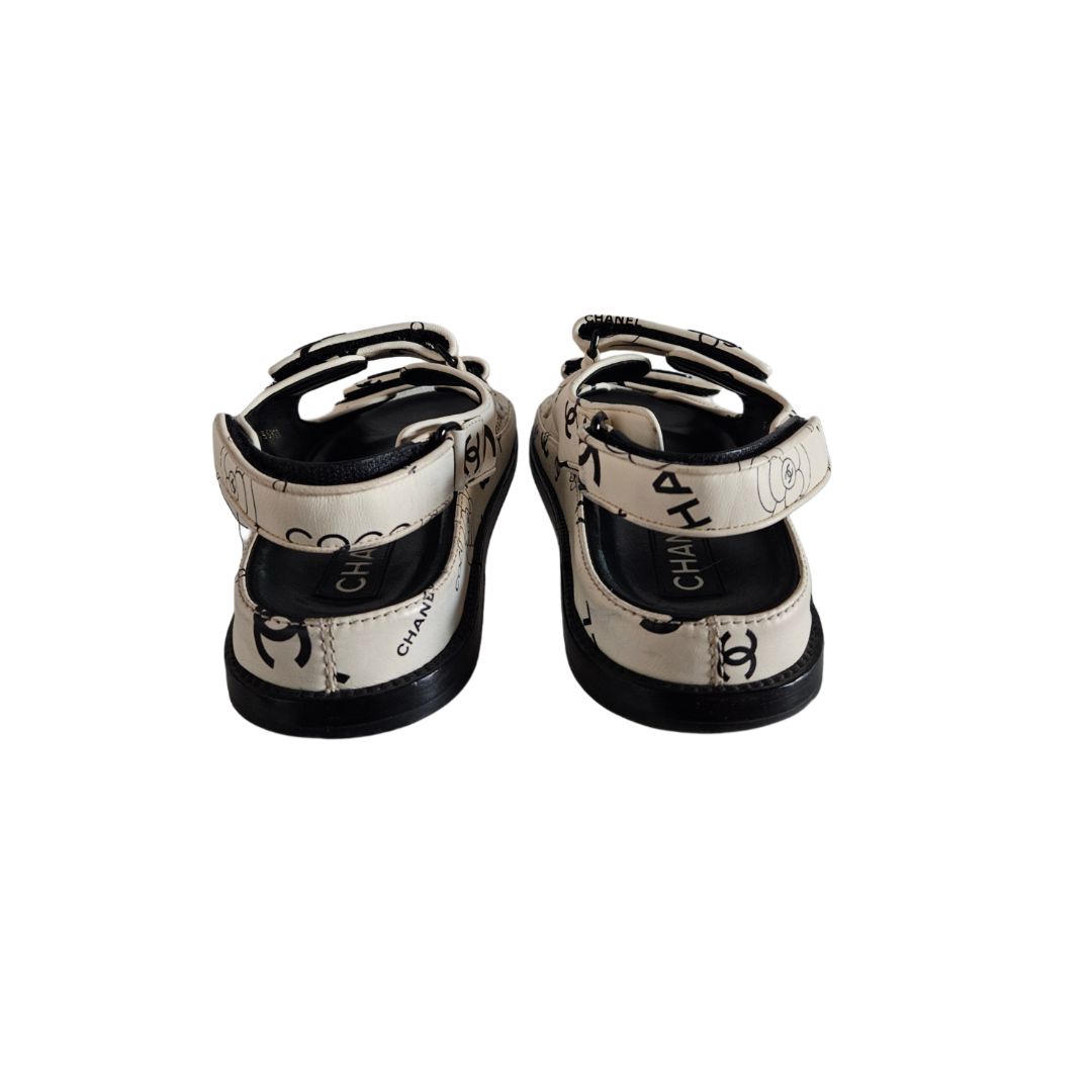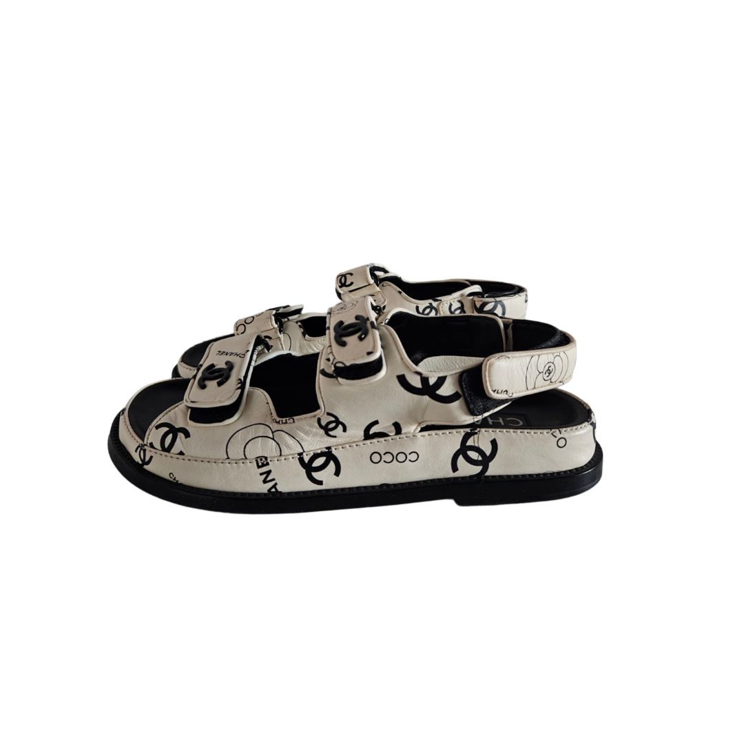 Chanel White & Black CC Leather Dad Flat Sandal
