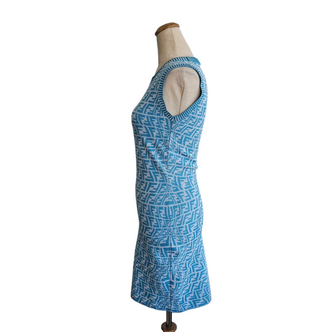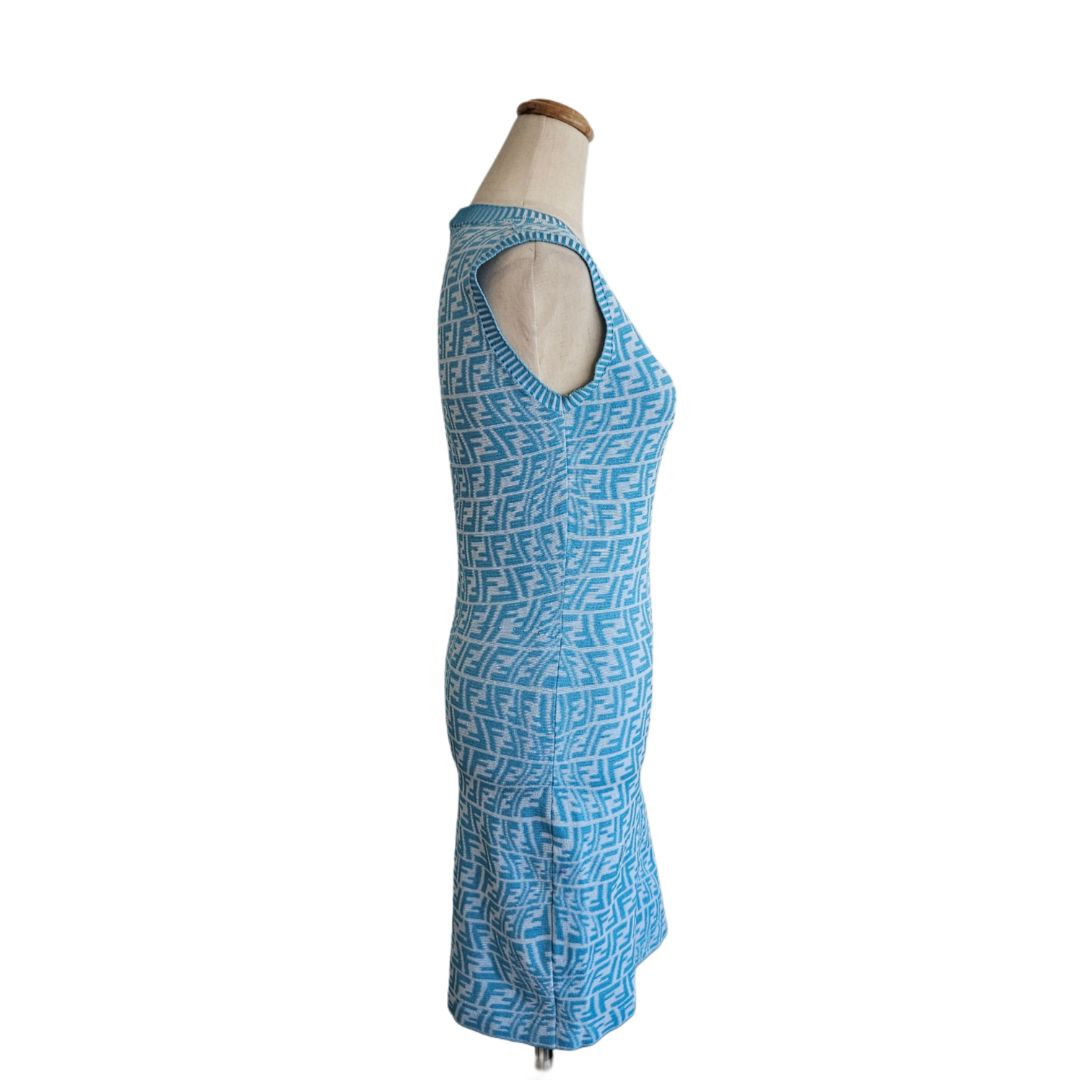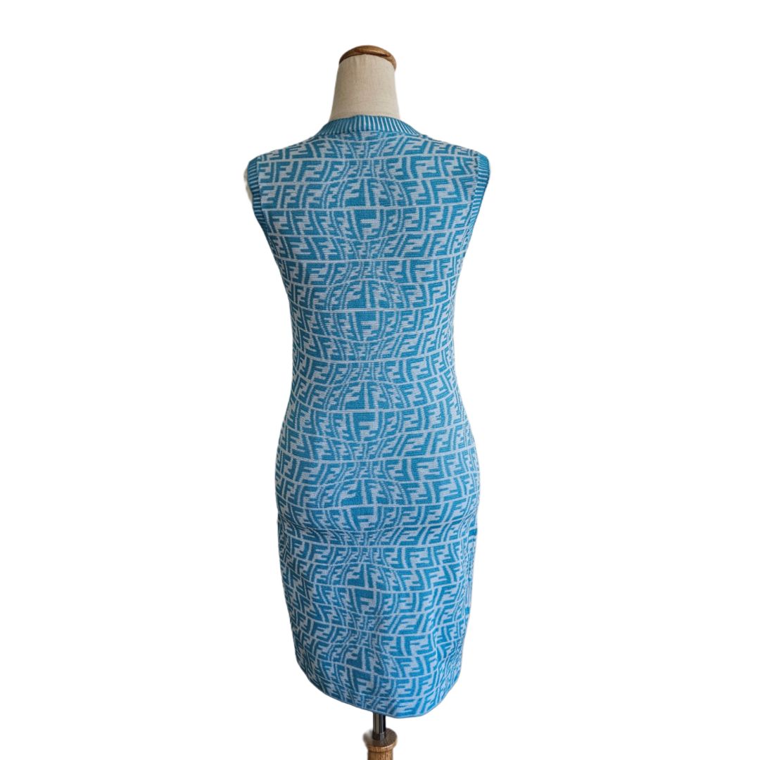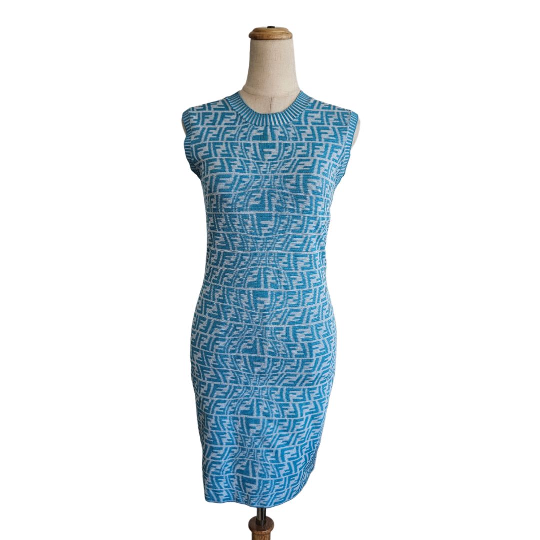 Fendi Blue/White Printed Logo Sleeveless Midi Bodycon Dress