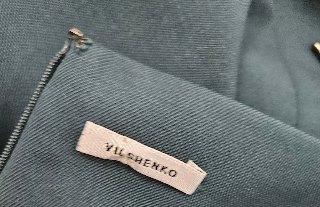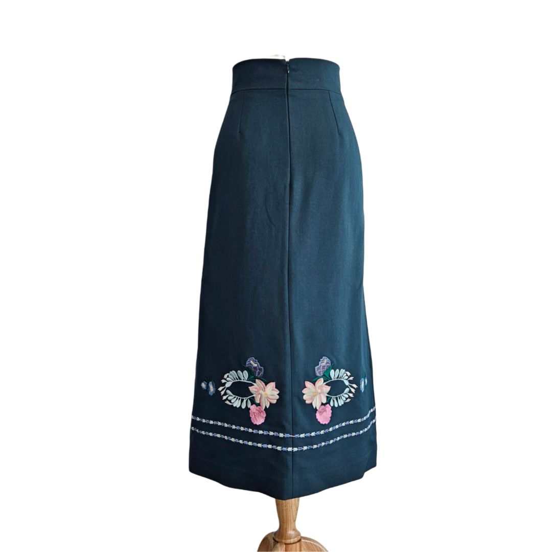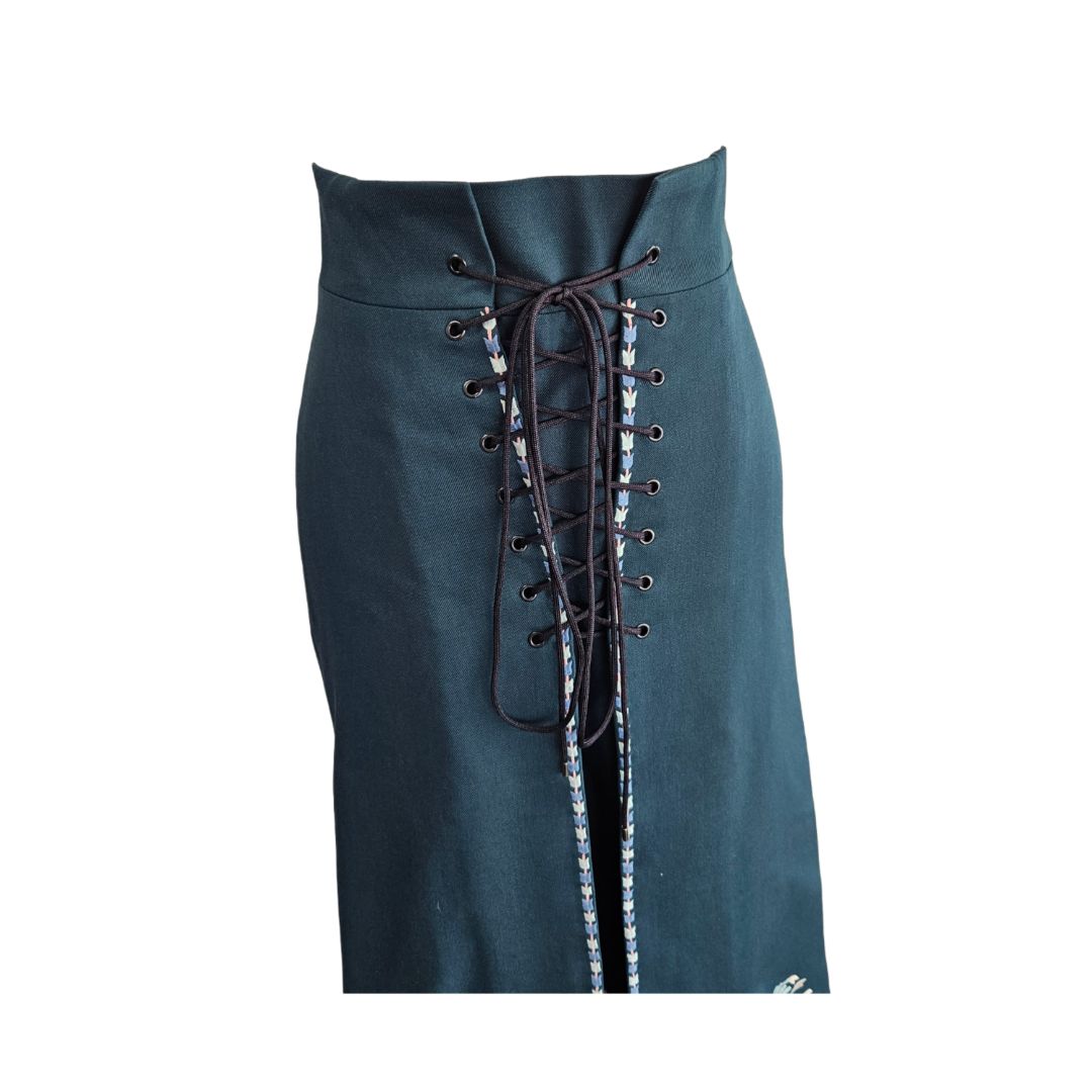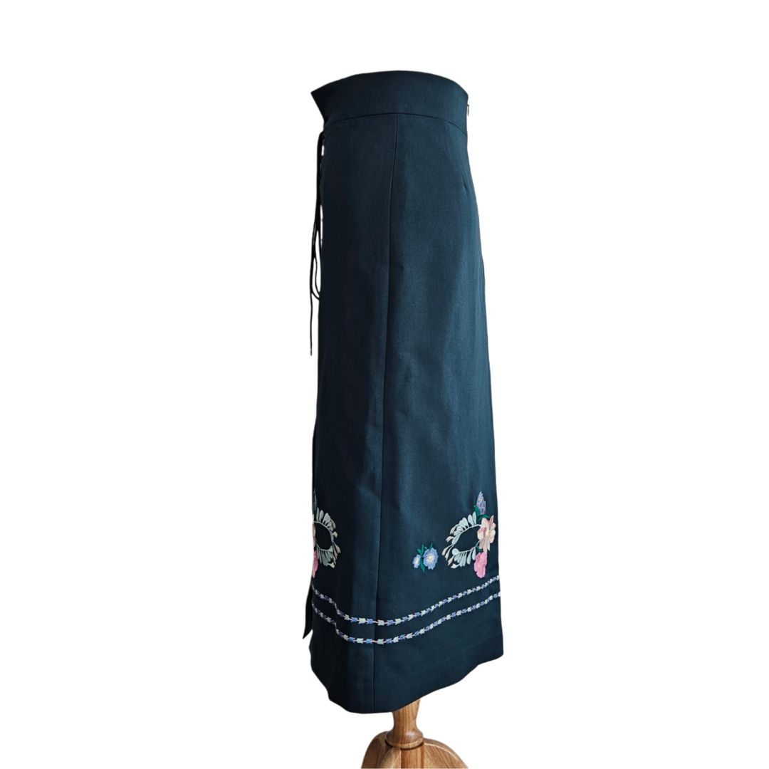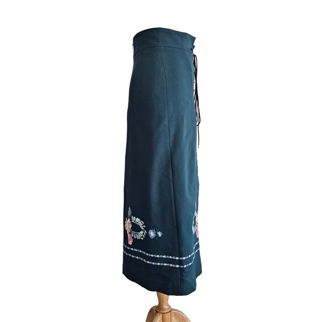 Vilshenko Dark Green With Embroidered Flower Draw String Midi Skirt