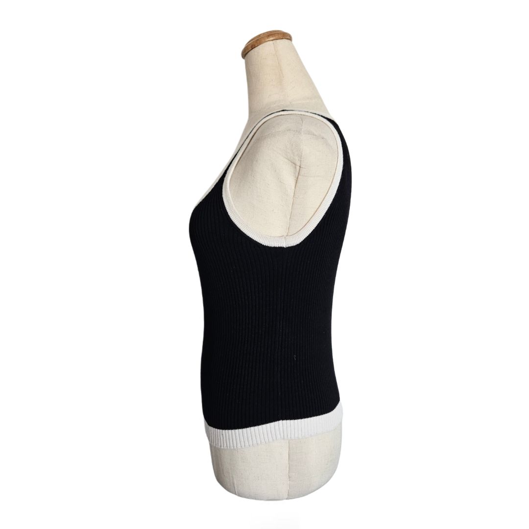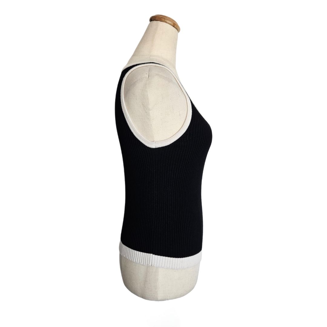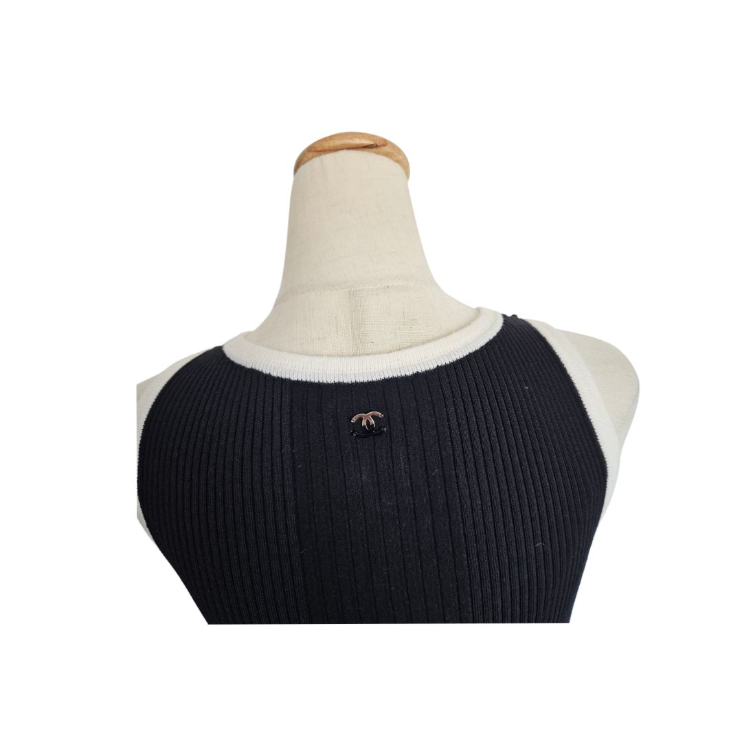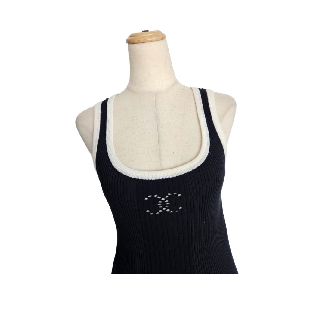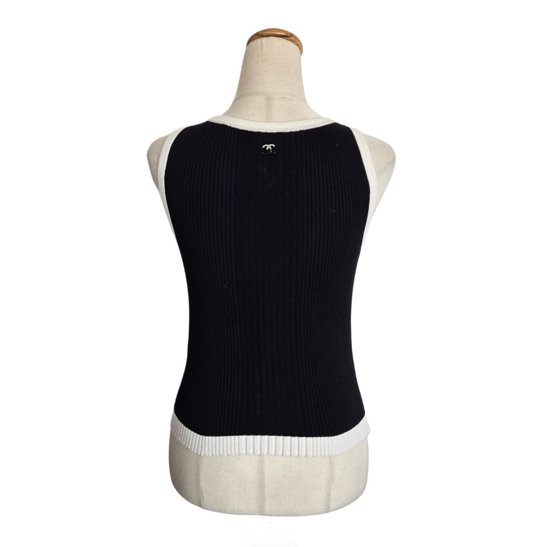 Chanel 22B Knit Sleeveless Top Vest Black & White CC Logo Tank