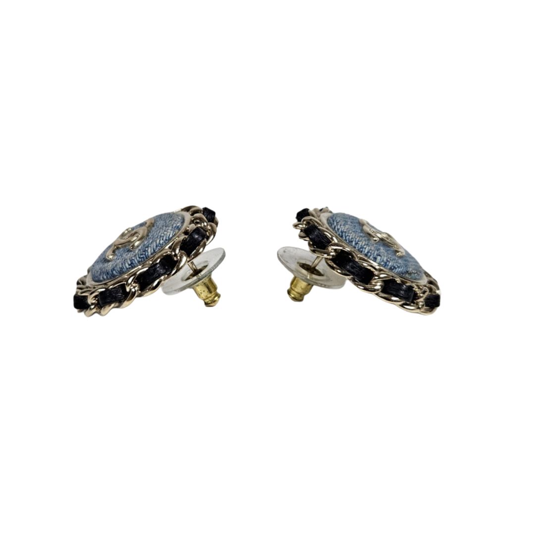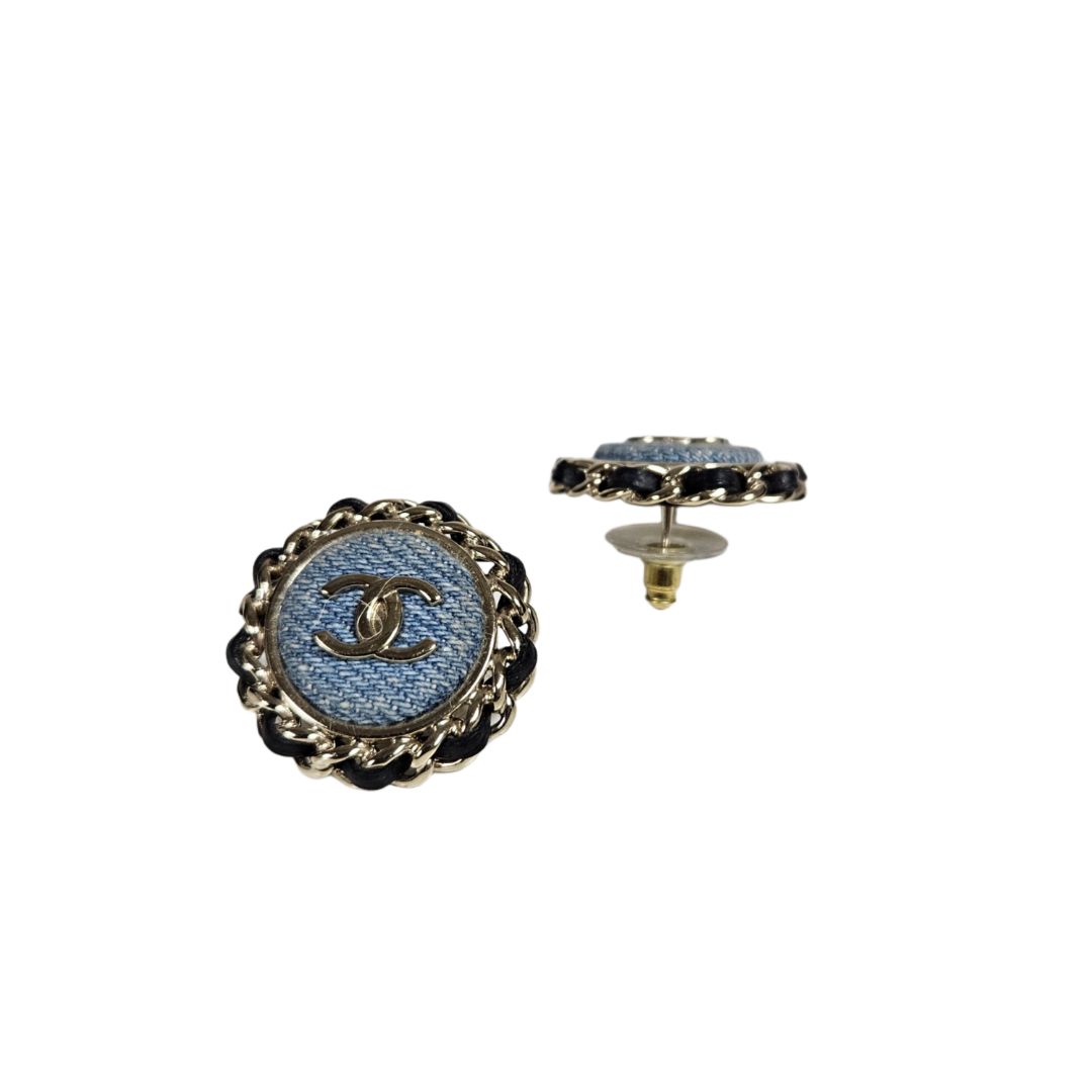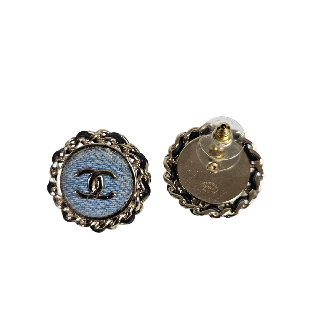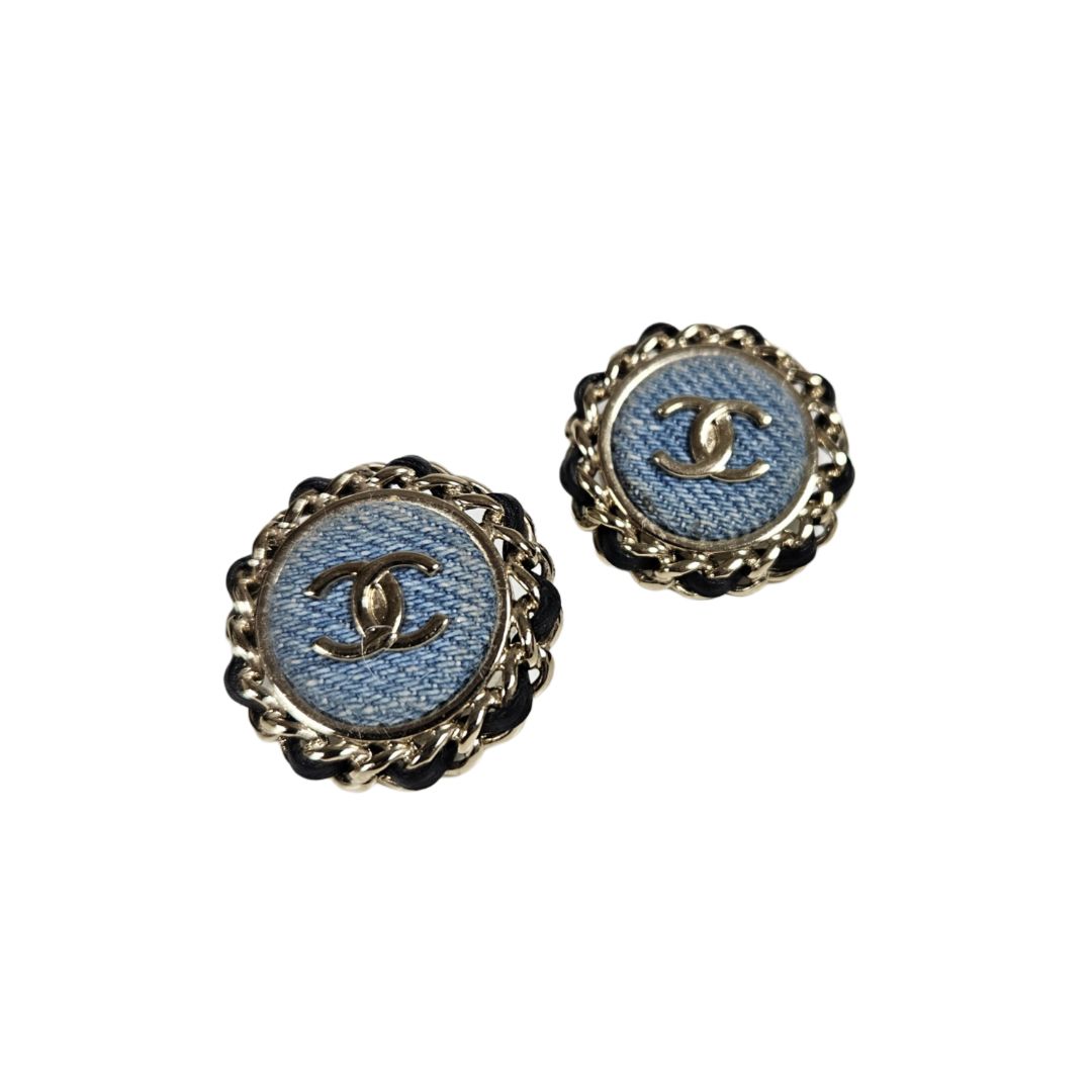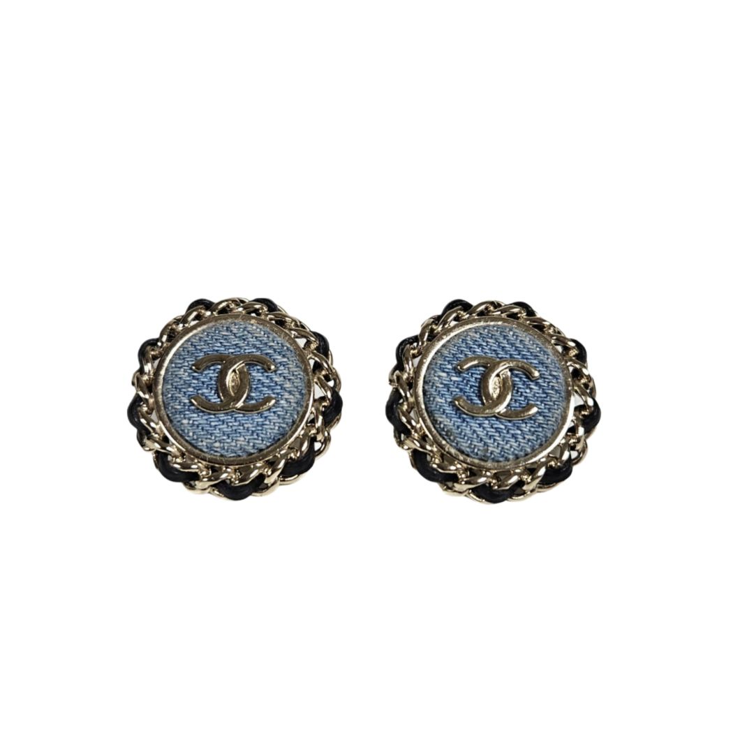 Chanel Round Denim Chain Detail Oversized Earring