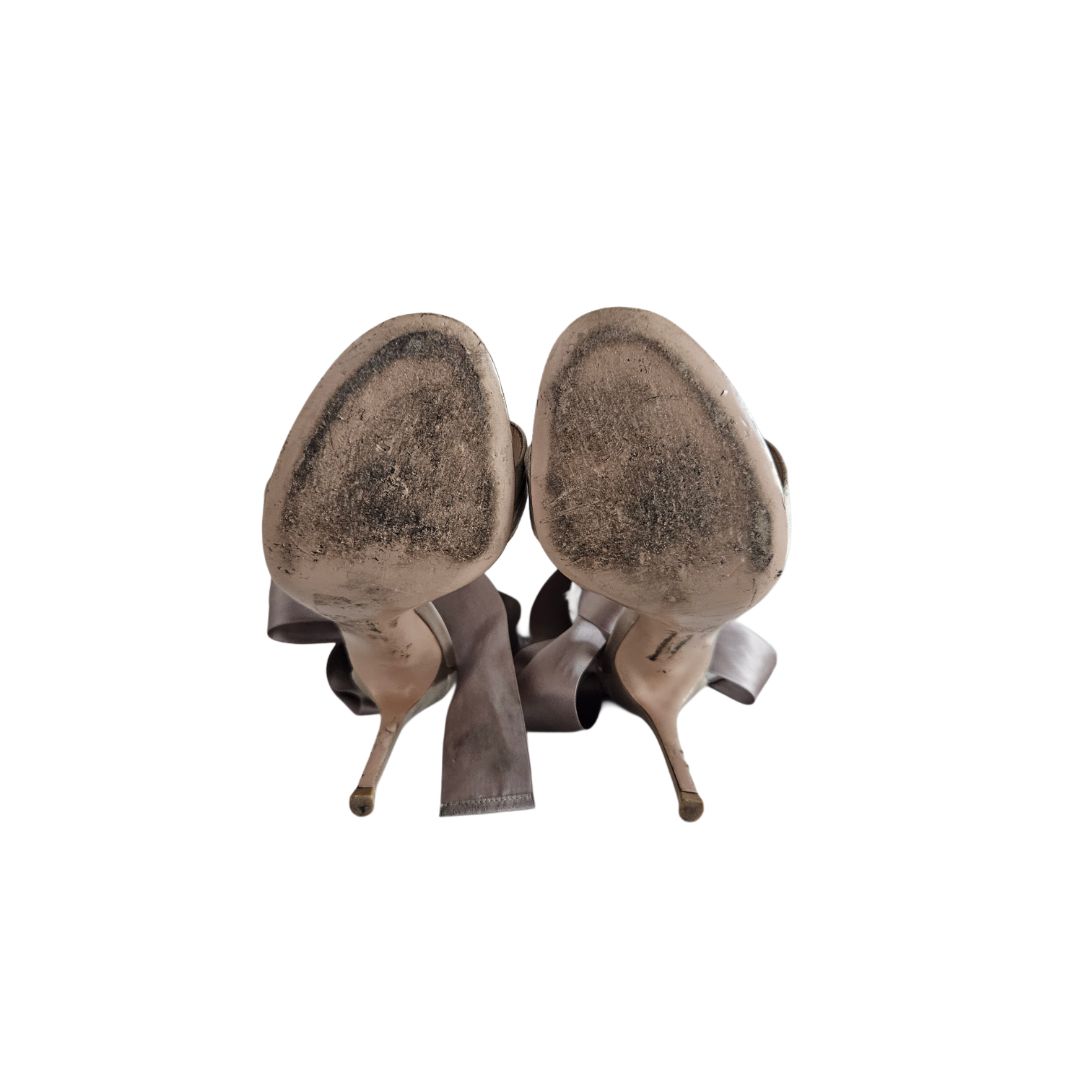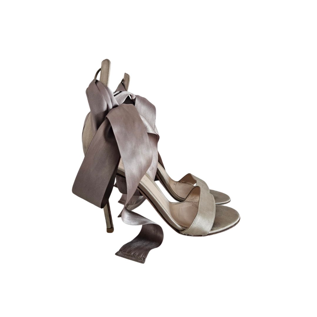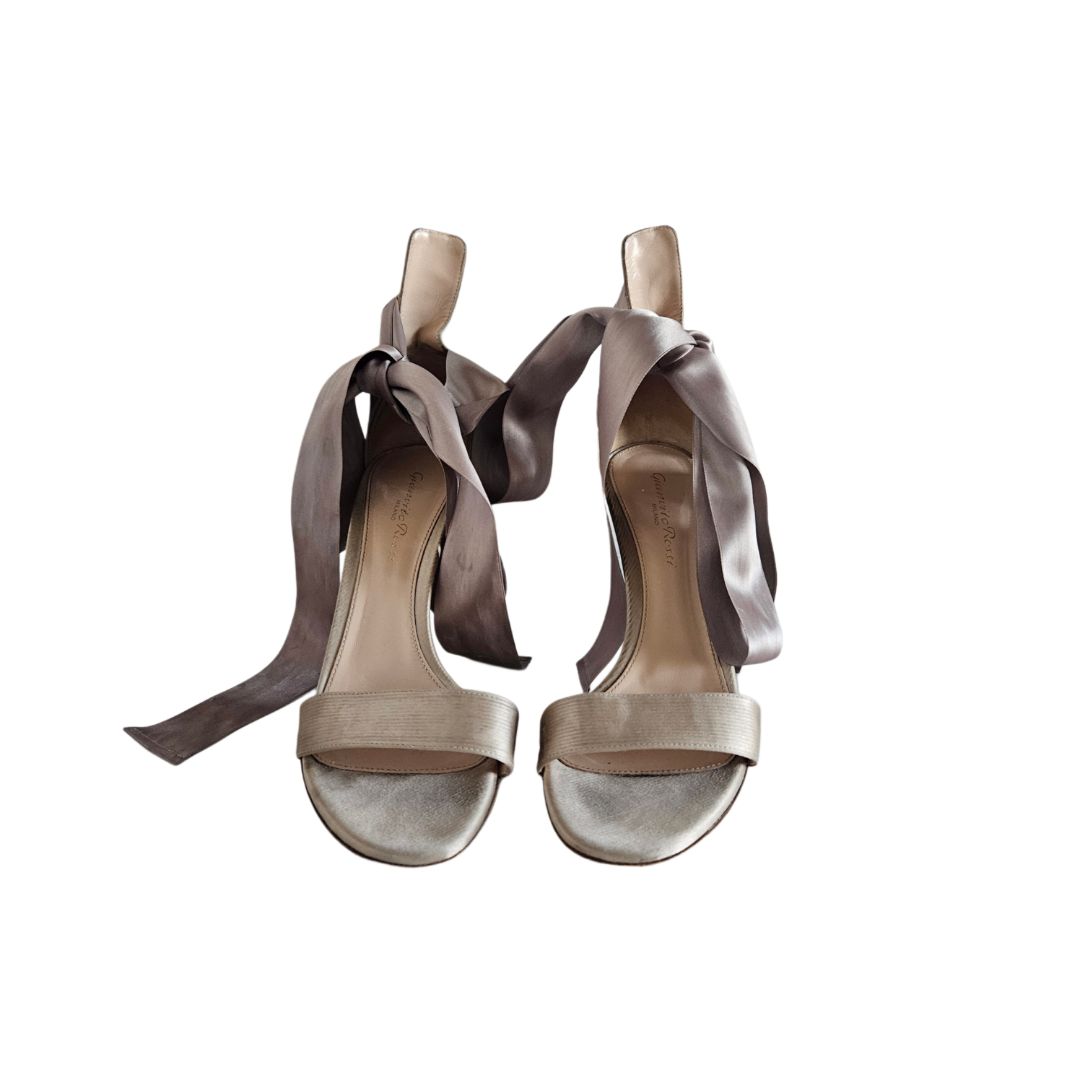 Gianvito Rossi Beige Ribbon Lace Up Heels Sandal, size 37