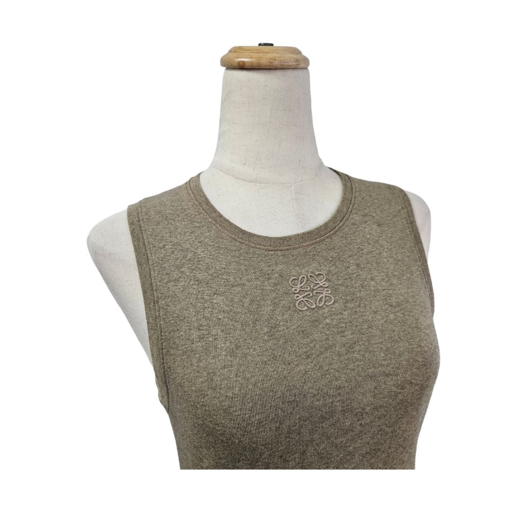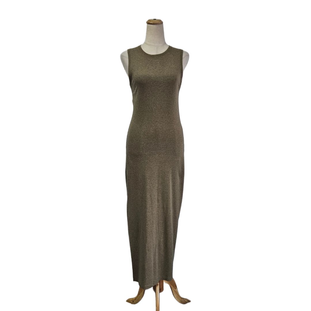 Loewe Green Anagram Embroidered Logo Sleeveless W/ Slit Long Dress