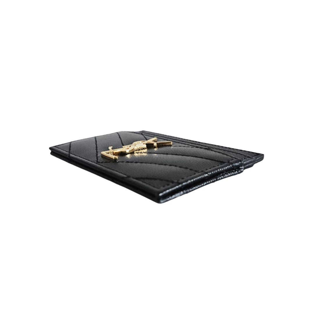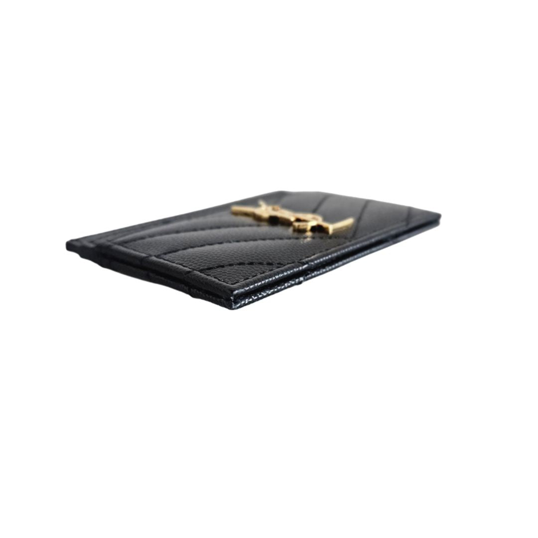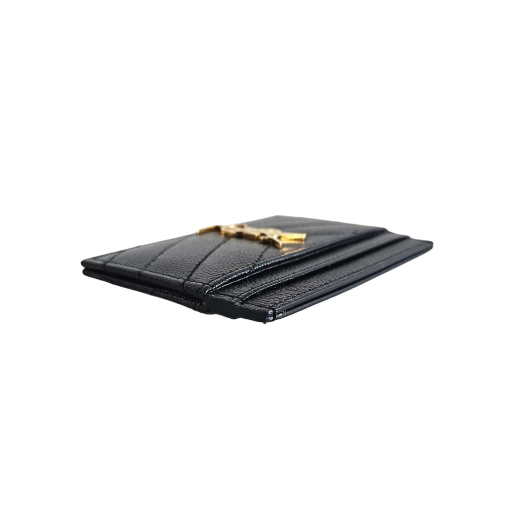 Saint Laurent Black Cassandre Metalasse Grain De Pudre Leather Card Case