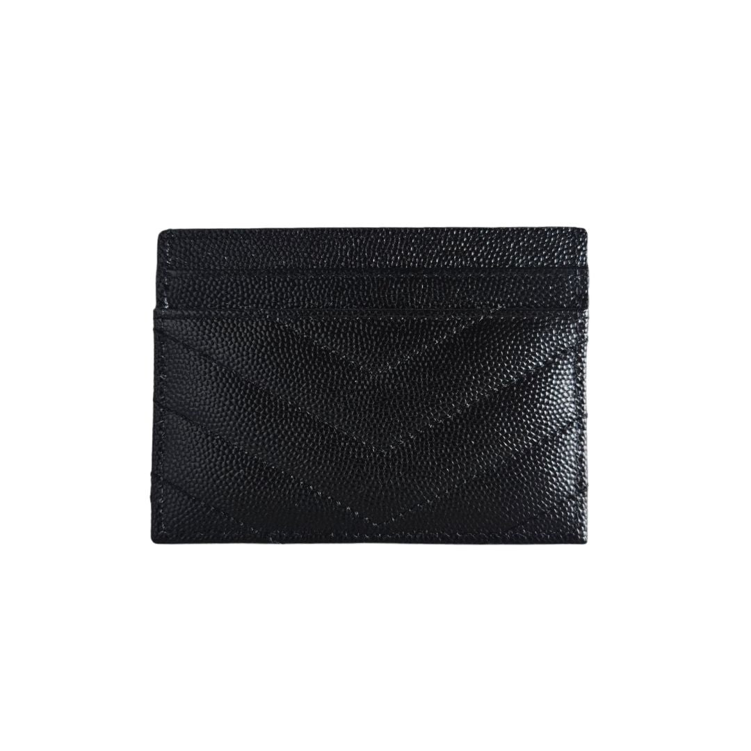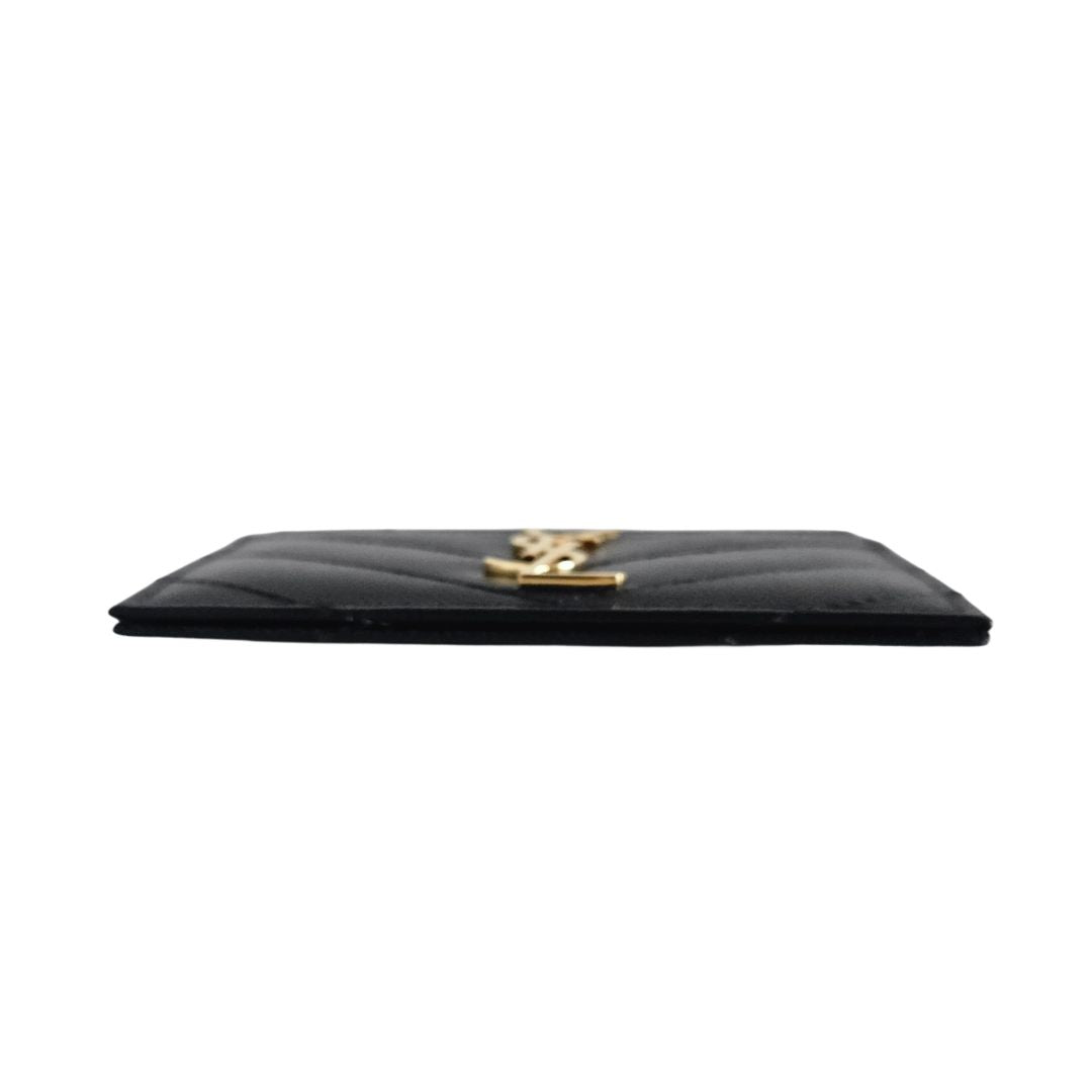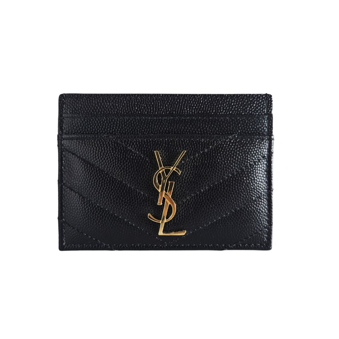 Saint Laurent Black Cassandre Metalasse Grain De Pudre Leather Card Case