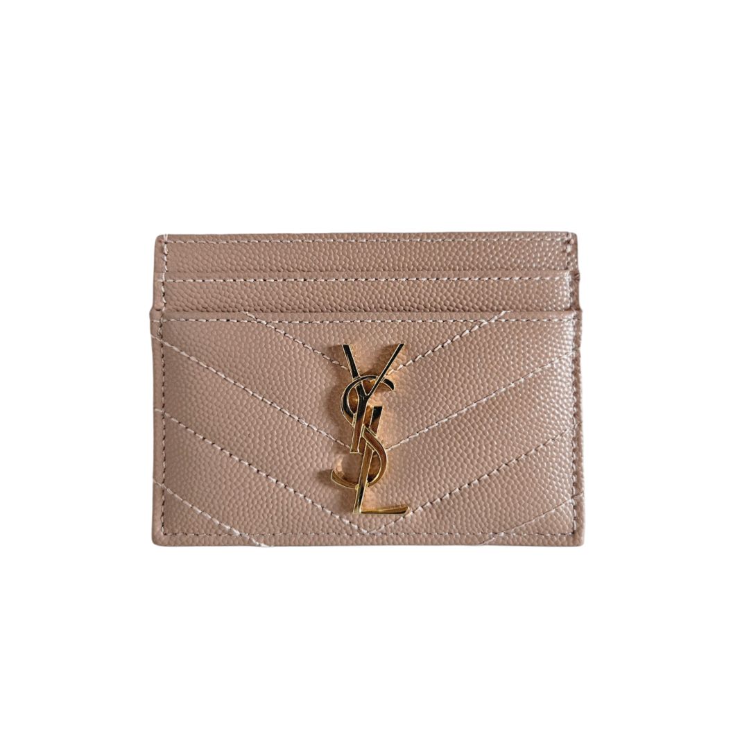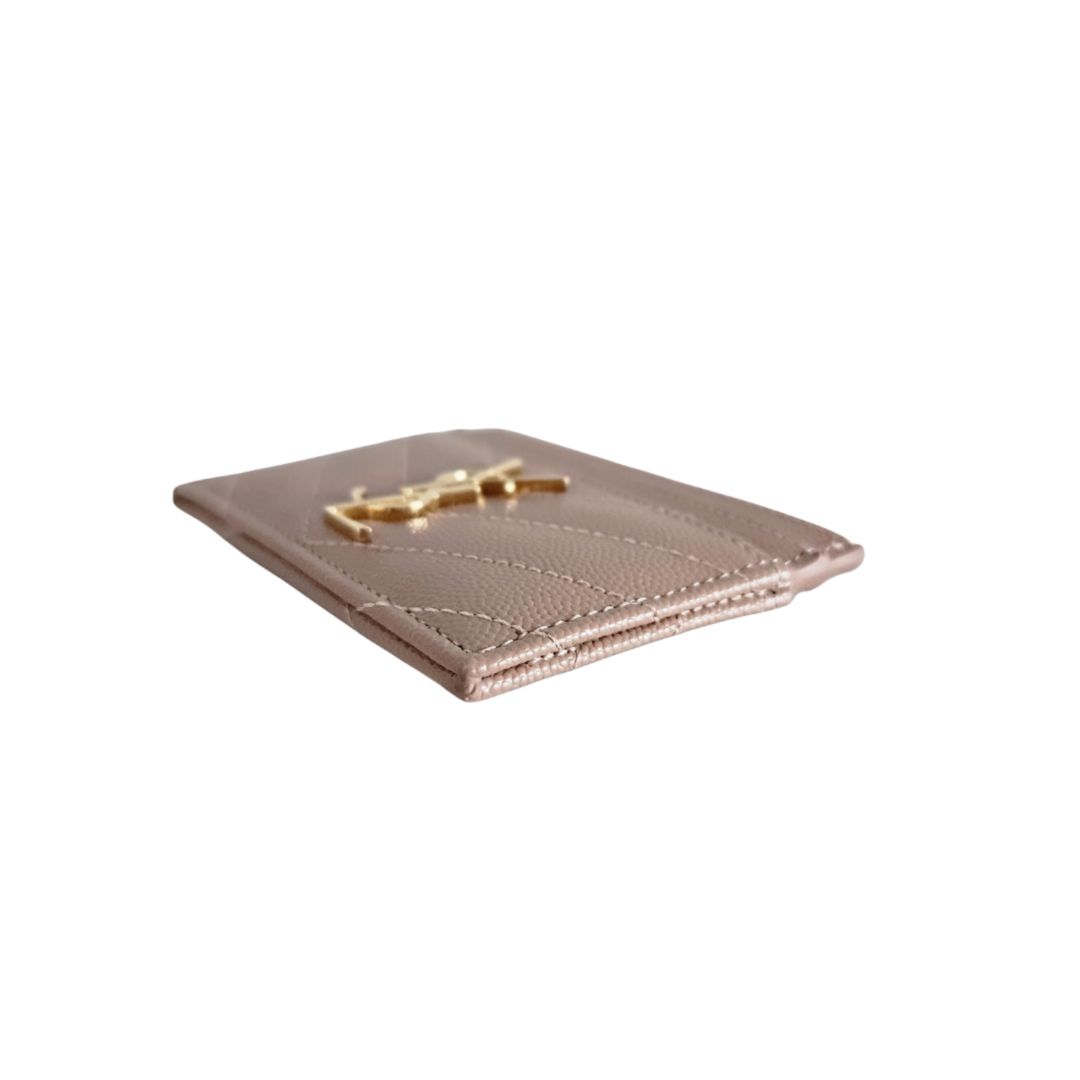 Saint Laurent Powder Pink Cassandre Metalasse Grain De Pudre Leather Card Case