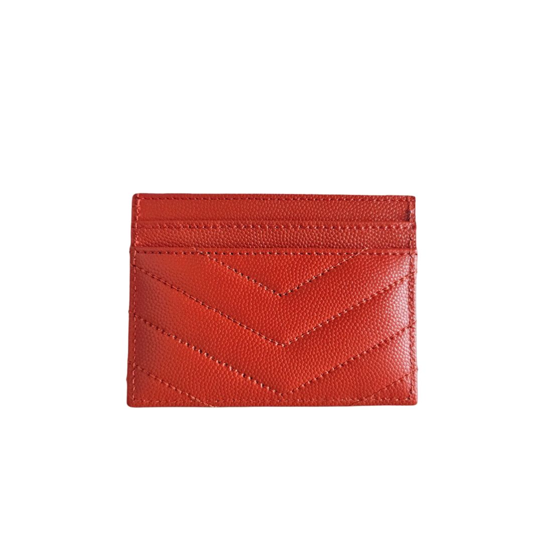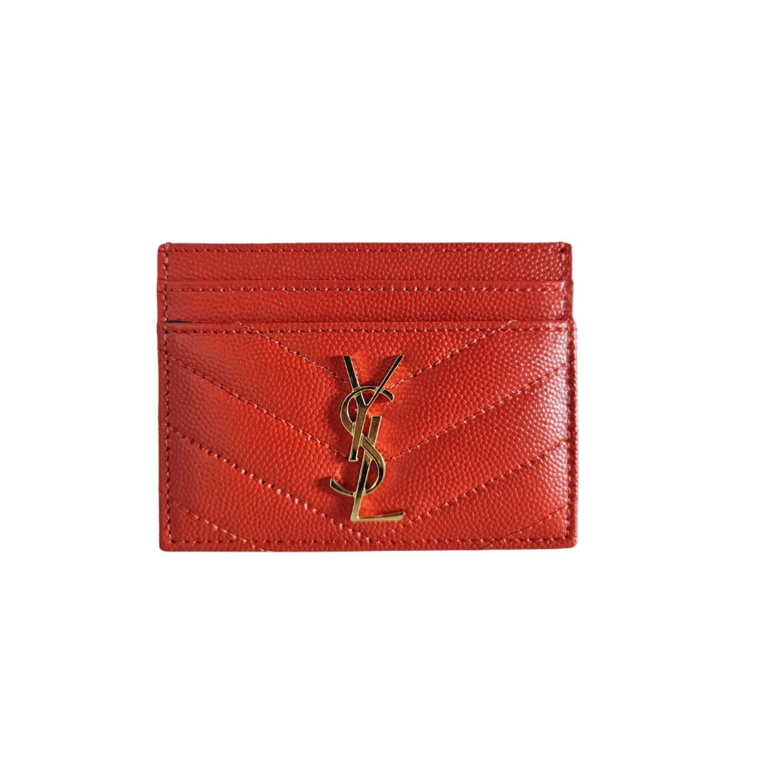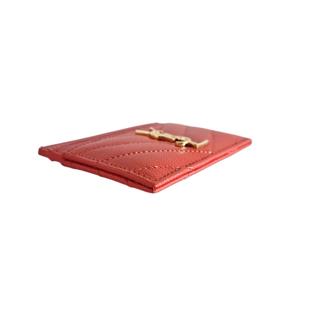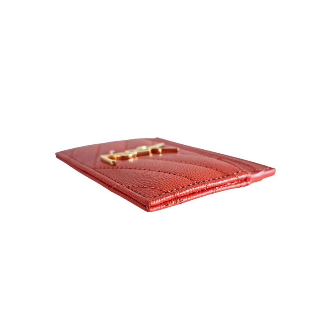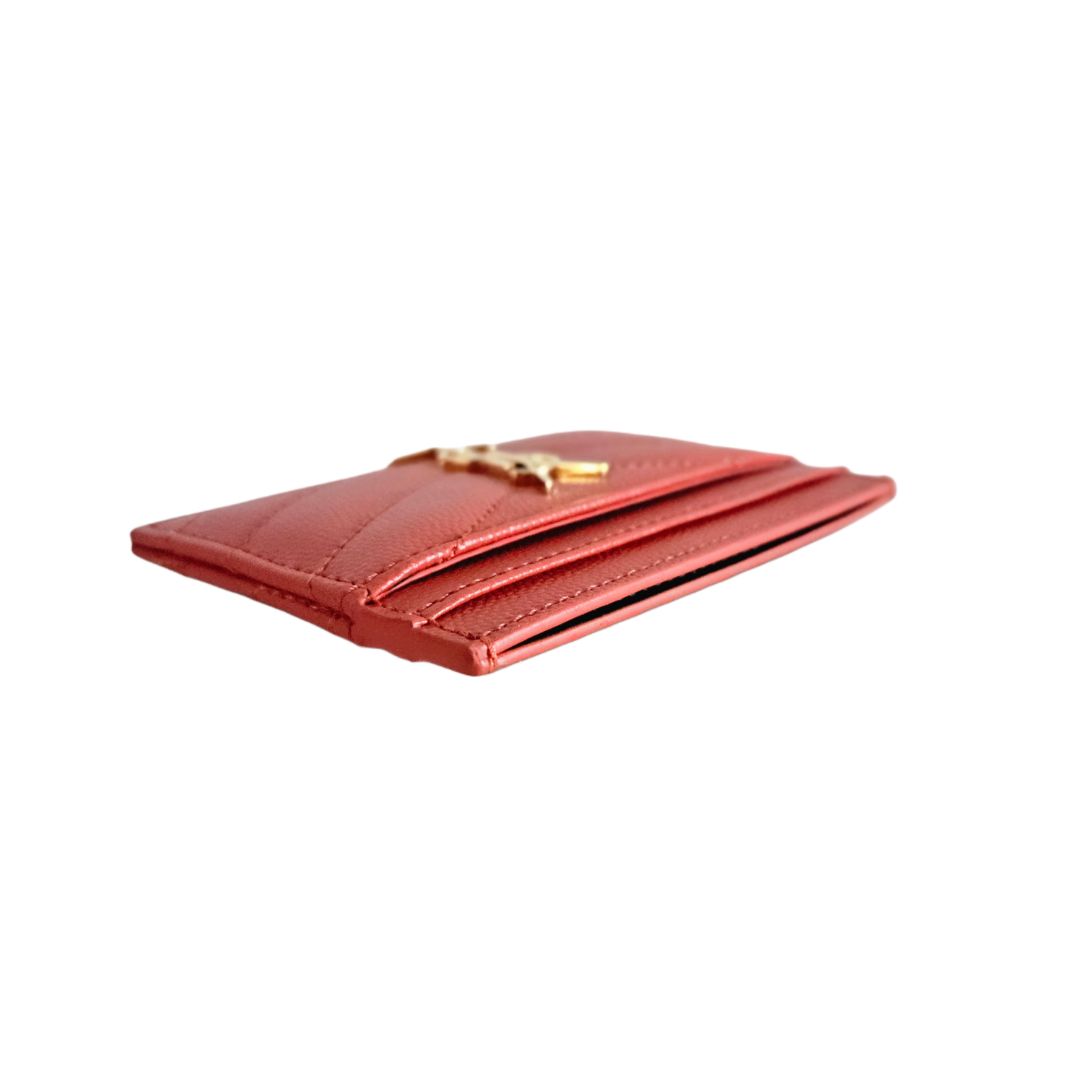 Saint Laurent Red Cassandre Metalasse Grain De Pudre Leather Card Case