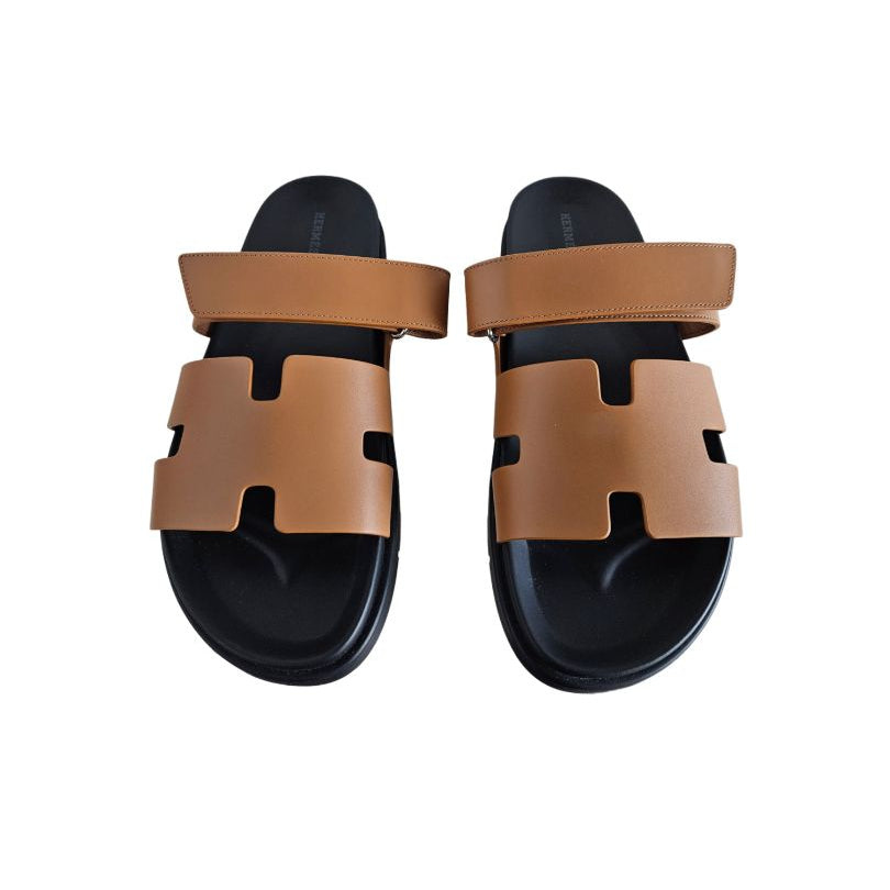 Hermes Chypre Brown Leather Men's Sandal, size 43.5