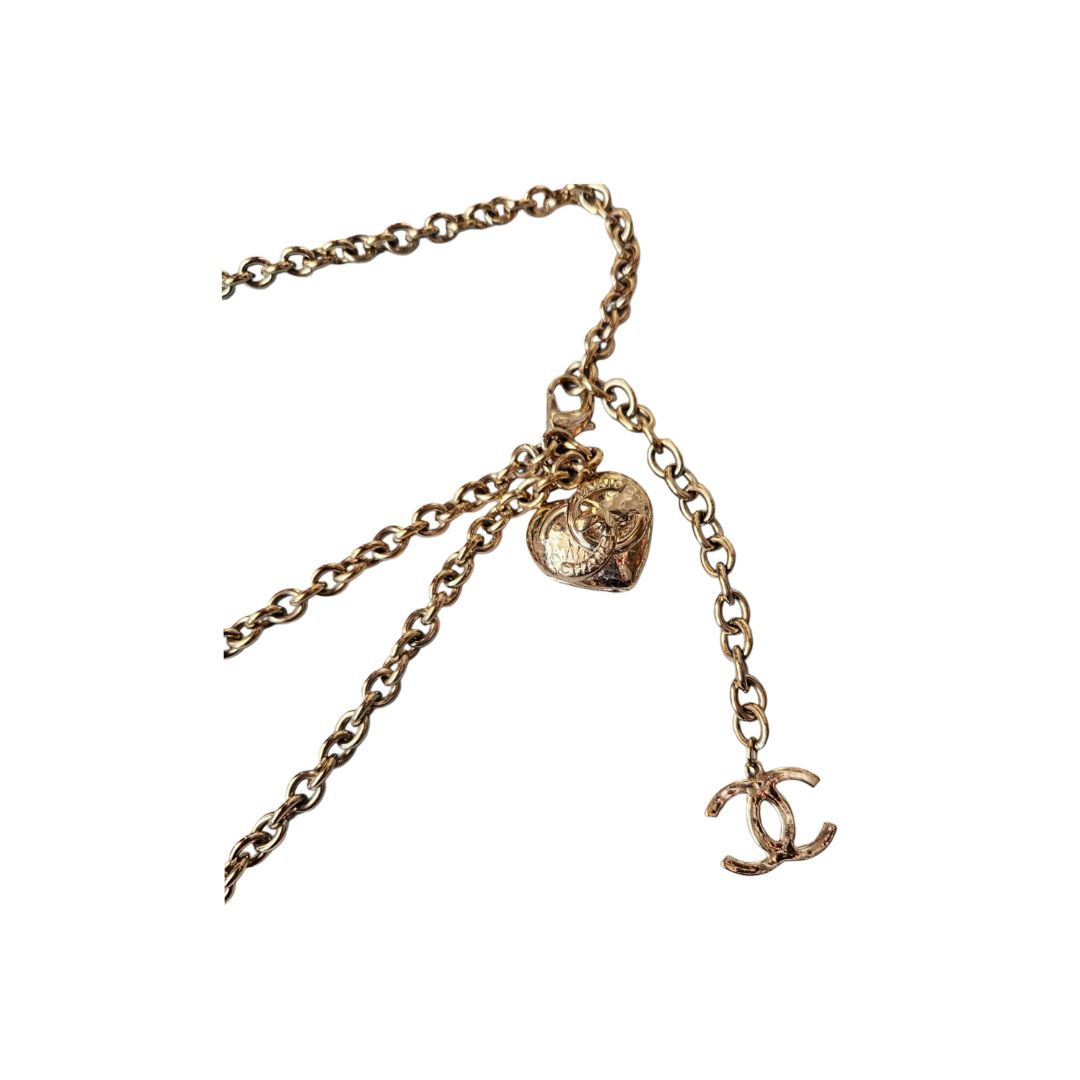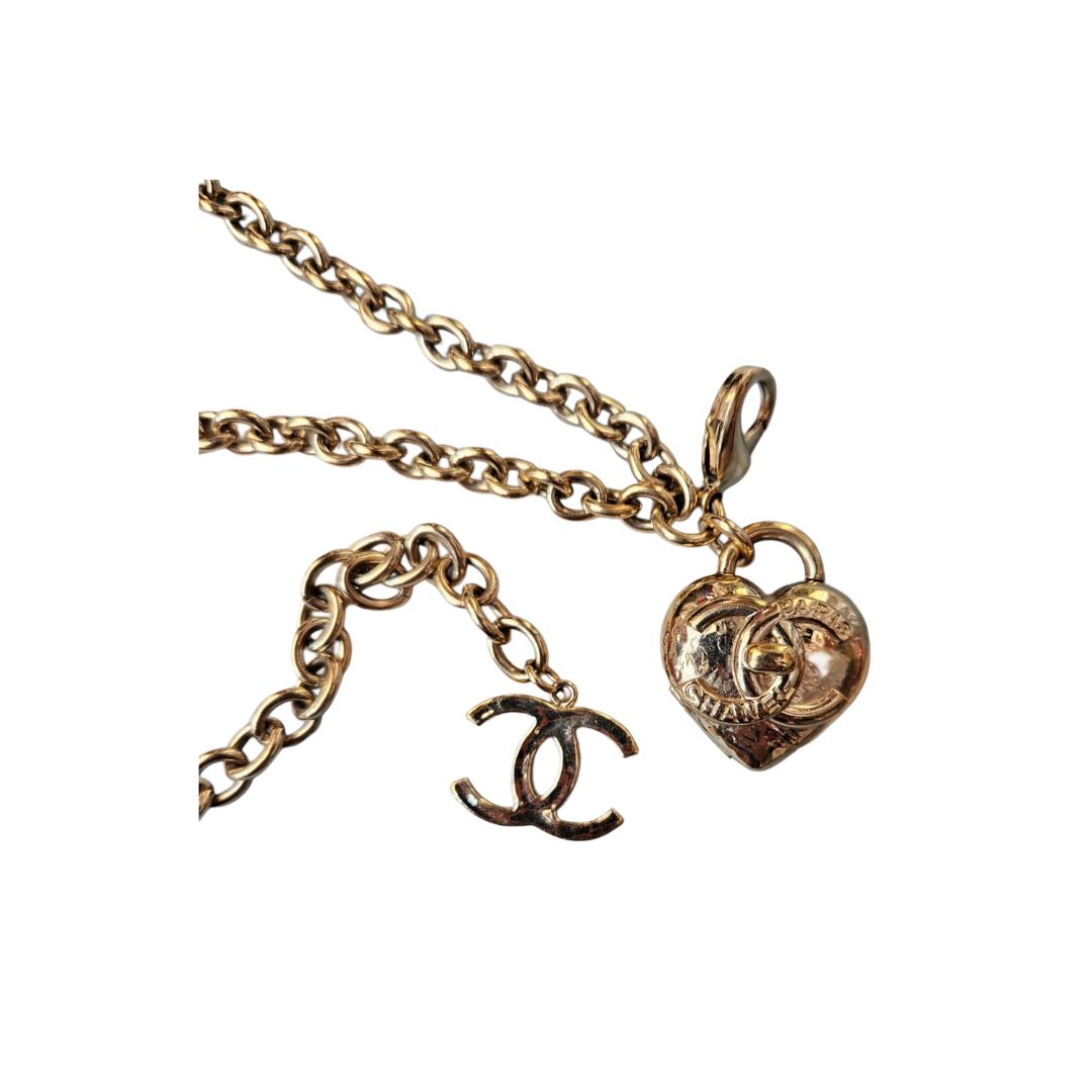Chanel CC Metal Turnlock Heart Locket Necklace Gold